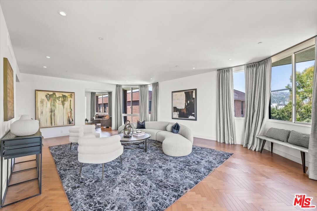 Beautiful penthouse in IV Seasons North Condominiums in prime Beverly Hills. Approximately 2800 feet with beautiful Mountain and Hollywood Hills views and is north east facing. The gorgeous 2 bedrooms + 2.5 bathrooms has beautiful new hardwood floors and was also recently renovated. Formal entry opens to elegant den and living room, and large west-facing patio perfectly suited for entertaining. This condo also features a large eat-in kitchen and a formal dining room, generous primary suite with over-sized master bath, and enormous walk-in closets. Full service building with 24-hour valet parking, doorman/security/concierge, and fitness center with pool & spa.
