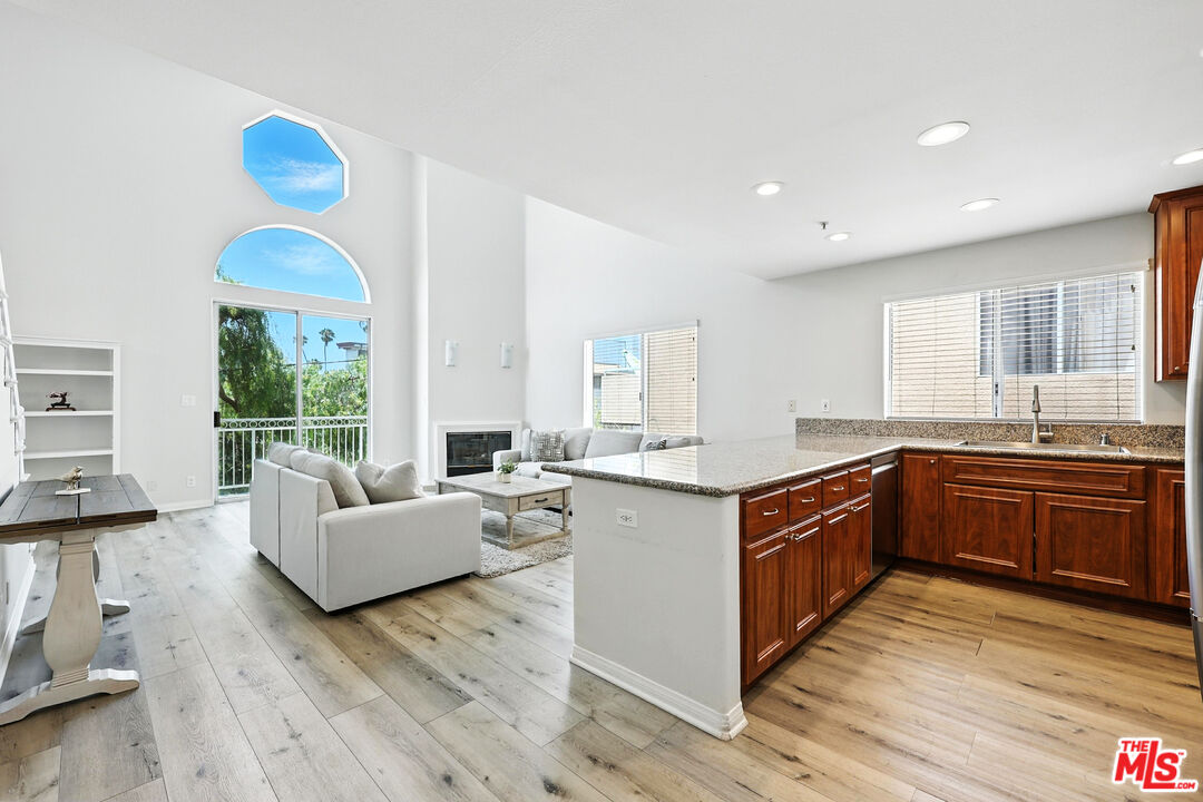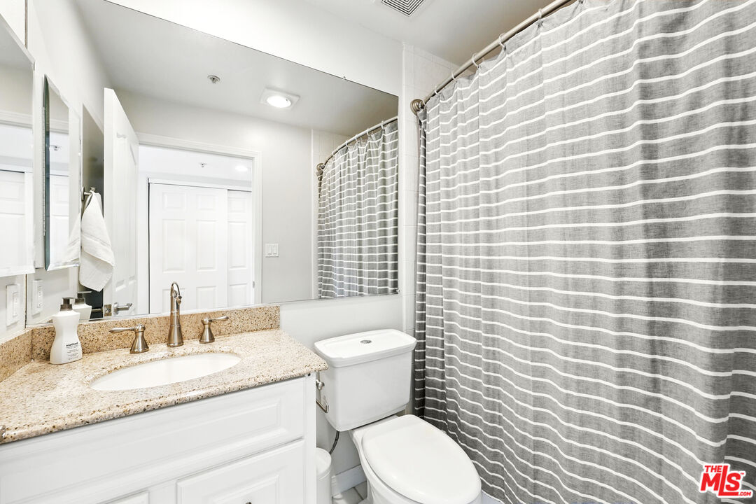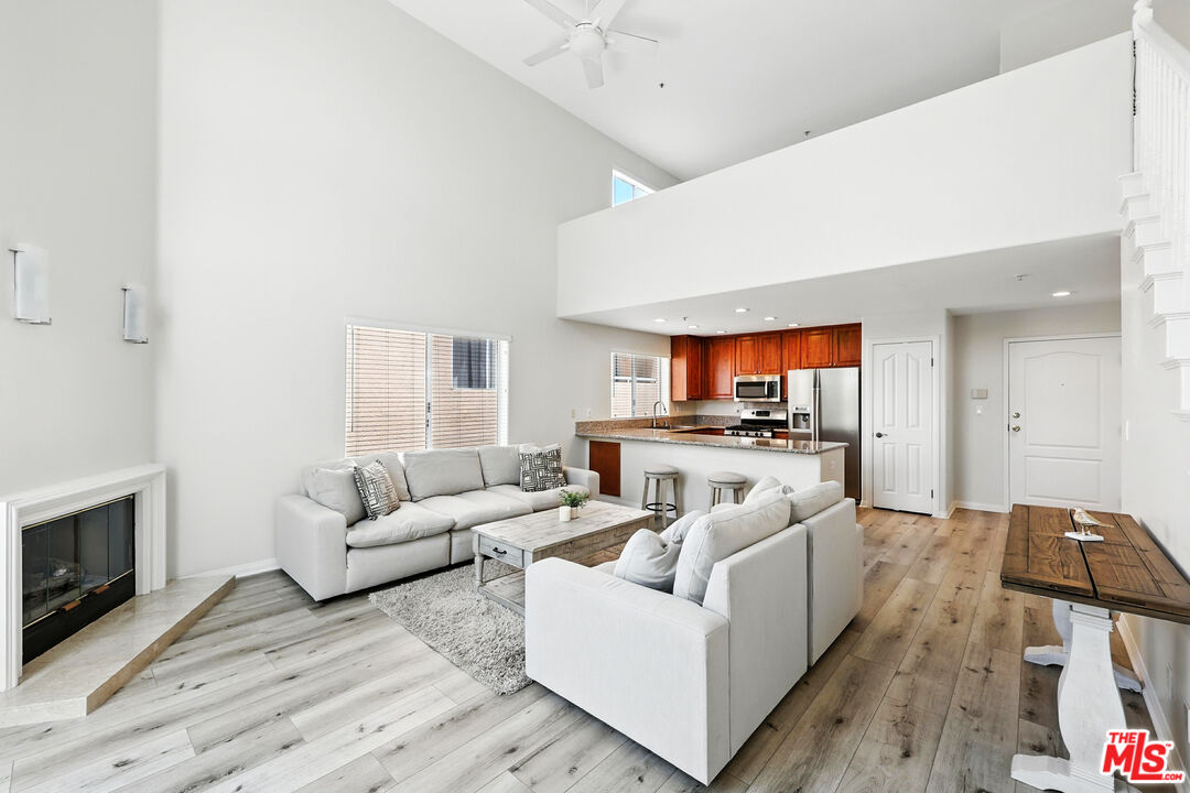 Penthouse Living with Rooftop Access in Pico-Robertson! This bright and spacious Penthouse condo with low HOA dues is tucked away in the back corner of a quiet, desirable building in the heart of Pico-Robertson. Featuring 2 en-suite bedrooms plus a large en-suite loft with a full closet , perfect for a home office, guest suite, or potential 3rd bedroom (buyer to verify). This home offers 3 full bathrooms and an additional powder room for a total of 4 baths. Soaring ceilings and clerestory windows fill the open living space with natural light. The expansive living room boasts a cozy corner fireplace and oversized sliding doors that open to a private balcony with treetop views. The gourmet kitchen includes granite countertops, rich wood cabinetry, stainless steel appliances, a new dishwasher, and a generous breakfast bar. The spacious primary suite features a large walk-in closet, dual vanities, a skylight, ceiling fan, and a substantial standing shower. A second bedroom offers its own en-suite full bath with a tub. Additional conveniences include an in-unit laundry room, multiple storage closets, a beautiful powder room, 2 dedicated tandem parking spaces plus guest parking, and direct access to the rooftop. All of this just moments away from restaurants, shopping, houses of worship, and more. Welcome to Penthouse living in one of L.A.'s most vibrant neighborhoods!