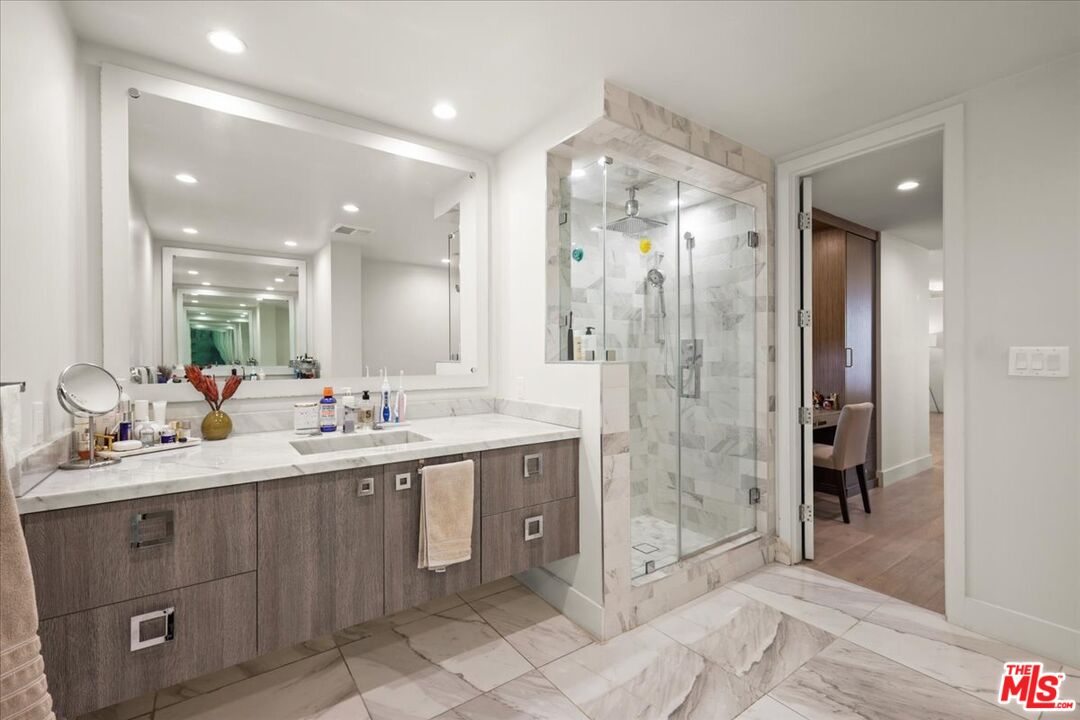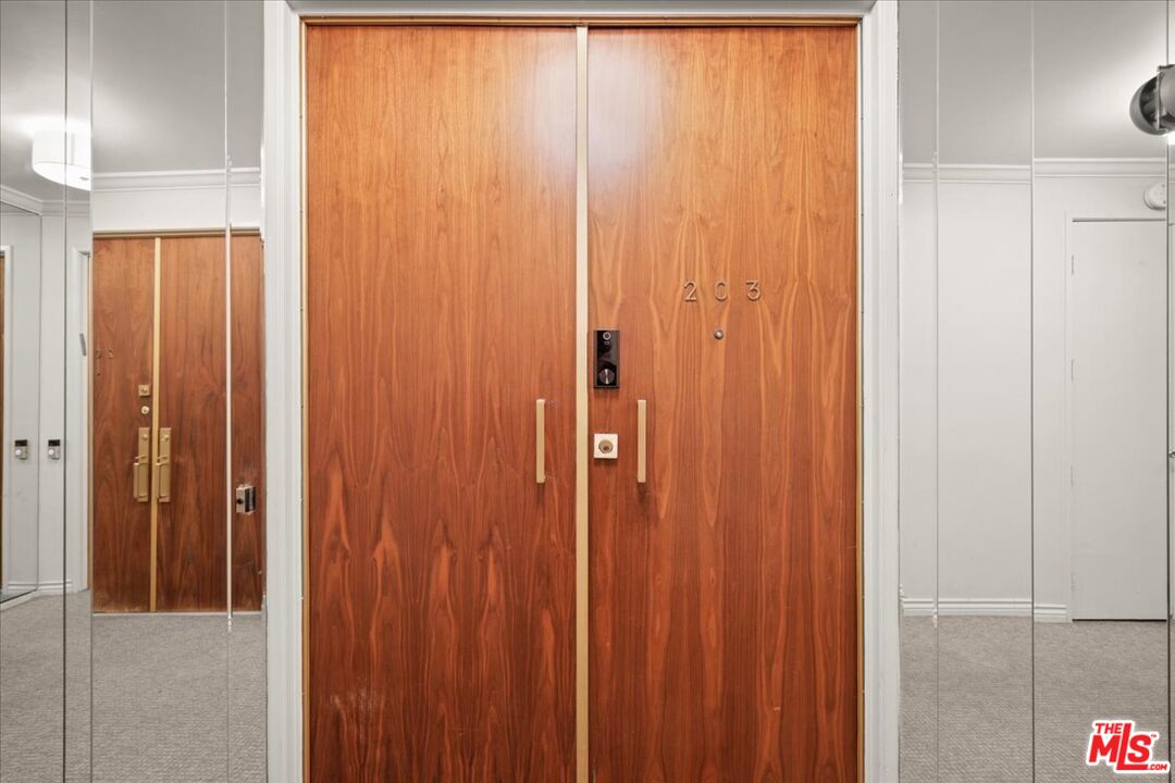 Remodeled condo in one of the best buildings in Beverly Hills 90210. This is a 24-hour doorman property with a magnificent lobby entry and a giant community room with kitchen that you will definitely want to use for entertaining. There is also a rooftop pool with amazing 360-degree views. 2nd floor unit is 2 bedrooms and 2 1/2 baths, approximately 2,276 square feet. The kitchen has ample counter space, beautiful cabinetry, stainless appliances, and tons of storage. The graciously sized living room has a gorgeous marble fireplace and a dry bar for entertaining, while the living and dining areas lead to large usable balconies. The master suite and bathroom are sized like you would find in a very large home, and both bedrooms have a private outdoor patio area in the rear. This is absolutely one of the best buildings in the area (solid concrete). This is a tremendous opportunity to buy a move-in ready unit in this fabulous building. The amazing location is near Beverly Hills shopping, restaurants, grocery markets, and Cedars Sinai.