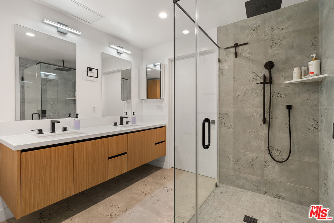 Built in 2023, this modern 3-bedroom, 3-bath residence combines refined design with comfort and convenience. High ceilings and an open floor plan create a bright, airy atmosphere, while designer finishes are showcased throughout. The gourmet kitchen features Nile Calcutta Italian marble countertops, flush wood-finish cabinetry, and stainless steel appliances perfect for both everyday living and entertaining. The spacious primary suite offers a walk-in closet with custom built-ins, along with a spa-like en-suite bath boasting dual sinks, a floating vanity with Caesarstone countertops, and sleek modern design. Community amenities include a fitness center, recreation room, and secure gated entry. Centrally located near Beverly Hills, Century City, and Culver City with easy access to major freeways, this home is also just moments from grocery stores, coffee shops, and neighborhood conveniences all while being tucked into a quiet residential setting. A rare opportunity to own a home that combines sophisticated living with an unbeatable central location.