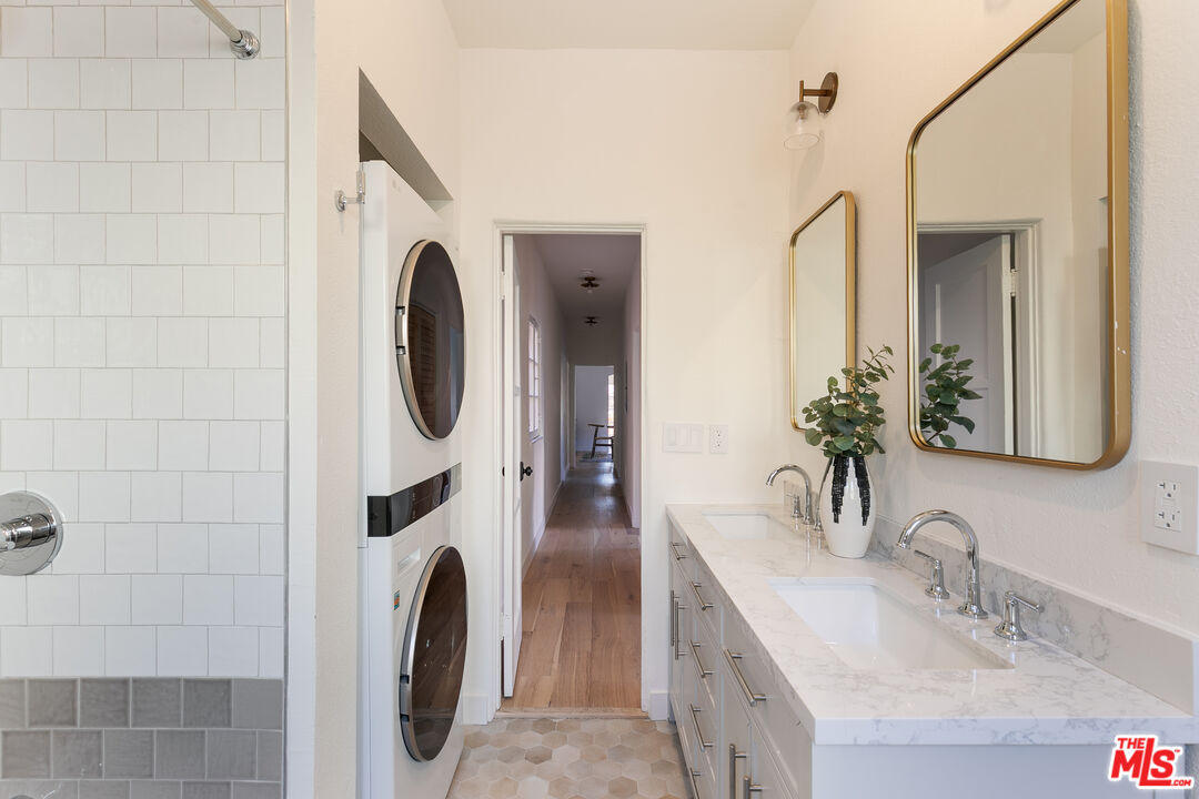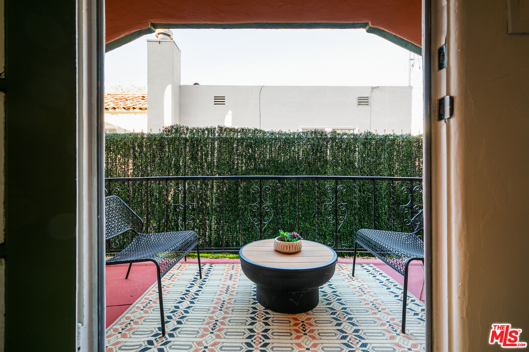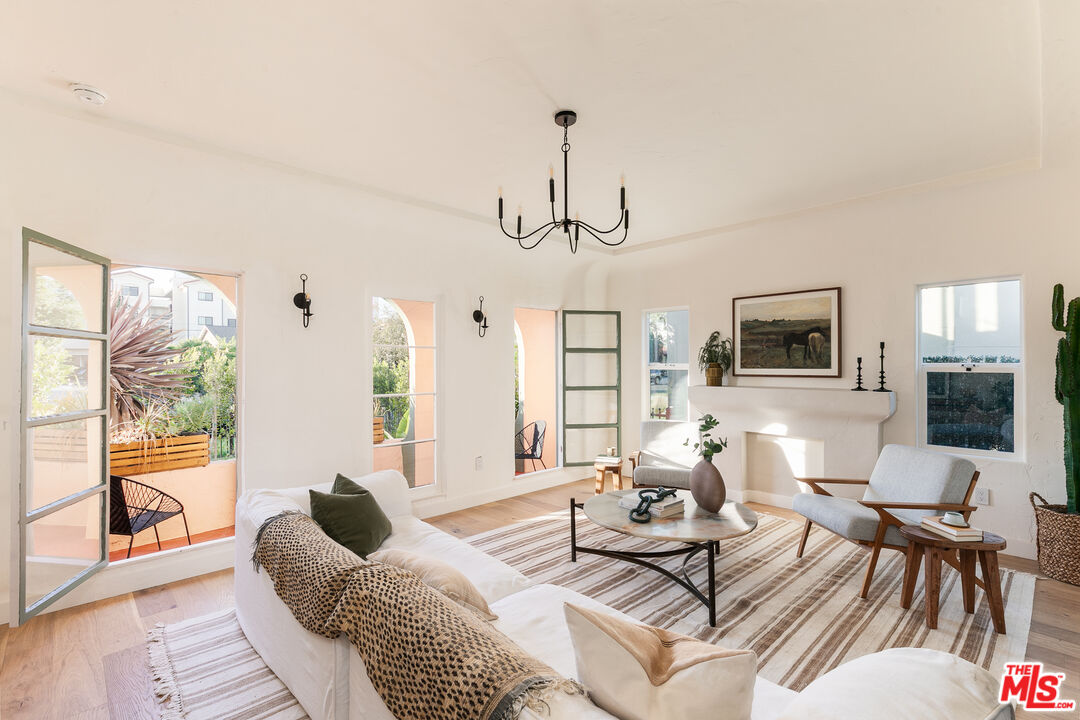 Discover the charm and grace of this thoughtfully renovated Spanish Colonial Revival, ideally situated on a light-filled corner lot. This 2-bed, 2-bath residence blends timeless character with modern comfort in all the right ways. From the moment you arrive, the architecture enchants with its warm stucco exterior, French doors leading to two private patios, one off the living room and the other off the dining room, and a hedged-in front yard that belongs exclusively to the unit, offering exceptional privacy and outdoor living. Inside, the sun-drenched layout is rich with historic detailing and generous scale. The living room flows into the dining room, while the kitchen features ample cabinetry, and a separate pantry/mud room that provides abundant storage and everyday functionality. Both bathrooms have been tastefully updated with finishes that elevate the space without overshadowing its heritage. System upgrades include HVAC, a new roof, and permitted updates to electrical, plumbing, and foundation providing peace of mind and lasting value. Secure parking is included, and the location in Faircrest Heights recognized as one of the "10 Best Districts You've Never Heard Of" by both Los Angeles Magazine and Business Insider offers historic architecture, vibrant community life, and central access to Beverly Hills, The Grove, Cedars-Sinai, La Cienega Park, and some of LA's best dining and shopping. This is a rare opportunity to own a piece of Los Angeles history restored with intention and designed to inspire.