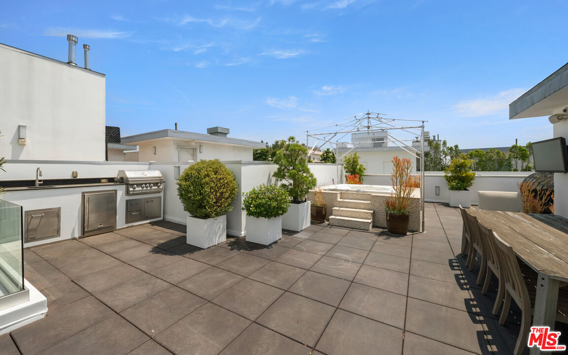 Penthouse 501 at 460 N Palm Drive delivers Beverly Hills luxury with unmatched style. This 3-bedroom, 4-bath residence offers direct elevator access, expansive living and dining areas, and a chef's kitchen with marble finishes and professional appliances. The primary suite features a spa-like bath, custom walk-in closet, and private terrace access. An exclusive spacious rooftop crowns the home, complete with multiple lounges, a fire feature, outdoor kitchen, dining space, and spa - set against sweeping city and hillside views. Additional features include en-suite bedrooms, laundry room, smart home integration, three secure side by side parking spaces, private storage, and access to a fitness center and 24-hour concierge.