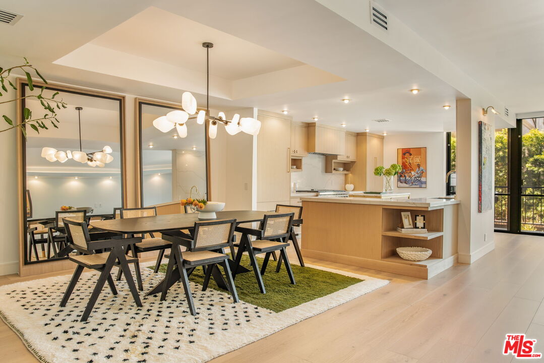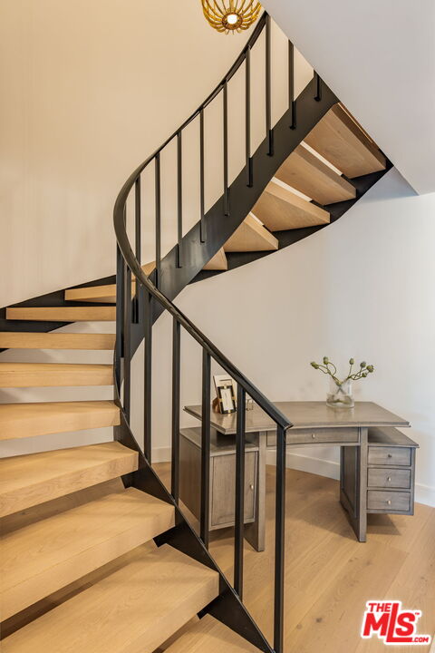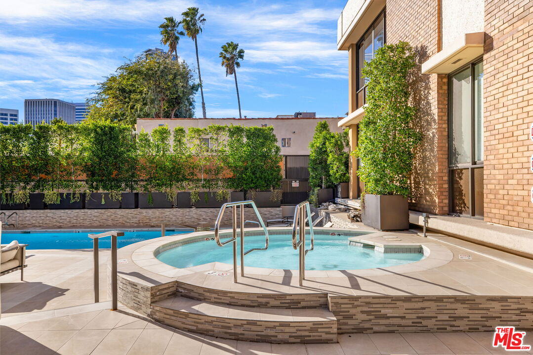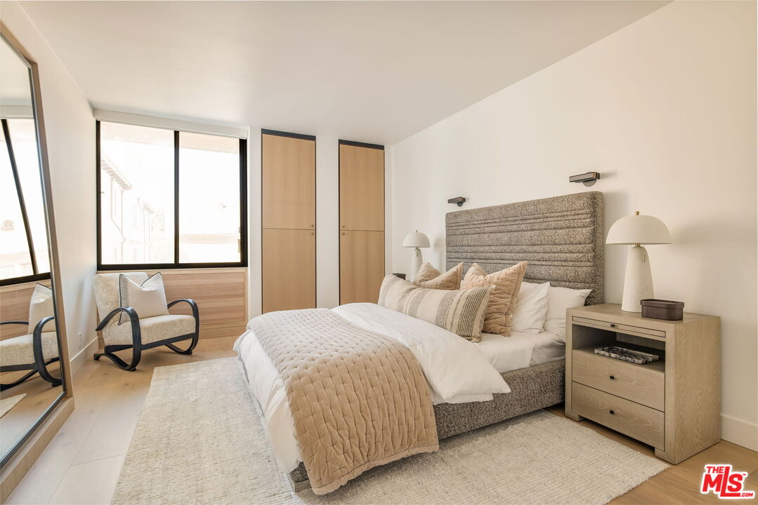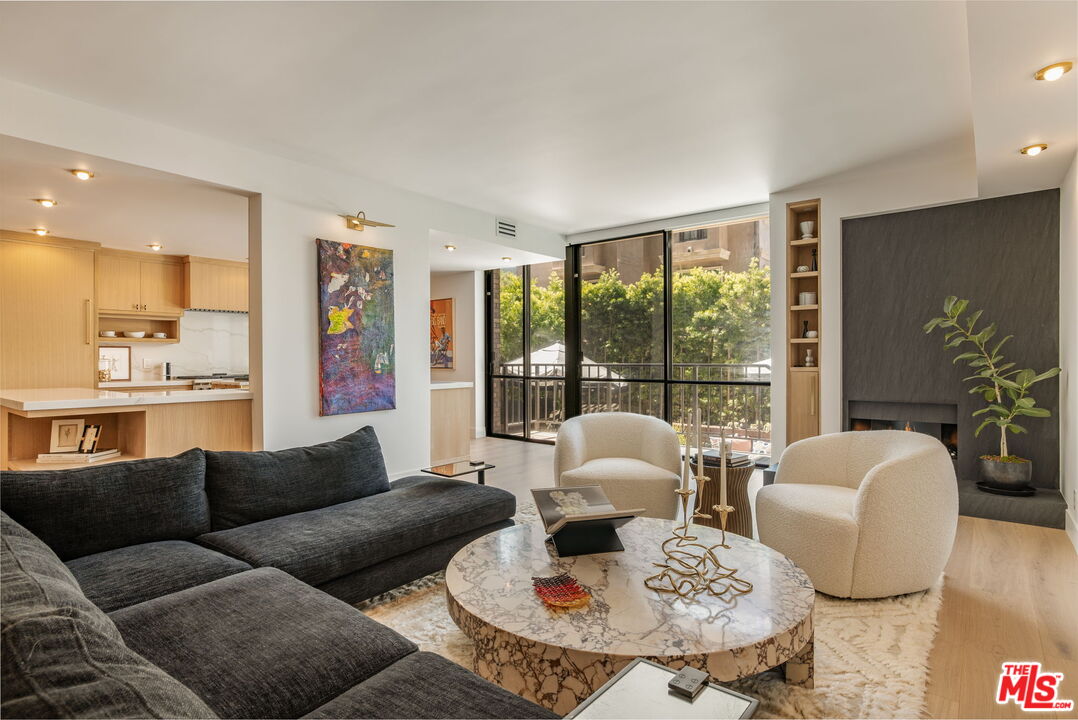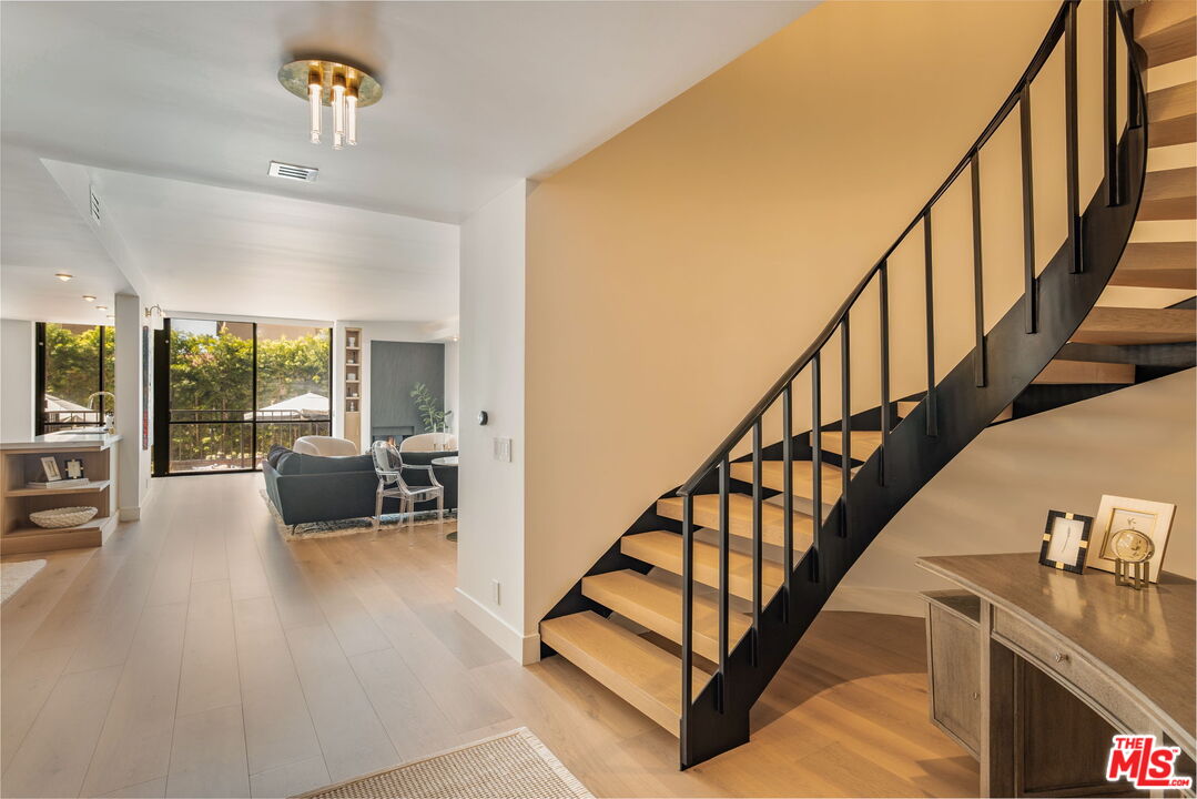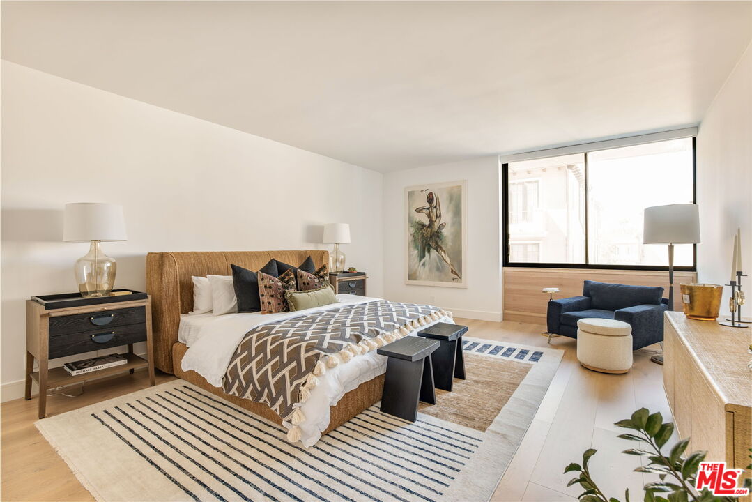 Experience elevated luxury in this newly designed 2 bedroom, 2.5 bath residence that strikes a perfect balance between modern design and natural warmth. The interior, boasting fresh and classic yet bold finishes and minimal lines, exudes sophisticated elegance. French white oak wide plank flooring is throughout this residence. A sculptural staircase takes center stage and anchors the space adding dimension and artistic flair. The expansive ambiance is enhanced by designer lighting and hardware, while the open floor plan is bathed in natural light. This home invites refined and functional living and entertaining. Sliding doors seamlessly blend indoor and outdoor spaces, ideal for hosting gatherings or enjoying peaceful relaxation. The bespoke wet bar, featuring black marble leathered countertops and an antique mirrored backsplash, elegantly adds sophistication to every occasion. The kitchen, built for today's lifestyle, is equipped with top-of-the-line appliances including a Wolf gas range, and a Miele refrigerator and dishwasher. Stunning lighting and Somfy automated shades set off the gorgeous slabs and designer hardware throughout. Unwind in the living room, with a gas fireplace set against a marble accented wall. The primary bedroom suite offers two spacious walk-in closets and an ensuite bathroom featuring mosaic marble floors and stunning marble wainscoting and slabs. This spa-like retreat has everything you need, including a soaking tub. Additional highlights include elevator access and an entry door on each level, new dual HVAC systems, new plumbing, and a large, private outdoor loggia. Enjoy luxury amenities including a 24 hour Concierge, security, optional valet parking, cable and high speed internet, EQ insurance, a newly updated pool, spa, fitness center and sauna. Located in the heart of Beverly Hills, you are just moments from the well known Golden Triangle, surrounded by fine dining and world class shopping.