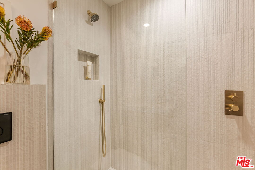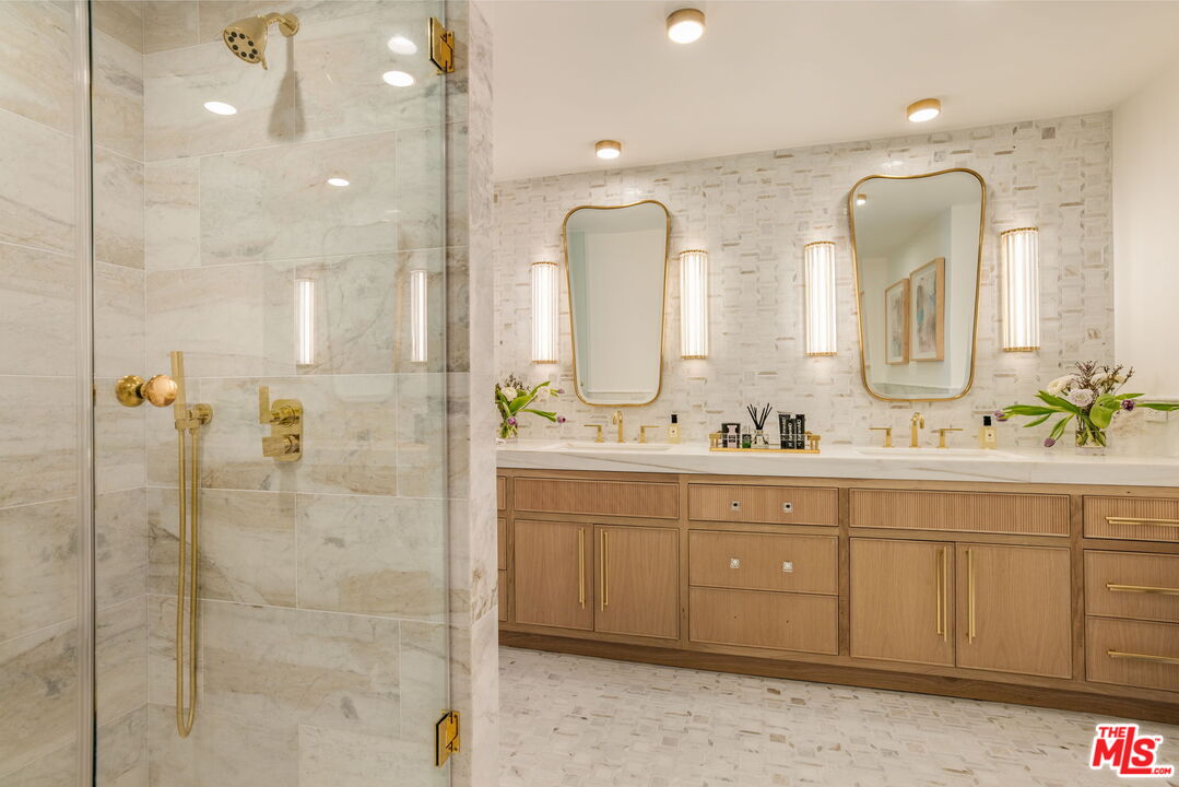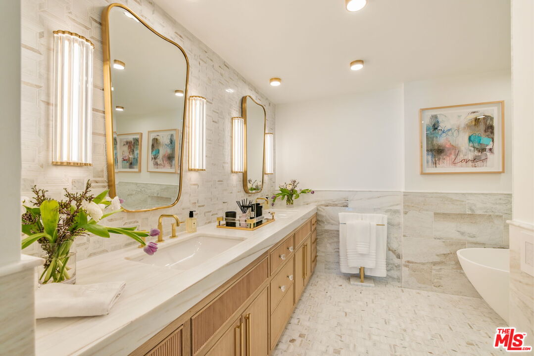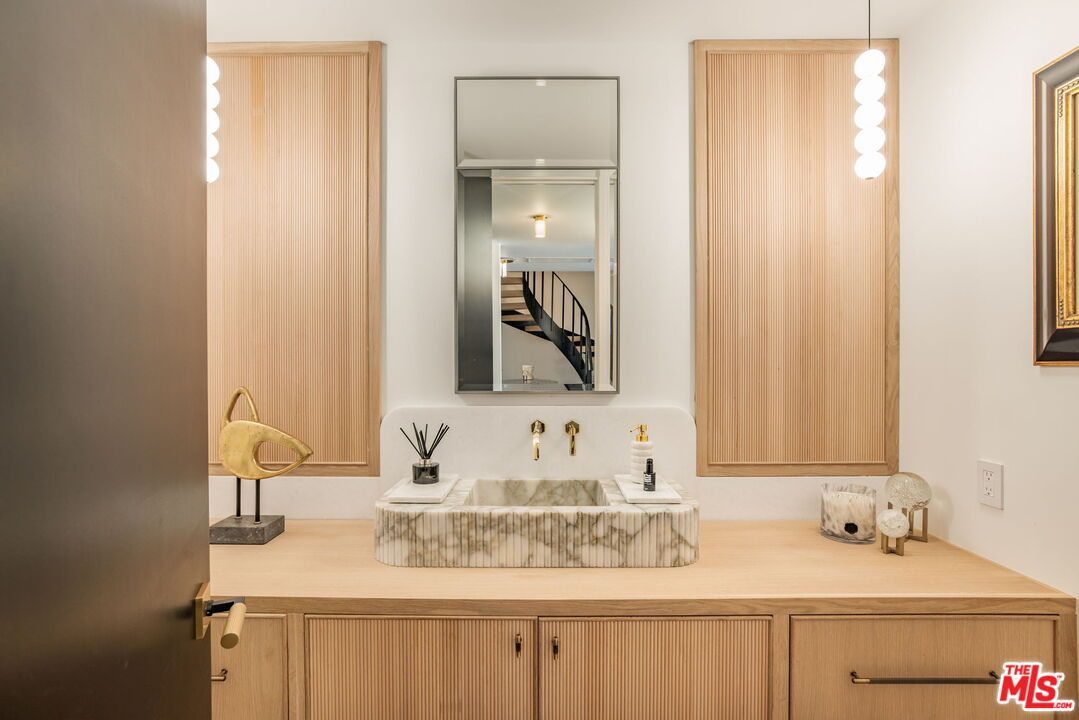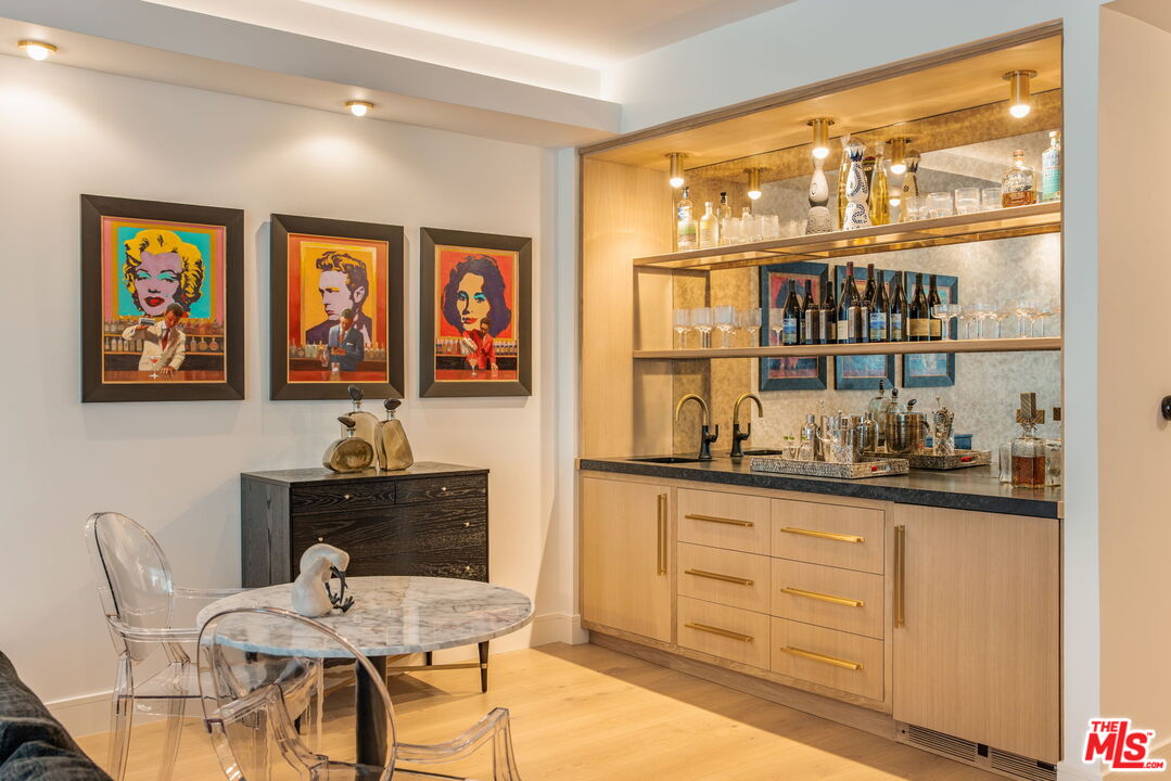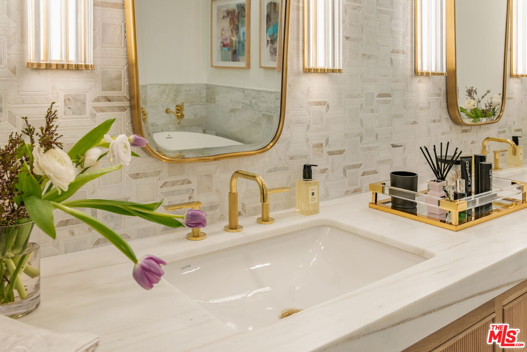 Experience elevated luxury in this newly designed 2 bedroom, 2.5 bath residence that strikes a perfect balance between modern design and natural warmth. The interior, boasting fresh and classic yet bold finishes and minimal lines, exudes sophisticated elegance. French white oak wide plank flooring is throughout this residence. A sculptural staircase takes center stage and anchors the space adding dimension and artistic flair. The expansive ambiance is enhanced by designer lighting and hardware, while the open floor plan is bathed in natural light. This home invites refined and functional living and entertaining. Sliding doors seamlessly blend indoor and outdoor spaces, ideal for hosting gatherings or enjoying peaceful relaxation. The bespoke wet bar, featuring black marble leathered countertops and an antique mirrored backsplash, elegantly adds sophistication to every occasion. The kitchen, built for today's lifestyle, is equipped with top-of-the-line appliances including a Wolf gas range, and a Miele refrigerator and dishwasher. Stunning lighting and Somfy automated shades set off the gorgeous slabs and designer hardware throughout. Unwind in the living room, with a gas fireplace set against a marble accented wall. The primary bedroom suite offers two spacious walk-in closets and an ensuite bathroom featuring mosaic marble floors and stunning marble wainscoting and slabs. This spa-like retreat has everything you need, including a soaking tub. Additional highlights include elevator access and an entry door on each level, new dual HVAC systems, new plumbing, and a large, private outdoor loggia. Enjoy luxury amenities including a 24 hour Concierge, security, optional valet parking, cable and high speed internet, EQ insurance, a newly updated pool, spa, fitness center and sauna. Located in the heart of Beverly Hills, you are just moments from the well known Golden Triangle, surrounded by fine dining and world class shopping.