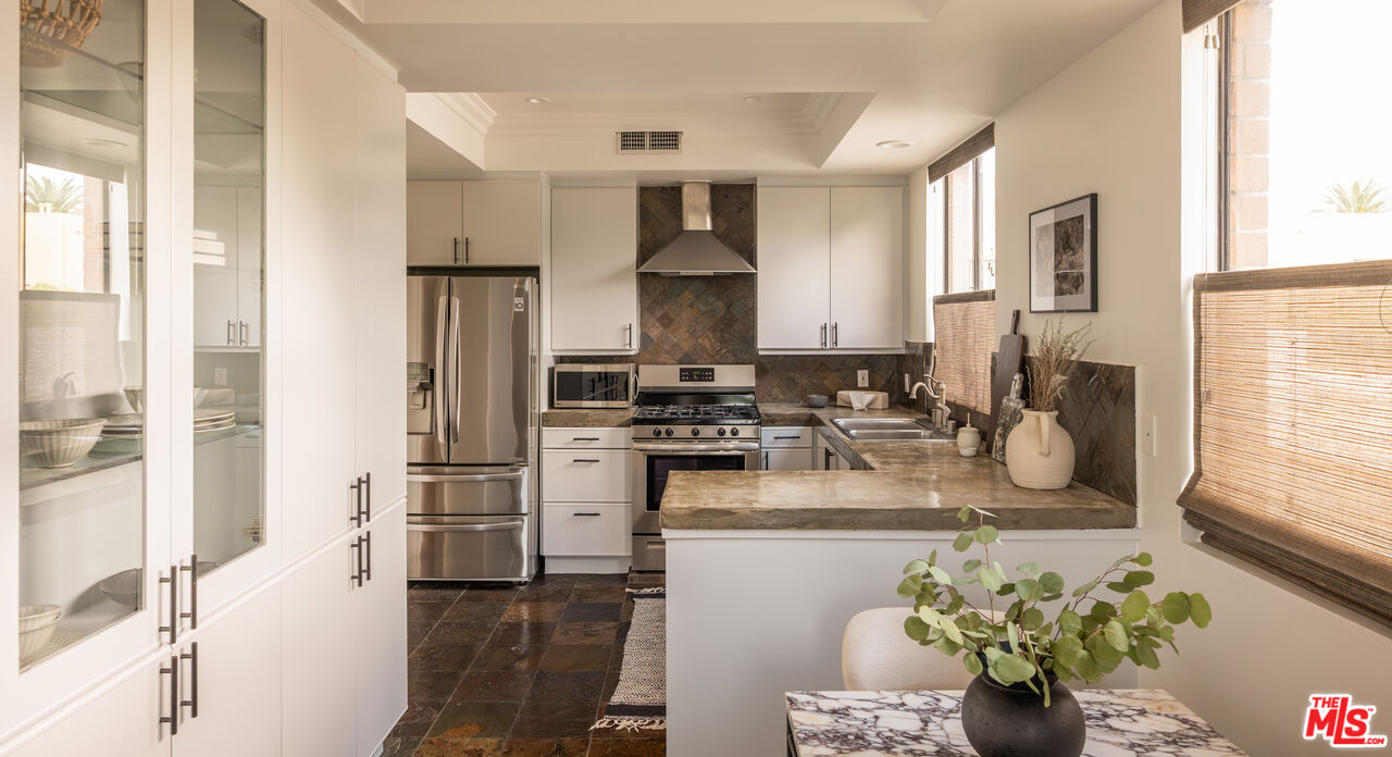 This refined condo in a boutique Beverly Hills building offers abundant natural light and an airy, open feel. Ideally located, it's just steps from a serene park, tennis courts, and exceptional dining. A rare blend of tranquility and urban convenience in an iconic location.