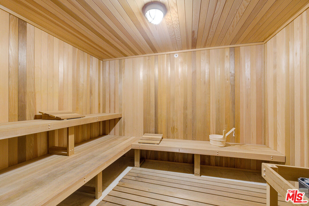 Long awaited 2 Bedrooms ~ 2.5 Bathrooms Penthouse that exudes privacy and elegance in the heart of Beverly Hills with 24h Concierge service. Bathed in natural light from every angle, this home features an open floor plan, high ceilings, skylight windows, cosy fireplace and city views. The living room is highlighted by two sets of French doors flooding the space with sunlight and an open patio perfect for savoring your morning tea or relishing an evening glass of wine. The adjoining kitchen is a chef's dream, equipped with deluxe Viking appliances, beautiful countertops and multiple cabinets seamlessly connecting to the dining area perfect for gathering. Generously sized master bedroom complete with a custom walk-in wardrobe and en-suite bathroom with skylight window, separate tub and shower, along with a dual sink vanity featuring a spa-like design. The Guest bedroom is equally impressive, surrounding by palm trees with multiple windows that invite in plenty of light and a chic glass wardrobe that adds a touch of modernity. Convenience meets style with an in-unit laundry room and guest powder room. Indulge in the array of amenities that Maison Reeves Condominiums has to offer, including a large fitness room, sauna, 24-hour Concierge service and 3 side by side parking spaces, a private storage room and immaculately maintained spaces. Located a stones throw to the renowned shopping on Rodeo Dr, fine dining, and incredible entertainment options.