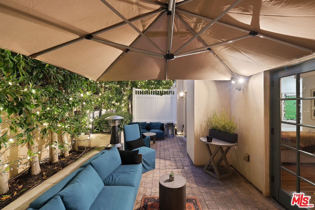 Welcome to the absolute pinnacle of Beverly Hills luxury living, a residence where timeless elegance harmoniously embraces contemporary California sophistication. Unit 107 at 225 S Hamilton represents an extraordinary opportunity to acquire a meticulously curated, impeccably maintained, spacious home at one of the world's most distinguished and sought-after addresses, with 5 individual, free-standing, deeded garaged parking spaces. From the moment you cross the threshold of this distinguished residence, your eyes have an unobstructed view of a professionally landscaped terrace through a pair of fully glass-paned floor-to-ceiling French doors. Entering your home to this kind of openness and lightness - priceless. This impeccably designed 2-bedroom, 2.5-bath residence spans over 1,750 square feet of thoughtfully curated indoor living space, featuring stunning 5-inch-wide hand-laid German Oak flooring. Unique to this unit is the vast, pristine, available wall space measuring approximately 14 feet high. This creates a gallery-like ambiance - a sophisticated canvas ideally suited for the discerning collector. Whether you're showcasing museum-caliber contemporary art, investment-grade photography, or treasured family heirlooms, these pristine walls provide the perfect backdrop for your most prized possessions. The crown jewel of this extraordinary residence is the (approximately 600 square feet) private terrace consisting of 40 mature Ficus trees, lush jasmine plantings, and a prized olive tree. White picket fences complete the enclosure, creating a private sanctuary. Access to the terrace comes from both the living room and the dining room, through 2 pairs of identical Double French Doors, further expanding the flow of this residence. It is a true extension of your living space, featuring premium weather-resistant surfaces, ample drainage, a 12-by-12-foot retractable designer umbrella, decorative landscaped lighting, hardwired ring security lighting, and hardwired weather-resistant outdoor speakers connected to the residence's central audio/video system. This enchanting outdoor entertainment area epitomizes California luxury. The heart of this exceptional home is its expansive gourmet kitchen. The thoughtfully appointed, custom cabinetry provides ample storage, laid out with premium, professional-grade appliances. Unit 107 transcends mere aesthetics with its sophisticated technological infrastructure, seamlessly integrating cutting-edge systems into the home's refined design. A professionally installed, phone-app-controlled hardwired audio/visual system transforms the residence into an immersive auditory experience. Security and peace of mind are paramount in luxury living, which is why this residence features a state-of-the-art ADT security system seamlessly integrated throughout the home. Comprehensive yet discreet, the system includes motion sensors, door/window contacts, and 24/7 professional monitoring, all controlled via smartphone app for complete security whether you're at home or traveling the world. Smart home integration lets you monitor your home remotely, receive instant alerts, and even grant access to trusted guests or service professionals. The building employs a dedicated full-time superintendent who ensures impeccable maintenance, mechanical repair, and on-site landscaping. For the discerning buyer who demands excellence in every aspect of life, who appreciates the difference between ordinary luxury and extraordinary distinction, and who understands that true luxury is found in the details. Unit 107 awaits. Experience this exceptional offering through a private presentation. Contact us today to schedule your exclusive, confidential tour of Beverly Hills' most distinguished residence.