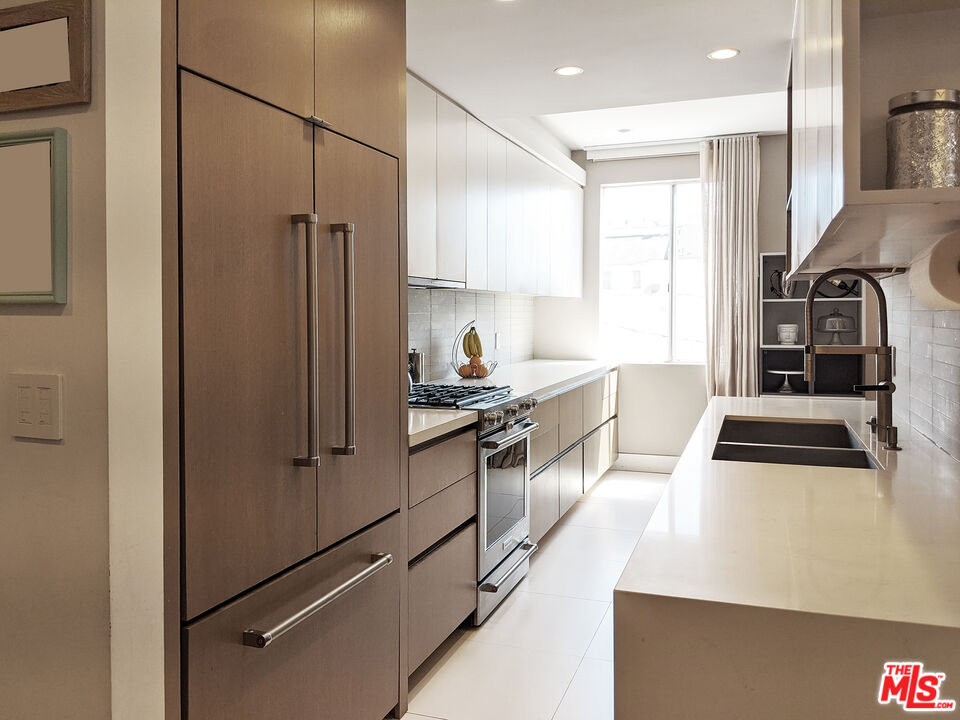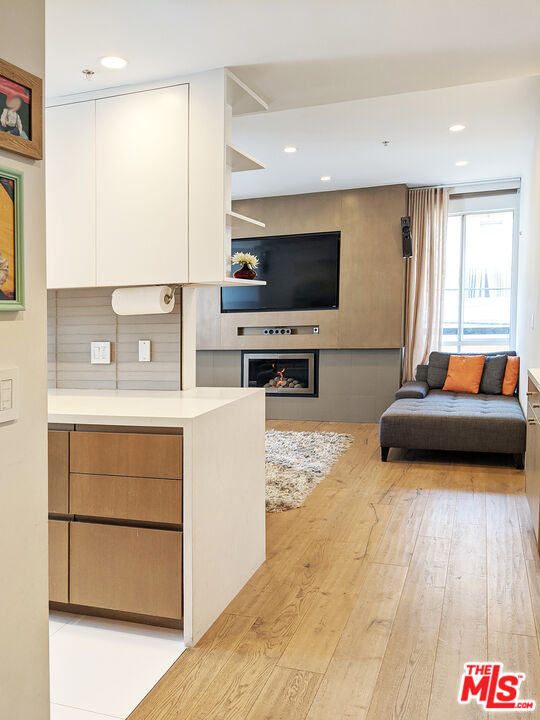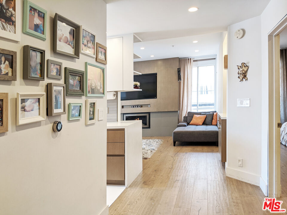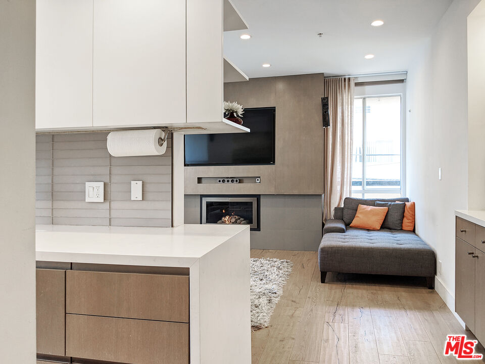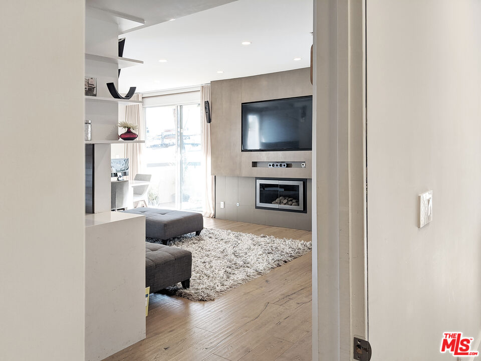 Completely remodeled stunning 2 bed 2 bath condo for rent in an ideal location. Features include wide planked hardwood floors, porcelain and limestone tiles, over-sized laundry room & custom closets in both bedrooms with great room for storage. Unit is well-lit with 9 foot ceilings, recessed LED lighting throughout, integrated home audio/video, remote control roller blackout and fabric shades, gorgeous fireplace, Nest thermostat, and WiFi capable lights. Kitchen has ceasarstone counters, paneled fridge, new appliances, and soft-close drawers. Master bathroom includes huge limestone shower with dual vanities and private lav. Long balcony along back of unit is lined with wood decking. Building has recently remodeled hallways, fully upgraded elevator equipment and cabin, new roof, and security system. Plenty of guest parking. Just steps to nearby salons and restaurants on Robertson Blvd, Cedars Sinai, West Hollywood and La Cienega Park.