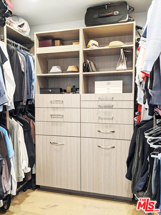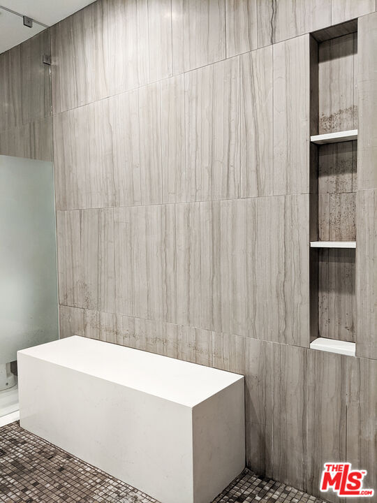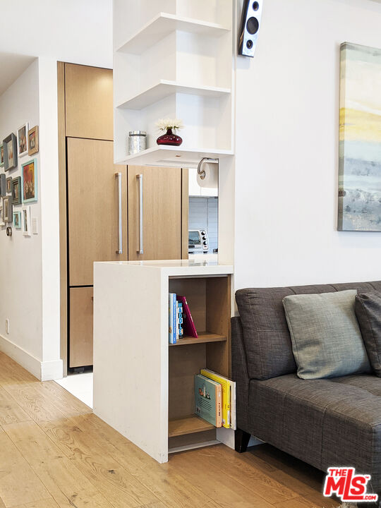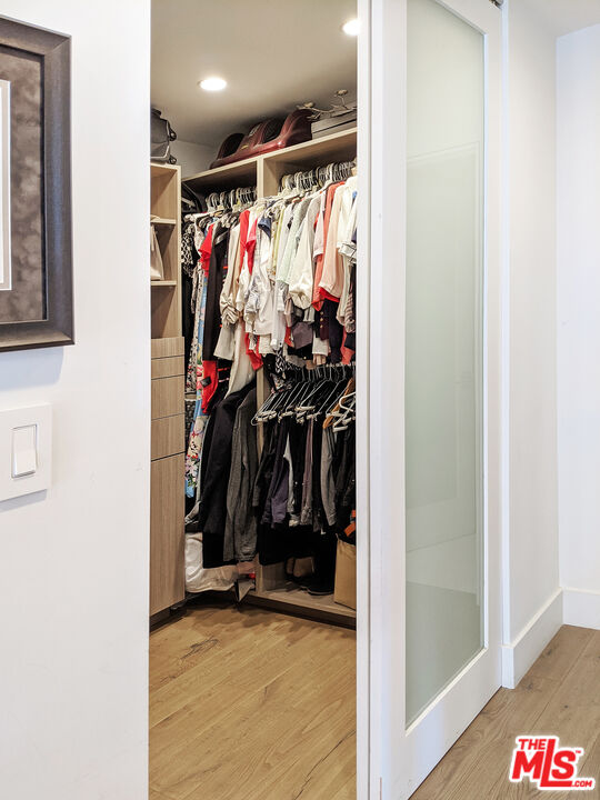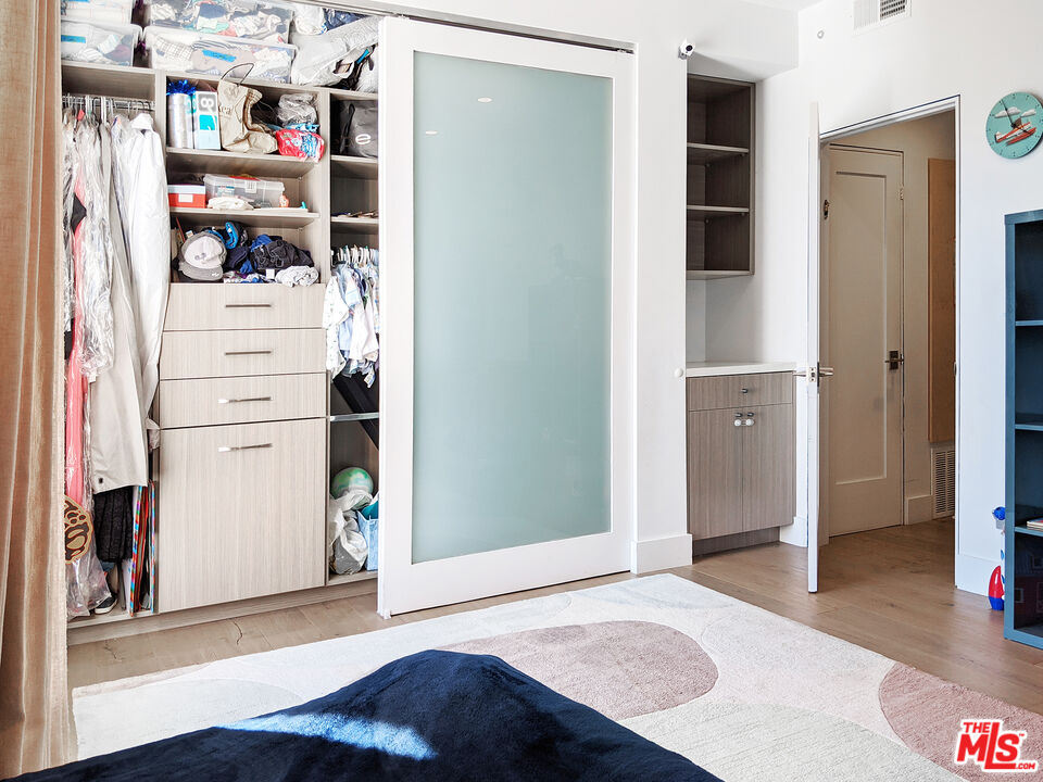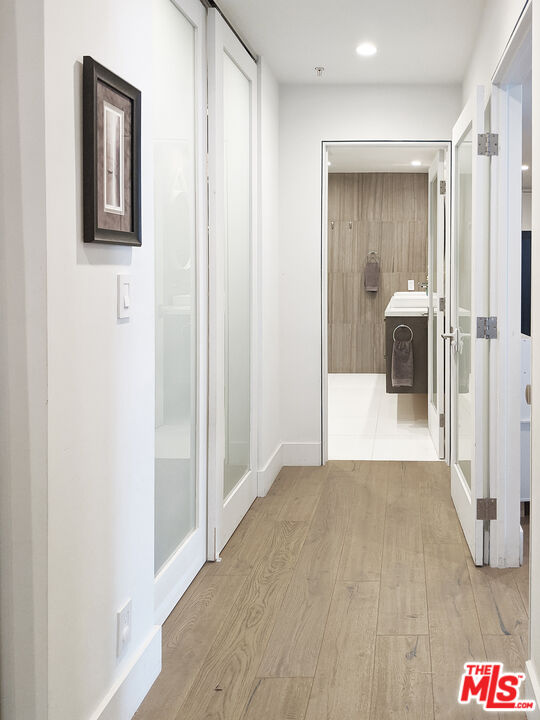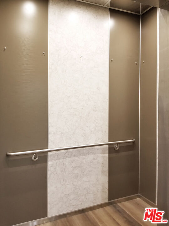 Completely remodeled stunning 2 bed 2 bath condo for rent in an ideal location. Features include wide planked hardwood floors, porcelain and limestone tiles, over-sized laundry room & custom closets in both bedrooms with great room for storage. Unit is well-lit with 9 foot ceilings, recessed LED lighting throughout, integrated home audio/video, remote control roller blackout and fabric shades, gorgeous fireplace, Nest thermostat, and WiFi capable lights. Kitchen has ceasarstone counters, paneled fridge, new appliances, and soft-close drawers. Master bathroom includes huge limestone shower with dual vanities and private lav. Long balcony along back of unit is lined with wood decking. Building has recently remodeled hallways, fully upgraded elevator equipment and cabin, new roof, and security system. Plenty of guest parking. Just steps to nearby salons and restaurants on Robertson Blvd, Cedars Sinai, West Hollywood and La Cienega Park.