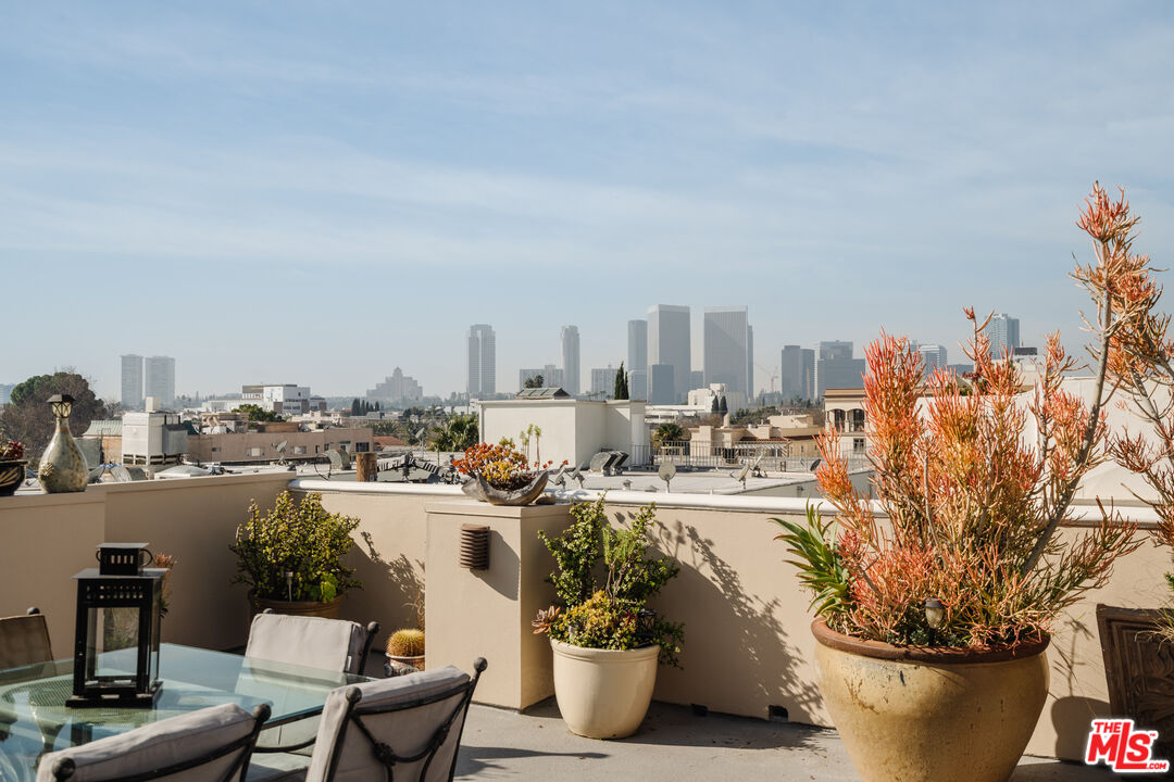 Stunning Two-Story Mediterranean Penthouse located in the heart of Beverly Hills, close to all the incredible restaurants, shopping and businesses that downtown Beverly Hills offers. Enter the fully furnished, (owner would consider partially furnished or unfurnished), spacious home via private elevator direct access to double height ceilings, tile and hardwood flooring, beautiful moldings and lots of light. The main floor includes an open Living Room and dining area with Romeo and Juliet style balcony, an intimate family room/Den with a full bar and sink, large kitchen with center island, stainless steel appliances and breakfast area, two guest bedrooms with full bathroom, Powder Room, and washer/dryer. Upstairs is a balcony overlooking the Living Room and leading to a massive private roof-top patio with amazing, picturesque views. Also, upstairs is the Primary suite with fireplace, walk in closet, and large bathroom featuring a spa tub and double sinks. Building is secure with coded entry, garage parking with 3 side by side spaces and guest parking. Offered FULLY FURNISHED with linens, towels, dishes...., (OWNER WOULD CONSIDER PARTIALLY FURNISHED OR UNFURNISHED).
