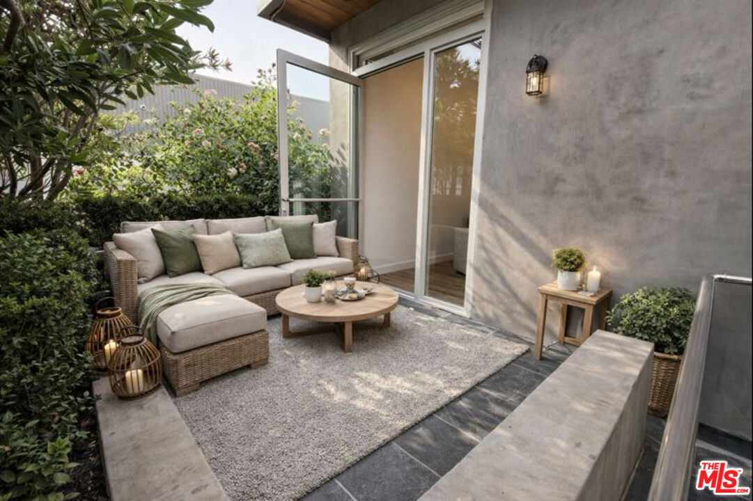 Welcome to Glenville Villas, a newer modern luxury apartment building on the Westside offering high-end design, premium finishes, and exceptional indoor-outdoor living. Unit 101 is a highly desirable residence featuring a private patio, automatic motorized shades, and abundant natural light throughout an open-concept floor planperfect for entertaining or working from home.The Brazilian-designed kitchen showcases modern Brazilian cabinetry, quartz stone countertops, a full quartz backsplash, stainless steel appliances, and a spacious peninsula ideal for cooking, dining, and hosting. The living area flows seamlessly to the private outdoor patio, creating a true extension of the living space.The bedroom features custom high-quality Brazilian closets, refined woodwork, and a sleek modern aesthetic. Additional highlights include LED lighting, in-unit washer and dryer, central HVAC, and contemporary finishes throughout.Residents enjoy access to a beautiful rooftop deck with lounge furniture, tables, and south-facing city views. Ideally located within short distance to shops, cafes, markets, and restaurants along Pico Blvd, Beverly Dr and Beverly Hills dining and retail.Parking included, with EV charging available.Easy to show by appointment. Pet inquiries welcome.