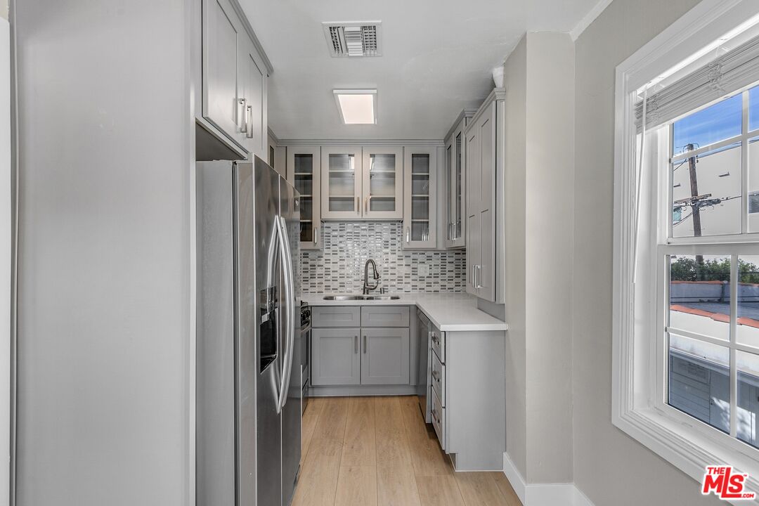 MOVE-IN SPECIAL! One Month FREE on a 13-Month Lease (last month will be free)! Contract Rent is $2,750. Net-Effective approx. $2,538. Welcome to this charming top-floor 2BR/1BA, nestled in an unbeatable location near Pico-Robertson! With Little Ethiopia, The Grove, and Museum Row just minutes away, you'll be immersed in some of LA's best dining, shopping, and cultural attractions. Lush sidewalks lined with palm trees give the area its quintessential Los Angeles feel, and this intimate 12-unit building (split between two separate structures) offers a cozy community vibe. Step inside and fall in love! The front door complete with a vintage peephole opens into a sun-filled living space with large windows, recessed lighting, and central A/C & heat to keep you comfortable year-round. The stylish kitchen is a chef's dream, featuring stainless steel appliances, a double-door fridge with built-in water and ice dispensers, elegant glass-front cabinetry, and a trendy backsplash. There's even space for a cozy breakfast nook, perfect for sipping your morning coffee while soaking in the natural light from two bright windows. Down the hall, you'll find built-in storage for extra convenience. The two bedrooms both feature closets one even has a walk-in! While the updated bathroom boasts a sleek subway-tiled shower/bath combo and a window ideal for your favorite humidity-loving plant. Don't miss your chance to live in this prime LA locationschedule a tour today!