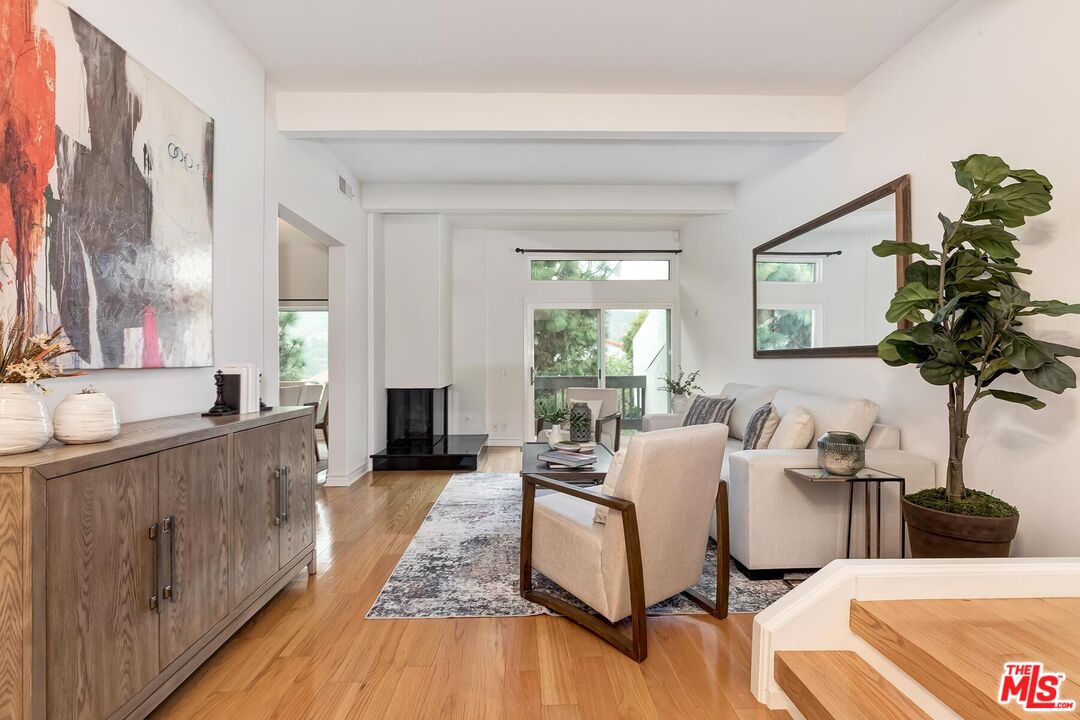 With nearly 2,500 square feet of living space spread across three levels, this highly sought-after 400 floor plan is one of the largest in the Michael Lane Villas community. A welcoming front patio leads into a dedicated foyer, opening to a spacious flex room that can serve as a sitting area, home office, gym, studio, or guest suite with its own bathroom. The mid-level provides direct access from the private two-car garage and features a kitchen with beautiful maple cabinetry and granite countertops, bright dining area, spacious living room, and a powder bath. The home showcases high ceilings, two fireplaces, multiple balconies, and stunning views of the Santa Monica Mountains. Upstairs, you'll find all three bedrooms, including an expansive primary suite complete with a walk-in closet and ensuite bath. Residents of this cherished community enjoy an array of amenities, including a recently renovated pool, sauna, fitness center, and ample guest parking. This townhouse has been thoroughly and thoughtfully remodeled. It features marble tiles on the first level, hardwood floors on the second level, and new luxury carpet on the third floor. The second and third floors are connected via modern floating stairs and glass railings. The townhouse has custom doors, new double-pane California Deluxe windows and sliding doors (all installed in 2021), as well as modern closets and mirrored sliding closet doors. The bathrooms are also modern, with the master bathroom featuring an air jet spa. And that is not all. This home is technologically advanced. In addition to new Carrier AC unit and furnace, it has LED lighting and modern light fixtures throughout, as well as Honeywell security system, AC system and video cameras which can all be remotely controlled and monitored. And both the first and second levels have home theater audio wiring in the walls. There are also network cables in the walls for more reliable internet. Let's not forget the garage! It features an epoxy floor, a hydraulic car lift (with plumbing for air tools), super bright LED lights, an upgraded insulated garage door, high-end LiftMaster garage door operator, as well as a one-of-a-kind custom fingerprint exterior keypad. This is a townhouse you will enjoy for years! HOA dues iclude roof, water and security. Neither Seller nor Broker/Agents guarantee the accuracy of the square footage, lot size, permits or other information concerning the conditions or features of the property. Buyer is advised to independently verify the accuracy of all information (including square footage) through personal inspections and with the appropriate professionals. See DOCS for Offer Guidelines.