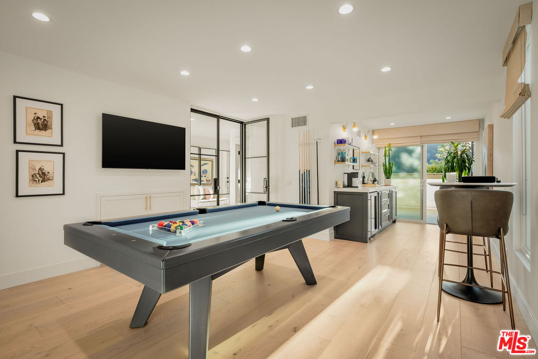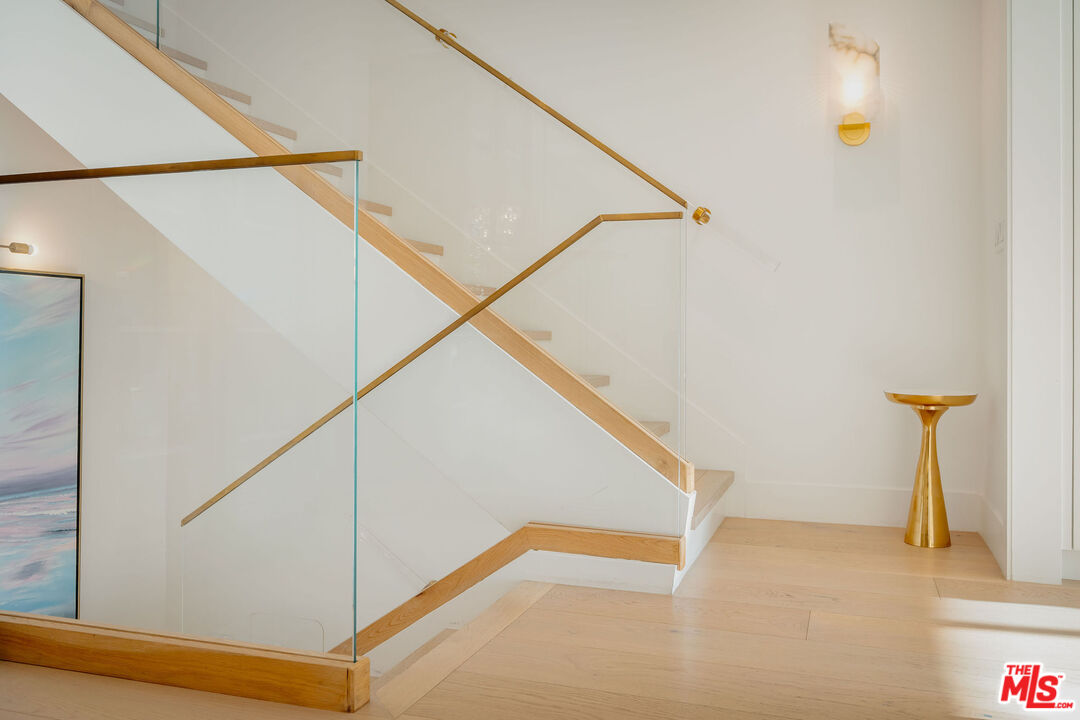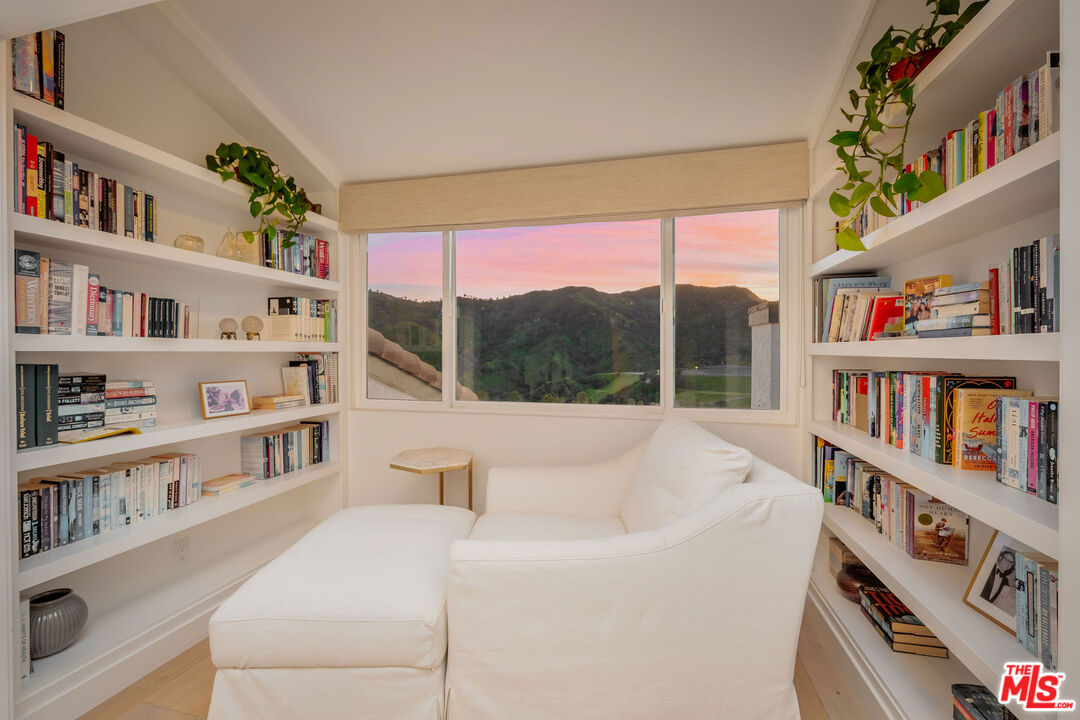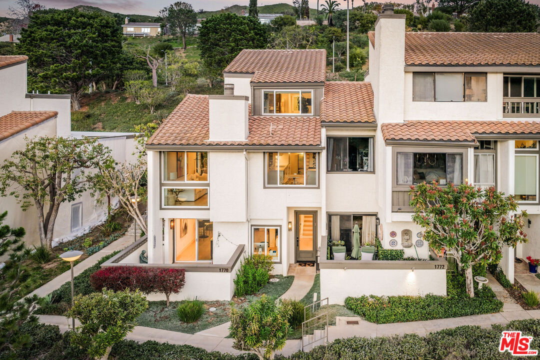 Perched on the rim of Palisades Drive with sweeping canyon views, this exquisitely redesigned townhouse is a rare, view home reimagined by designer Joleen Porcaro-Duddy. Flooded with natural light, the main living area features soaring ceilings, expansive windows framing the canyon, and a striking fireplace anchoring the living, dining, and chef's kitchen, finished in crisp whites with refined gold accents and top-tier materials throughout. The primary suite is a serene retreat with a sunlit reading nook overlooking the canyon, a spectacular walk-in closet, and ensuite bath. The lower level offers a dramatic glass-entry door, private office, full bath, and an expansive den or flexible entertaining space, currently styled with a bar and custom-fit pool table, opening to a secluded deck ideal for entertaining. Iconic views, flawless design, and true move-in readiness, this one truly sings.