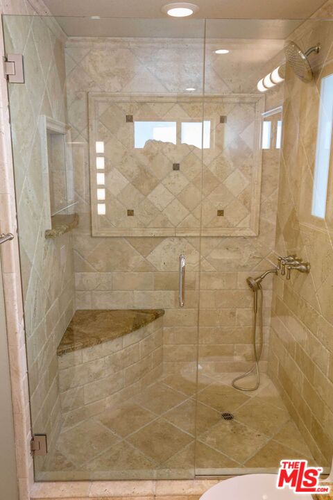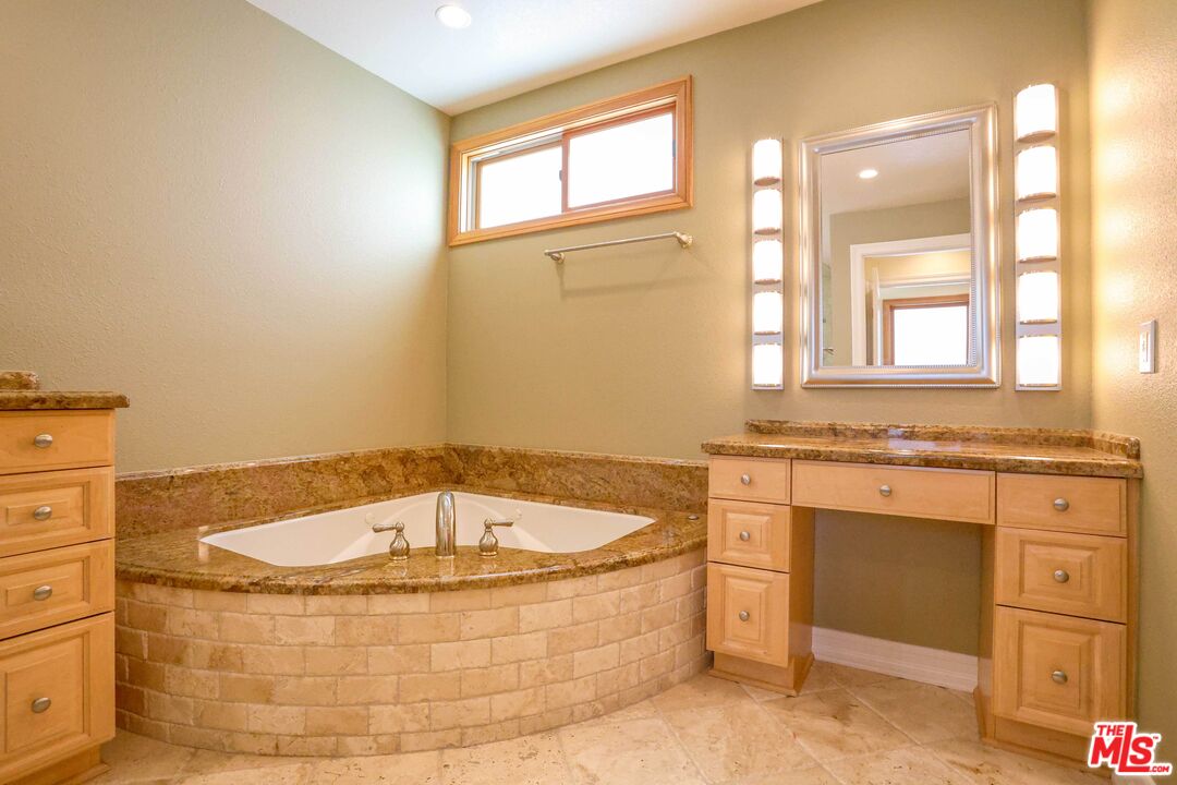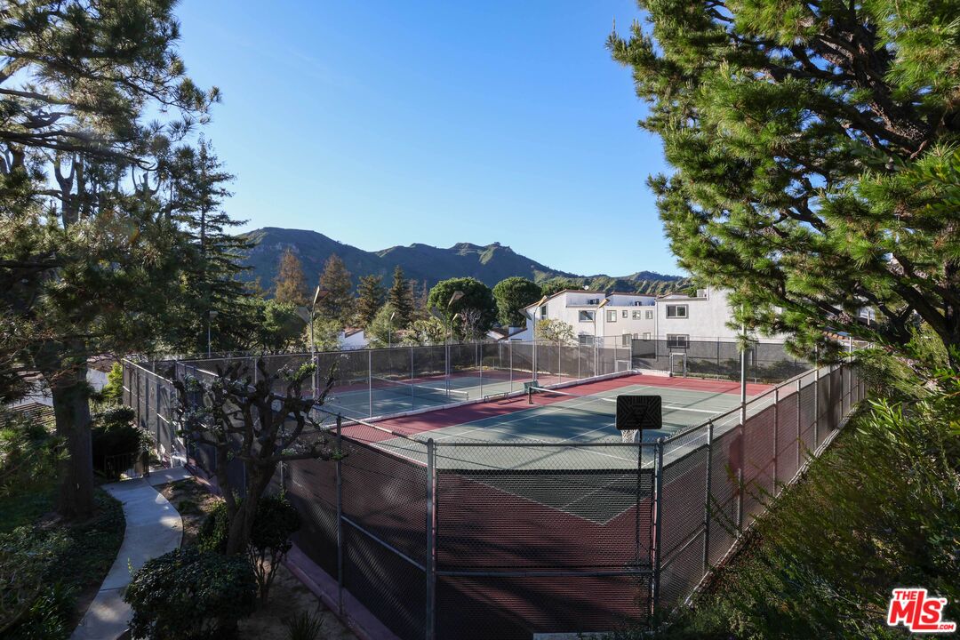 Palisades Highlands town home with mountain and ocean view. Granite countertops with stainless steel appliances and custom cabinetry. Bathrooms feature granite and travertine finishes. Hand-scraped hardwood floors and travertine tile throughout. Living room with travertine slab fireplace. Dual-glazed Low-E windows and front door. Spanish tile roof. Interior solid-core raised panel doors. Dual-zone air conditioning. Gated front entry patio with travertine tile. Two-car garage with laundry center. Community amenities include pool, sauna, Jacuzzi, tennis courts, and gym. Property includes membership to the Highlands' private park with children's playground, walking track, and sports fields. List agent related to seller.