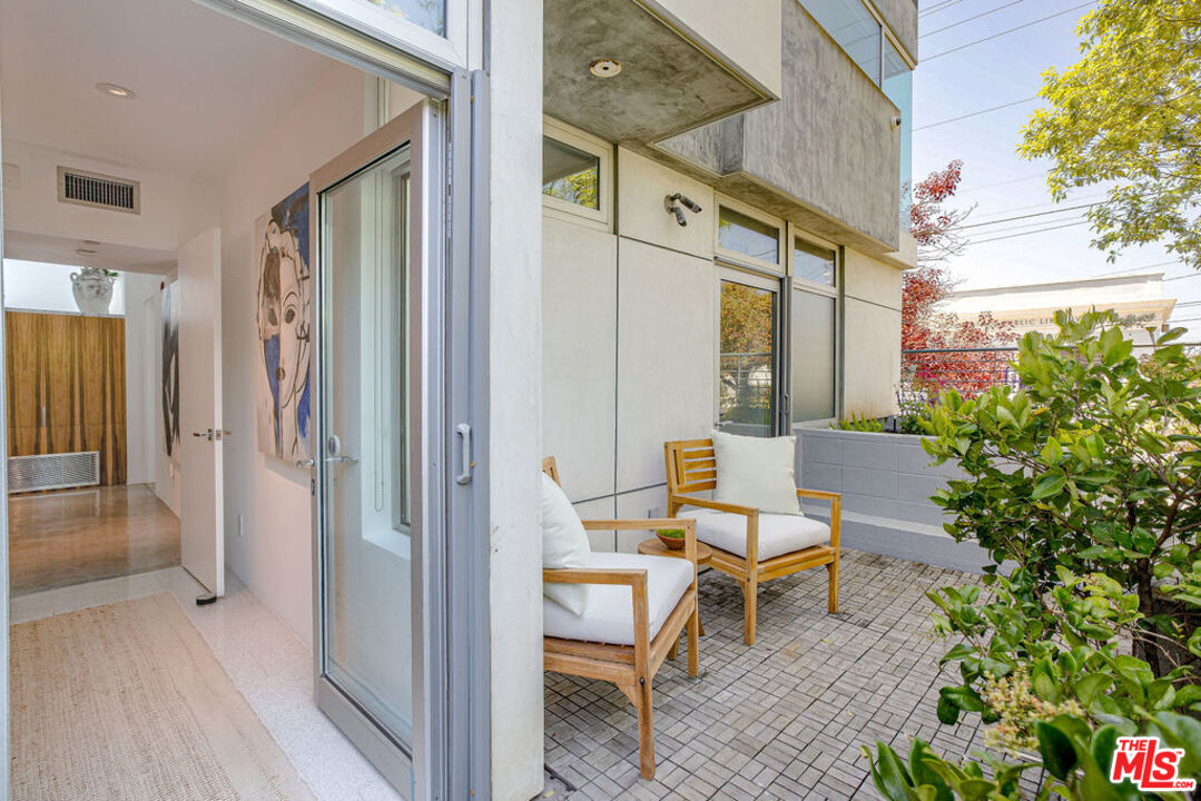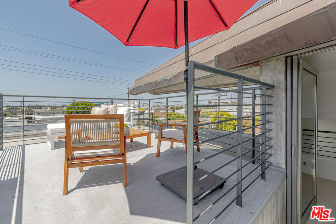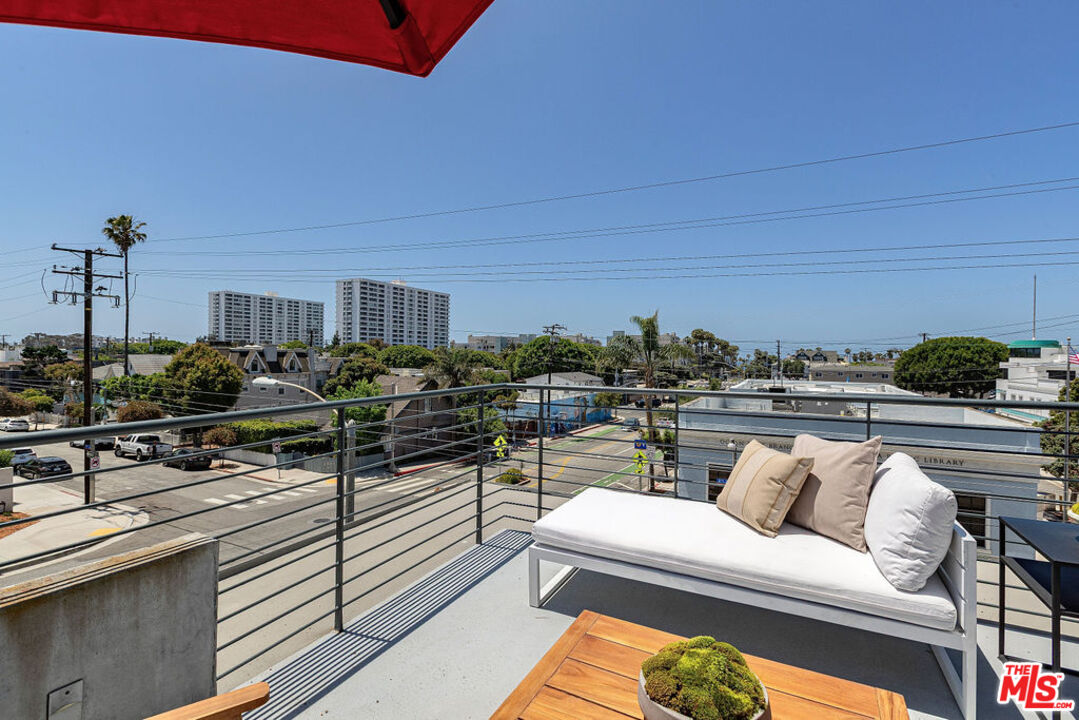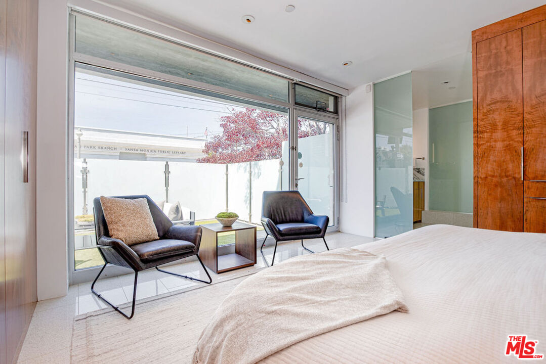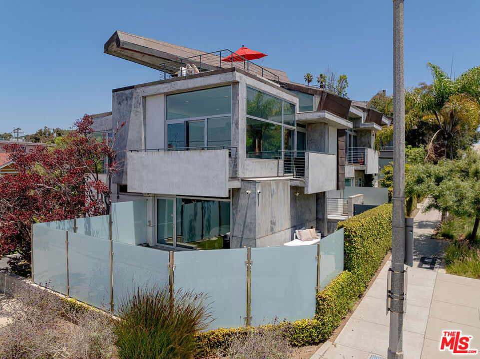 Fully Remodeled Modernist Townhome by Michael Folonis, one block from Main Street and two blocks from the sand, this iconic 3-bedroom, 3-bathroom townhome designed by celebrated architect Michael Folonis, FAIA offers a rare blend of architectural pedigree and thoughtful contemporary upgrades. Originally built in 2006 and recently enhanced with high-end renovations, the residence now features completely remodeled kitchen and bathrooms, blending timeless design with modern comfort. The kitchen showcases custom Claro Walnut cabinetry, creating a warm yet sleek contrast to the home's minimalist structure. New finishes elevate all three bathrooms, delivering a clean, spa-like aesthetic that complements the overall vision. Flooded with natural light and surrounded by glass, the open-concept living and dining areas are elevated to the second floor, offering an expansive, gallery-like space that opens to a private balcony. A versatile mezzanine loft above serves perfectly as an office, den, or creative space, and leads to a private rooftop deck with sweeping city and coastal views. What truly sets this home apart is its direct connection to the outdoors. A private yard extends from the primary suite, while a serene garden patio opens from both secondary bedrooms, creating a peaceful and livable experience that flows effortlessly between inside and out. Interior features include a harmonious mix of hardwood high end cabinetry and polished terrazzo tile flooring, high ceilings, and extensive custom cabinetry throughout. Additional highlights include 2-car side-by-side parking in a gated underground garage, in-unit laundry, and an unbeatable location at the crossroads of Santa Monica and Venice, close to the beach, cafes, boutiques, and the energy of Abbot Kinney. This is more than a home. It is a statement of architectural intent, now reimagined for modern coastal living. Small 3 unit building with earthquake insurance.