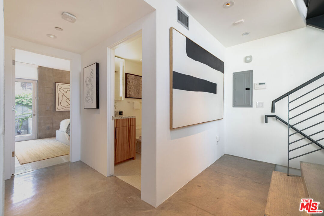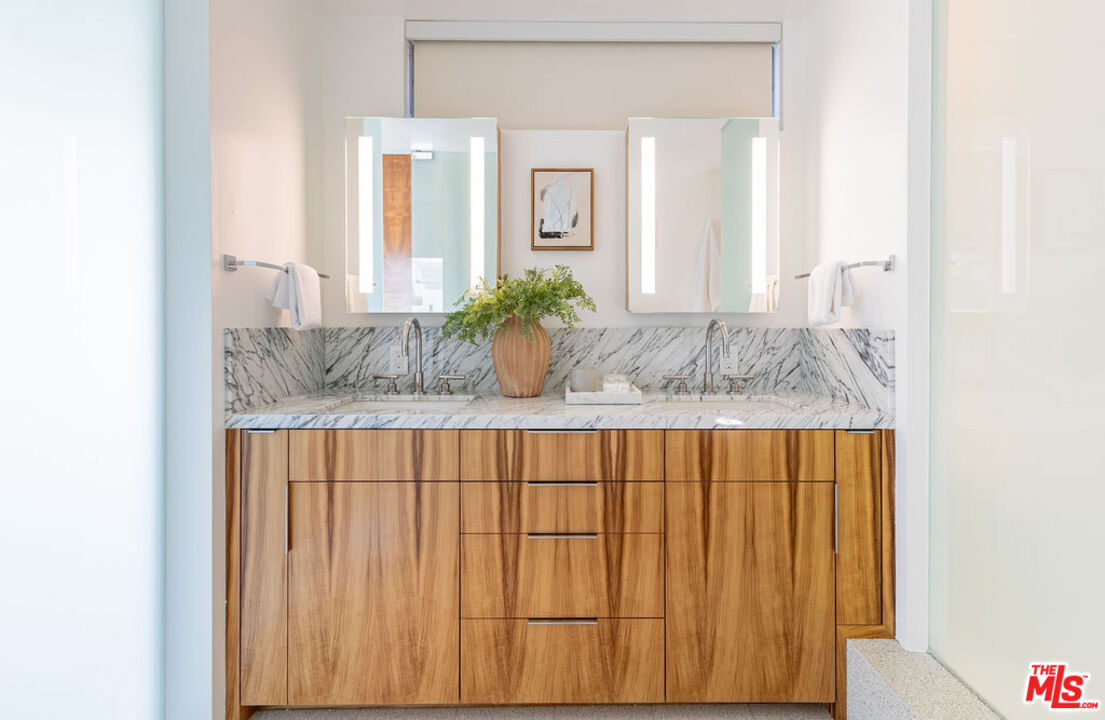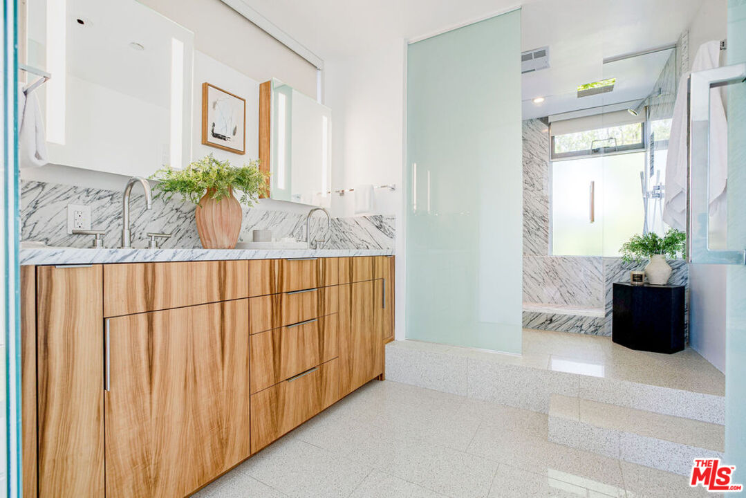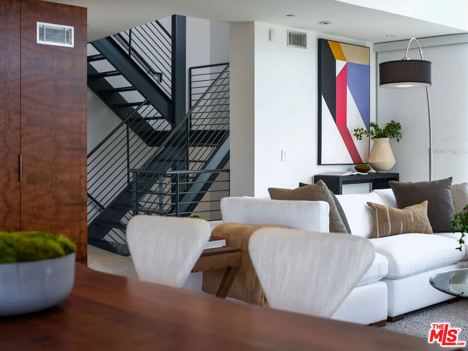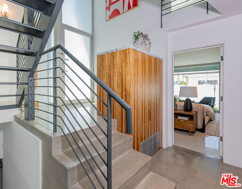 Fully Remodeled Modernist Townhome by Michael Folonis, one block from Main Street and two blocks from the sand, this iconic 3-bedroom, 3-bathroom townhome designed by celebrated architect Michael Folonis, FAIA offers a rare blend of architectural pedigree and thoughtful contemporary upgrades. Originally built in 2006 and recently enhanced with high-end renovations, the residence now features completely remodeled kitchen and bathrooms, blending timeless design with modern comfort. The kitchen showcases custom Claro Walnut cabinetry, creating a warm yet sleek contrast to the home's minimalist structure. New finishes elevate all three bathrooms, delivering a clean, spa-like aesthetic that complements the overall vision. Flooded with natural light and surrounded by glass, the open-concept living and dining areas are elevated to the second floor, offering an expansive, gallery-like space that opens to a private balcony. A versatile mezzanine loft above serves perfectly as an office, den, or creative space, and leads to a private rooftop deck with sweeping city and coastal views. What truly sets this home apart is its direct connection to the outdoors. A private yard extends from the primary suite, while a serene garden patio opens from both secondary bedrooms, creating a peaceful and livable experience that flows effortlessly between inside and out. Interior features include a harmonious mix of hardwood high end cabinetry and polished terrazzo tile flooring, high ceilings, and extensive custom cabinetry throughout. Additional highlights include 2-car side-by-side parking in a gated underground garage, in-unit laundry, and an unbeatable location at the crossroads of Santa Monica and Venice, close to the beach, cafes, boutiques, and the energy of Abbot Kinney. This is more than a home. It is a statement of architectural intent, now reimagined for modern coastal living. Small 3 unit building with earthquake insurance.