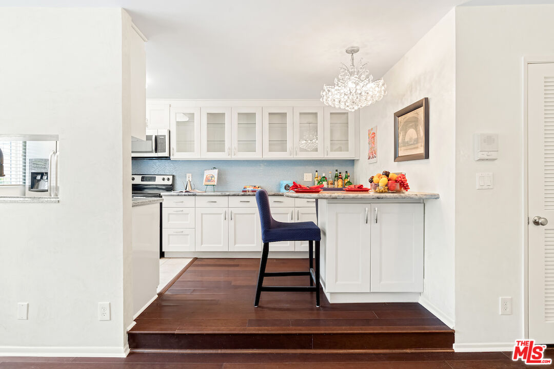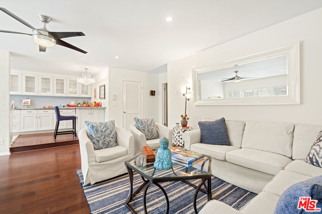 Experience California Coastal Living! Convenient walk-up condo, mere blocks to the Beach and Palisades Park. Enjoy the invigorating ocean breeze from this prime location, just a block from Montana Ave. Large open-concept living area graced by gleaming hardwood floors and a stunning renovated kitchen with sleek granite countertops and stainless steel appliance. Includes an extensive amount of cupboard space complemented by a stylish breakfast bar. Convenient in-unit laundry and ceiling fans in every room. Generous size bedrooms on opposite ends of the condo with wall a/c units and every window is outfitted with elegant plantation shutters. Redone bathrooms with granite counters. Two individual secured parking spaces with storage. This location is serviced by the excellent Santa Monica Roosevelt and Lincoln schools. Homeowners dues include water. Classic 1968 intimate 10-unit condominium complex and moments away from markets, restaurants and all the services you need. HOA dues include water and earthquake insurance.