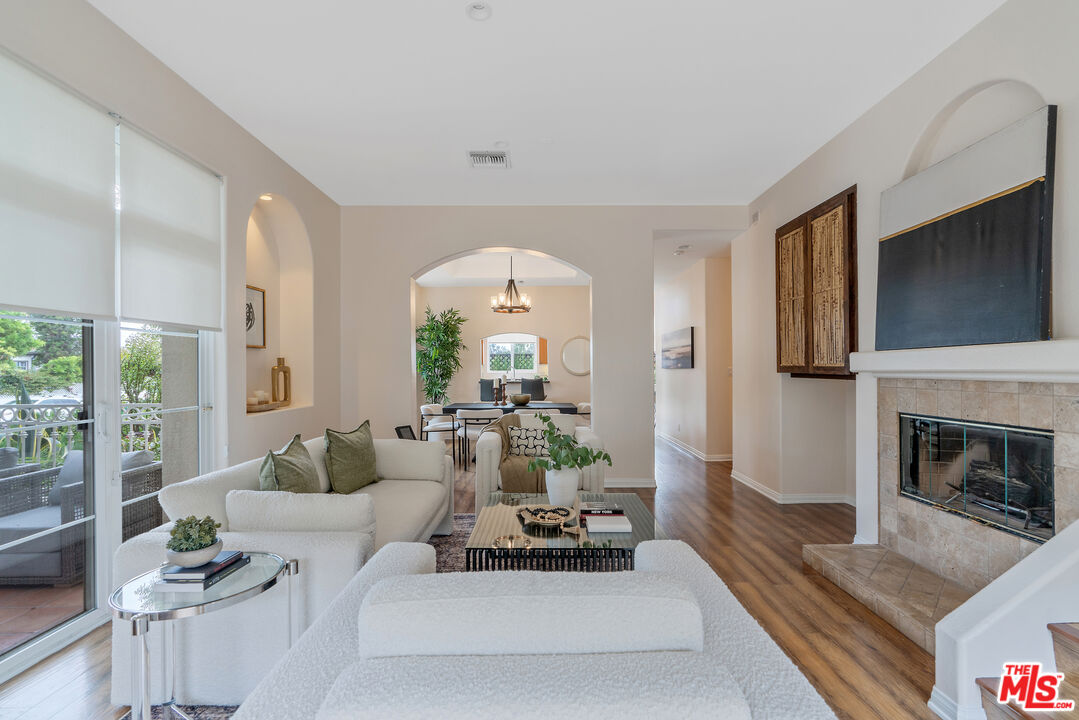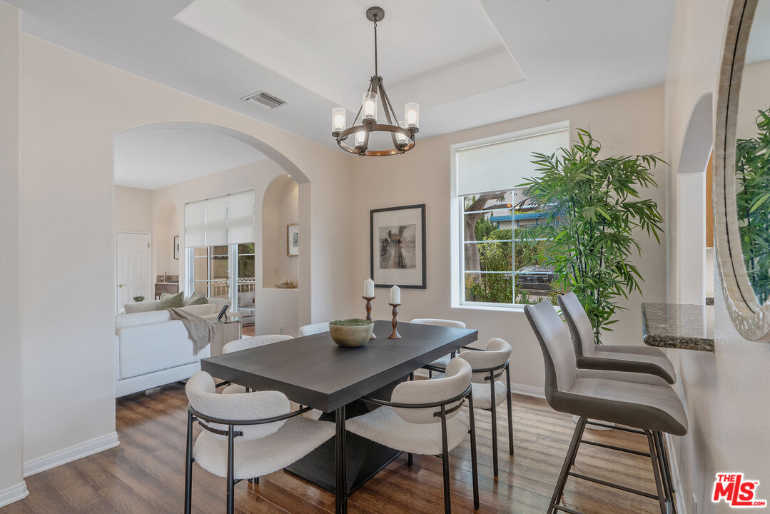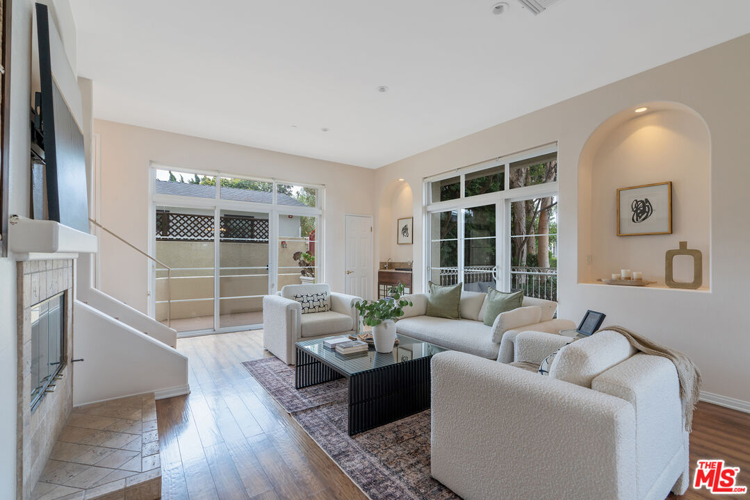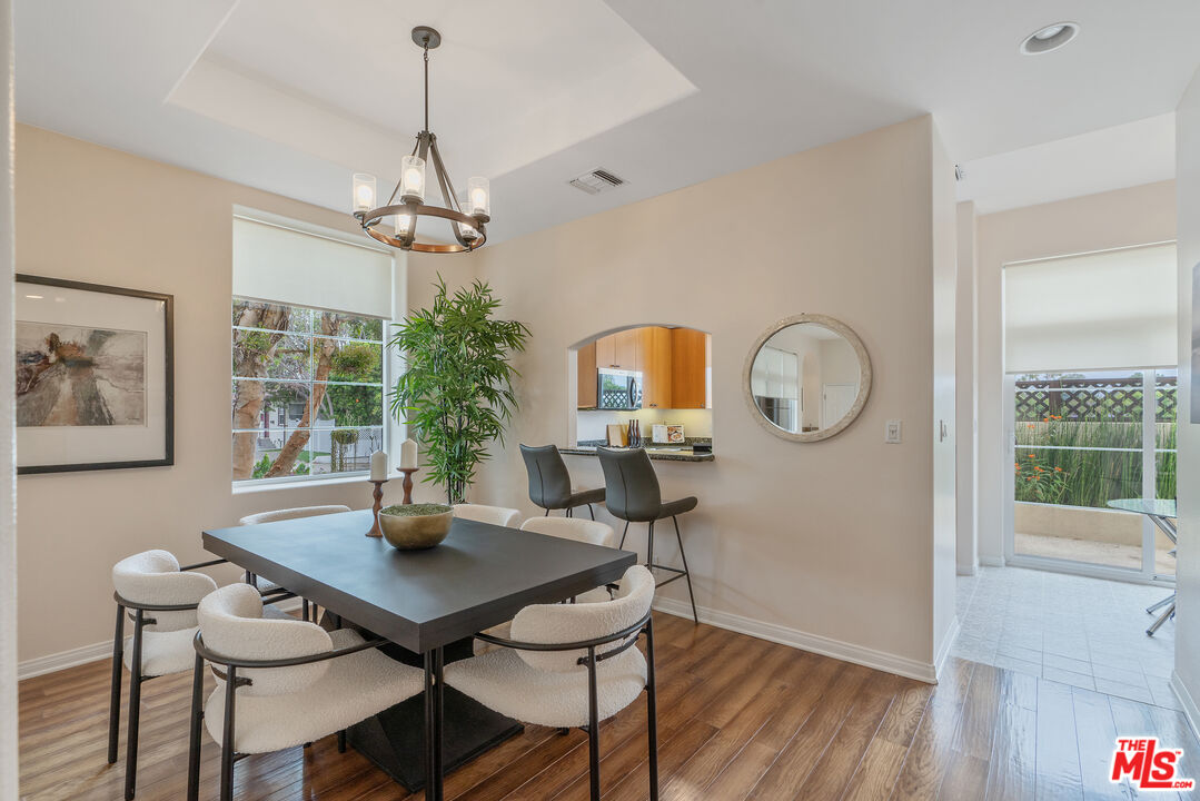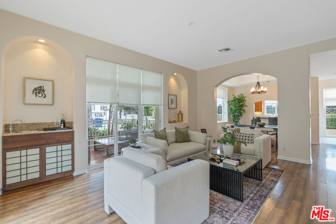 Discover the perfect blend of style, comfort, and location in this beautiful 2-bedroom, 2.5-bath townhome. Thoughtfully designed, this townhome features a spacious floor plan with rich hardwood floors, recessed lighting, and large windows that bathe the interior in natural light. The living room has two generous patios and wet bar. The gourmet kitchen boasts stainless steel appliances, granite countertops, and a breakfast area. The dining and living areas are ideal for both entertaining and everyday living. Upstairs, you'll find two generously sized bedrooms, each with its own en-suite bathroom, providing the ultimate in privacy and comfort. In addition there is space between bedrooms perfect for a home office or den area. Access from the master bedroom is a rooftop deck with beautiful views. With an oversized attached 2 car garage, in-unit laundry, and ample storage, every detail has been considered for convenience and ease in this move in unit. Sought after location with a low HOA and beautiful landscape.