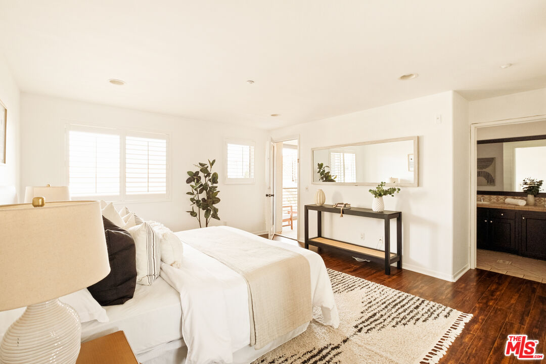 Just moments to the best of Sunset Park, this spacious 3-bedroom, 2.5-bath townhome offers nearly 2,000 sq.ft. of living space, plus a private 2-car garage with direct entry, and a floorplan that lives like a single-family home. Inside, a formal entry opens to a warm and open living area with wood floors, recessed lighting, plantation shutters, and a gas fireplace. Just off the living room, a large, fully fenced patio with turf creates the perfect setting for outdoor dining or relaxed lounging. The oversized, fully remodeled kitchen features stone counters, stainless steel appliances, ample cabinet space, and a natural wood breakfast bar that flows into the dining area - ideal for entertaining or everyday meals. A powder room and large coat closet complete the main level, along with direct access to a private garage that includes built-in storage, laundry, and extra space for bikes or gear. Upstairs are three generously sized bedrooms, including a primary suite with three closets (including a walk-in), a private balcony, and an en-suite bath with dual sinks. Two guest bedrooms face the tree-lined street and share a hallway bath, also with double sinks. Additional highlights include central air and heat, excellent closet space and storage throughout, and guest parking in a renovated, 20-unit complex with a strong HOA, friendly, community-oriented neighbors, and HOA dues that include earthquake insurance. Just blocks to Bob's Market, parks, Will Rogers Elementary, gyms, and Sunset Park's best restaurants and cafes - plus only 11 blocks to the beach - this home blends scale, function, and location in one of Santa Monica's most desirable neighborhoods.