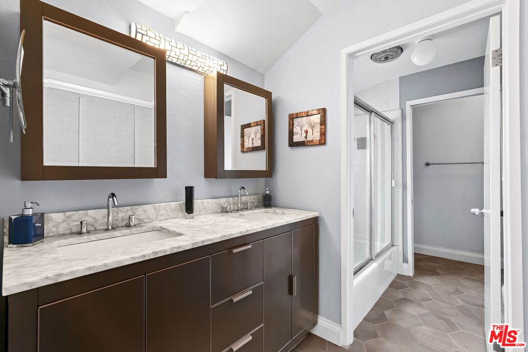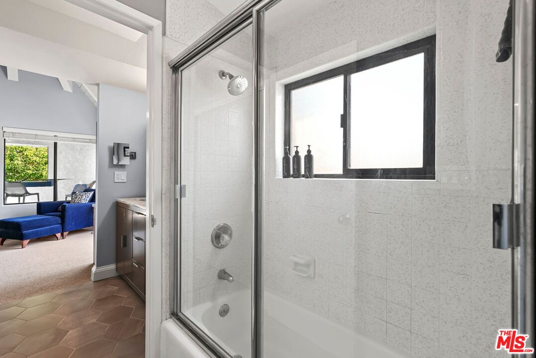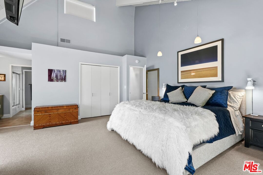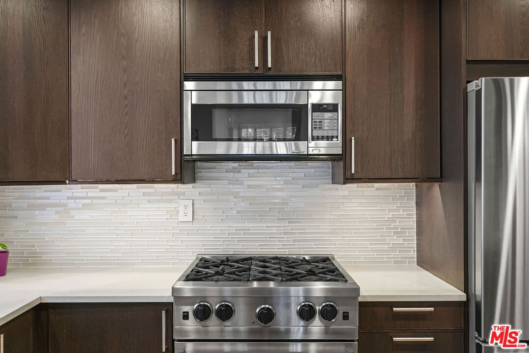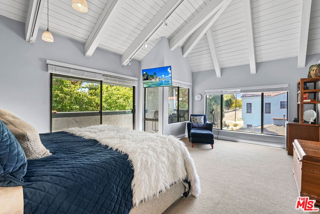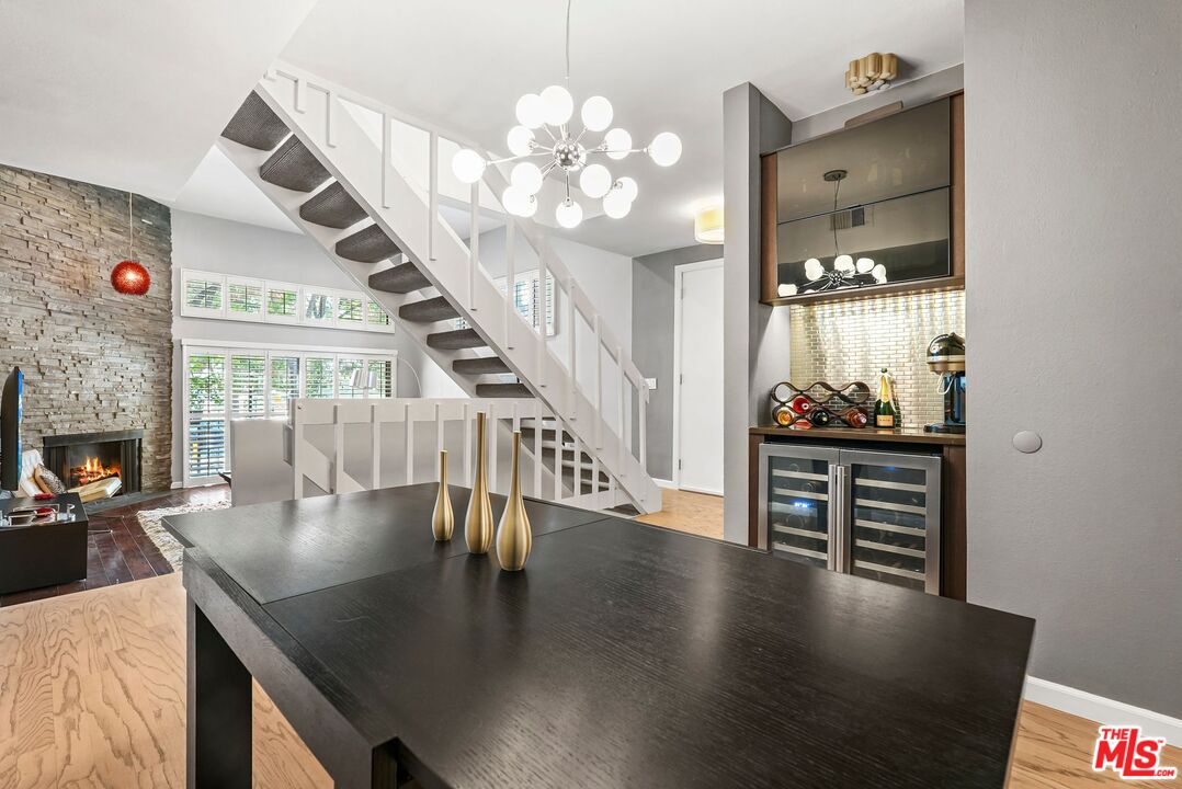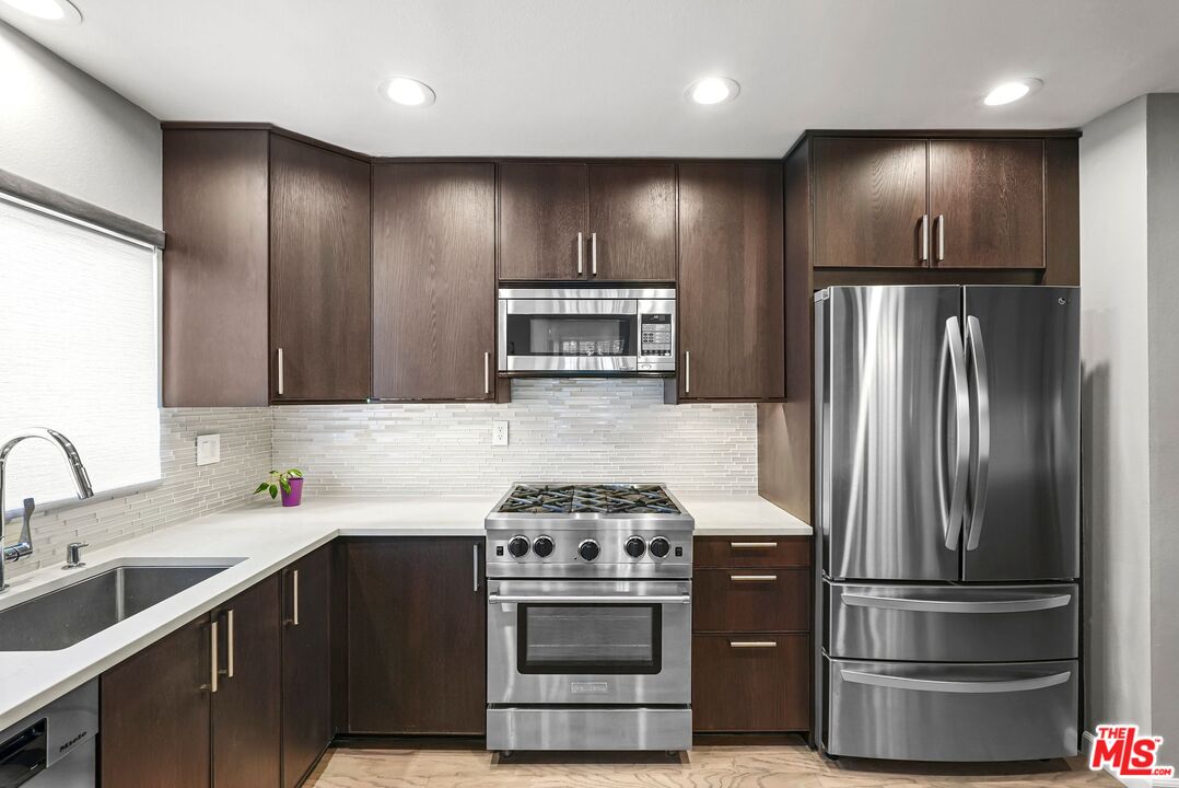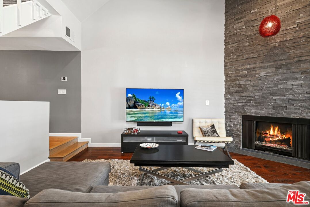 Enjoy refined coastal living in this beautifully remodeled front-facing townhome in the heart of Santa Monica, featuring 3 en-suite bedrooms and 3.5 bathrooms across 1,850 sqft of living space. The light-filled living room boasts soaring ceilings, a stone-accented gas fireplace, and opens to a private front patio for effortless indoor-outdoor living. The chef's kitchen includes a Blue Star range, Miele dishwasher, quartz countertops, and custom cabinetry, with a wine fridge in the adjacent dining room. A powder room and side-by-side washer/dryer are located conveniently nearby, adding to the ease of modern living. Upstairs, the primary suite offers vaulted ceilings, two closets (one walk-in), and a wraparound balcony. A second upstairs bedroom and a downstairs guest suite each feature high ceilings, en suite bathrooms, and generous storage. The lower-level bedroom opens to a secluded patio, ideal for guests or use as a home office. Additional upgrades and features include a new Bosch heat pump HVAC, new electrical wiring, and a private 2-car garage showroom with built-in storage and checkered-flag style flooring. With all of the best dining, entertainment, and shopping that Santa Monica has to offer, along with close proximity to the ocean, this property is a true gem.