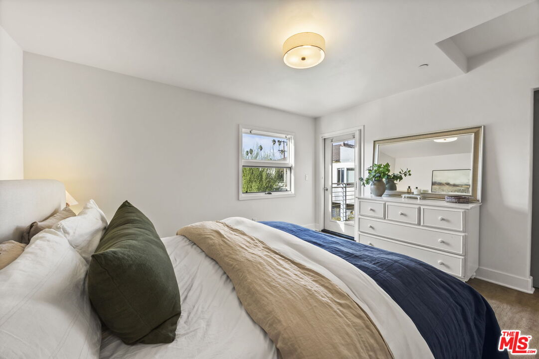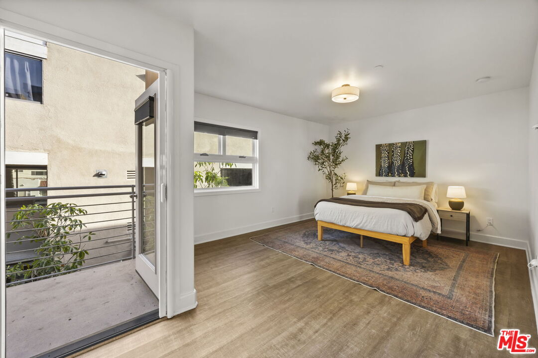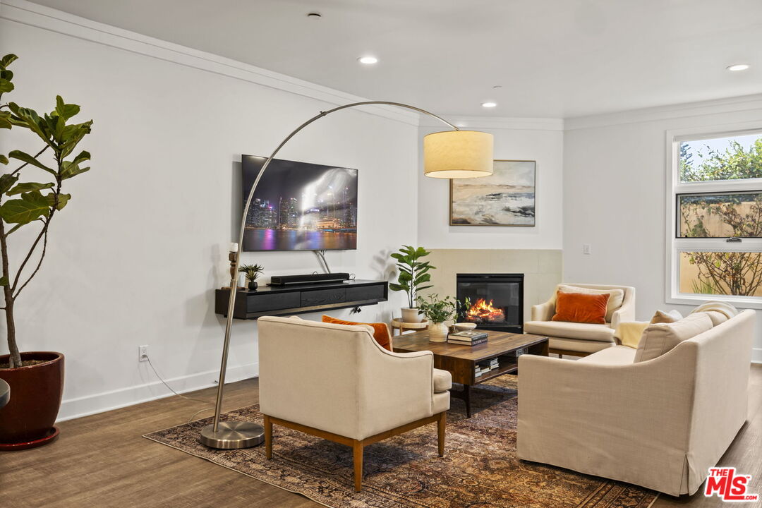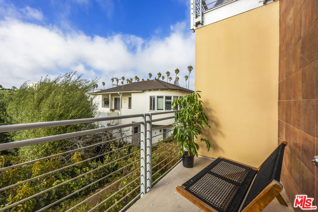 Welcome home to this beautifully updated two-bedroom townhouse, just half a block south of Wilshire Boulevard and within close proximity to top-rated schools, vibrant cafes, and the best of Santa Monica's amenities. Located in a small, five-unit building, this home offers both privacy and community. A gated entry leads you to the front door, where you're greeted by a generous, open-concept living area. High ceilings and a charming gas fireplace, seamlessly flow into the dining and kitchen areas, creating a perfect space for living and entertaining. The kitchen has been thoughtfully updated, with classic finishes and modern touches including a custom built bar area (can be converted back to a wet bar). There is a private patio just beyond the dining area perfect for a little al fresco coffee, wine or barbecue. Upstairs, both spacious bedrooms come with ensuite bathrooms and private balconies, ensuring a serene retreat. The third story loft adds even more versatility, offering the option of a third bedroom or a dedicated office with its own closet. From this vantage point, you access the lovely roof top deck, an idyllic spot to watch the sunset and enjoy the view of the Santa Monica Mountains. Additional highlights include a private two car garage with direct access to the unit, as well as 240v electric car charging. The roof and balcony deck surfaces were recently replaced and newly updated lighting, bathroom and door hardware were installed throughout the unit. Fantastic opportunity for Westside living!