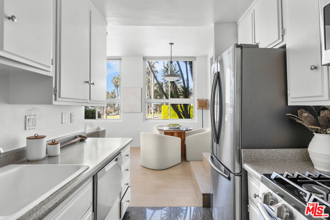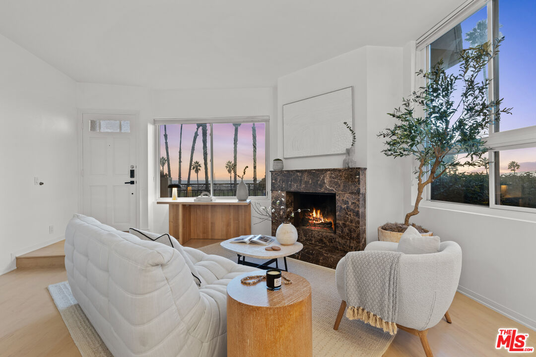 Experience coastal living at its finest in this bright and airy one-bedroom, one-bathroom residence just moments from the sand in the heart of Santa Monica. Located in an intimate boutique building of only nine units, this sun-drenched home captures the quintessential beachside lifestyle with large windows that frame unbeatable views and fill the interiors with natural light. The open-concept living space is anchored by a charming fireplace and flows seamlessly into the dining area and galley-style kitchen perfect for everyday living and easy entertaining. Elevated at the top of a short staircase, the private primary suite sits quietly at the rear of the property, featuring generous closets and a spacious bathroom. Additional highlights include community laundry and one-car parking in a secure, gated underground garage. Just moments from the beach, bike path, and all of downtown Santa Monica's shops and restaurants, this coastal gem offers the ideal blend of comfort, convenience, and California charm.