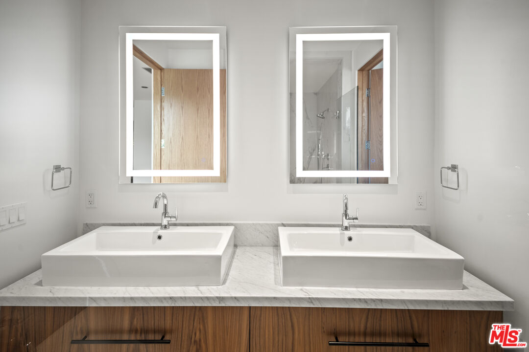 This private unit offers the best of Santa Monica living including ocean breezes and the ability to walk to fine restaurants, the beach or the Santa Monica Pier. When you enter the spacious dining and living area the natural sunlight and design is abundant. The open air space leads to a meticiously designed chef's kitchen highlighted by fine finishes and appliances. The two spacious bedrooms with ensuite bathrooms exude comfort and feature natural sunlight. Upstairs a private roof top deck is accented by a well thought out wet bar. Take in sunsets or sunrises from this well designed space, or suntan in privacy. This spacious and stylish home is delight to see.