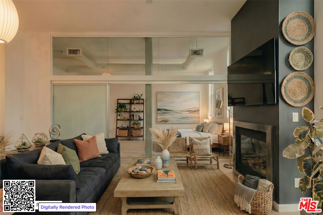 Welcome to this sun-drenched, industrial-chic corner unit in the coveted Broadway Lofts. This exceptional loft-style studio on the second floor blends urban sophistication with beachside ease, showcasing walls of glass that bathe the space in natural light from morning to sunset. Unit 205, a rare corner residence, is distinguished by its oversized wraparound deck with captivating city views -- a striking extension of your living space that invites seamless indoor-outdoor living and effortless entertaining. Beyond the entry, an open-concept layout unfolds with soaring ceilings, wide-plank floors, and distinctive loft-inspired detailing. The sleek Italian kitchen, complete with Boffi cabinetry and Caesarstone countertops, flows elegantly into the expansive living and sleeping areas. The well-proportioned sleeping area includes a generous walk-in closet, while the modern bathroom features clean lines and premium finishes. Residents of Broadway Lofts enjoy the peace of mind of a secure-access building, with key fob entry required for all common areas, elevators, and parking. Additional highlights include in-unit laundry, central air, and secure side-by-side parking for two vehicles with ample storage space. Enjoy access to a rooftop viewing deck with panoramic city and mountain vistas, as well as the everyday convenience of Cafe Lovi just steps from your front door. Perfectly positioned just blocks from Memorial Park, Santa Monica Brew Works, Ralphs, Co-Op, Bergamot Station, and an array of shops and restaurants, this home epitomizes Santa Monica living -- stylish, walkable, secure, and distinctly private.