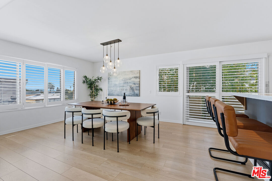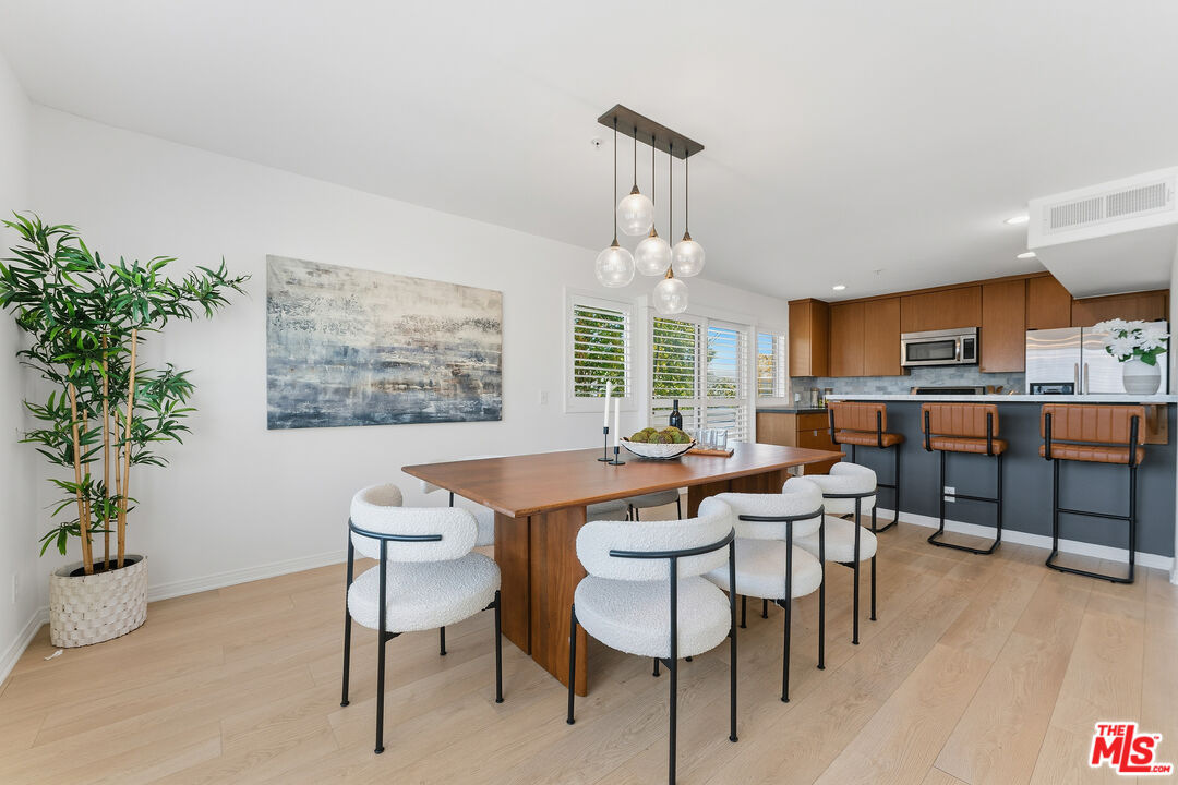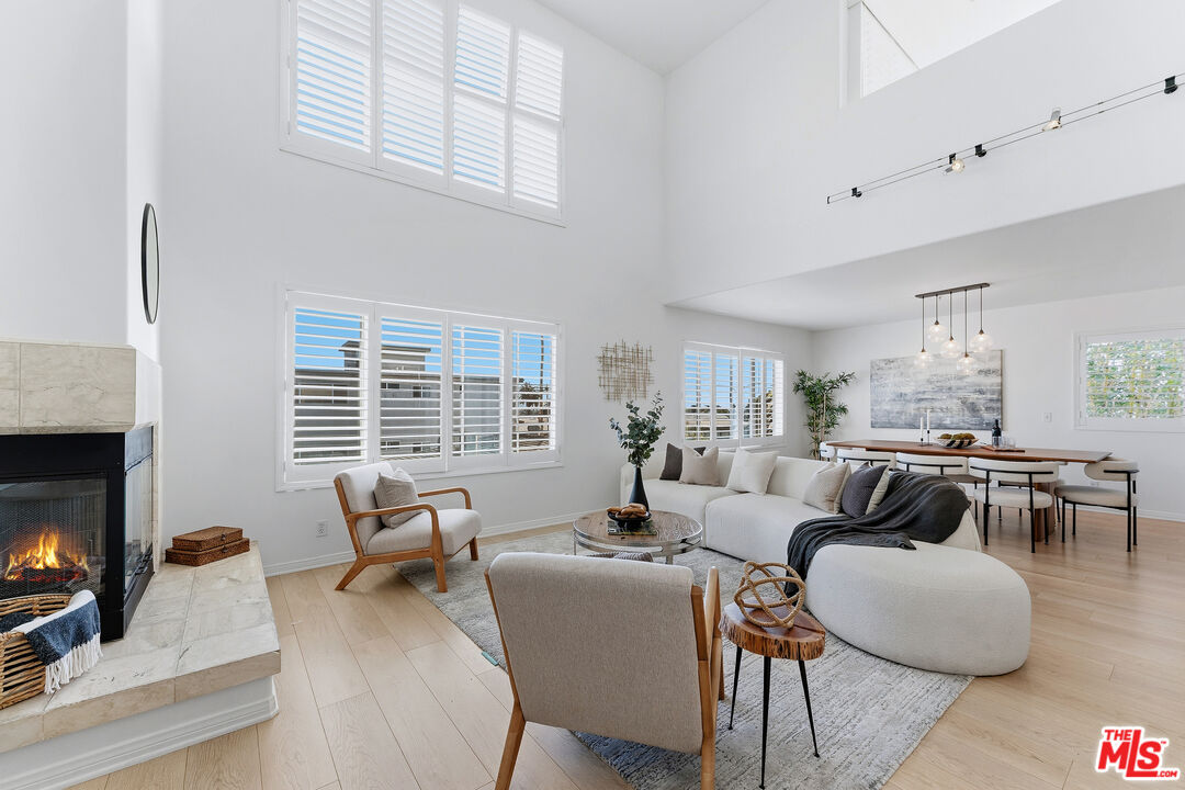This is what you've been waiting for! A top-floor, corner, spacious 2,264 sq. ft. 3BR + loft / 2.5BA penthouse in prime Santa Monica. This is a fantastic single-family home alternative. This light, bright, and spacious three-level townhome features three bedrooms, two and a half baths, plus a large loft with treetop and ocean views. As a corner unit, floor-to-ceiling windows create an airy, open feel, complemented by wide-plank flooring throughout. The main level includes a living room with a wood-burning fireplace, dining area, powder room, balcony, and an open kitchen with contemporary wood cabinetry, quartz countertops, and KitchenAid and Bosch appliances. The lower level hosts the primary suite, second and third bedrooms, a hall bathroom with double sinks, and in-unit laundry with a 5.2 cu. ft. LG washer and dryer. The upper loft level offers multiple outdoor areas and sits above neighboring buildings, providing terrific views and an ideal space for an office, playroom, or entertaining. The unit features a newer HVAC system and includes two side-by-side parking spaces in a covered, gated garage with an EV charging station. The building also has an elevator. Located in a small six-unit building surrounded by mature hedges, creating a private, quiet sanctuary. Conveniently located near shopping, restaurants, Douglas Park, and amenities along Wilshire Ave, Montana Ave, and the Third Street Promenade, with a short bike ride to the beach. Access to award-winning Santa Monica schools. This property will not last long!