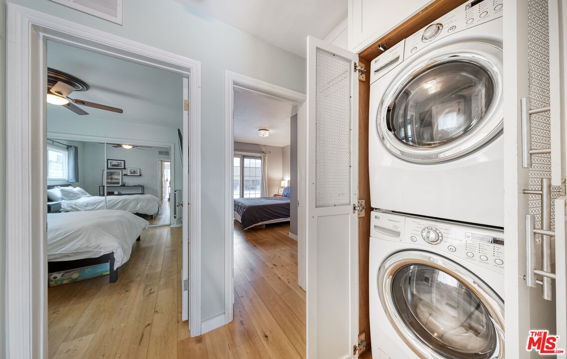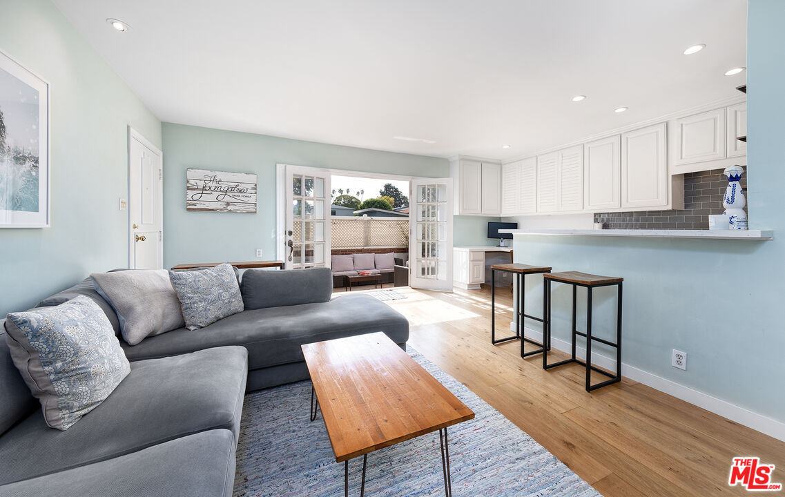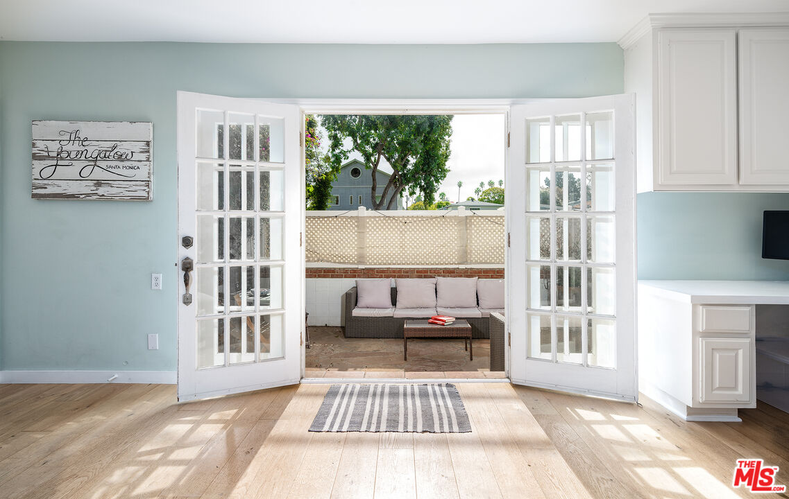 Experience indoor/outdoor living in Santa Monica's Ocean Park neighborhood at this tastefully designed, single level two bedroom condo. From the serene patio, where you can enjoy the benign Mediterranean climate year round, French doors lead to an open floor plan featuring an inviting, light-filled living room and a recently updated kitchen. To the rear you will find two bedrooms and two bathrooms along with in unit laundry. A second set of doors in one of the bedrooms lead you to the parking area and the association amenities of a heated pool, spa, paddle tennis court and an expansive mezzanine deck with community barbecue grills for entertaining or relaxing with a good read in the sun. The current owners installed real hardwood floors and an upgraded electrical panel and they remodeled the kitchen with quartz countertops; a tile backsplash; new sink, faucet and cabinet; canned lights; and a new dishwasher and cooktop. Other improvements were new windows in one of the bedrooms and one of the bathrooms. Easy parking for two cars via gated access is provided in one covered space with a storage locker and an assigned space just to the rear of the unit. Hot water is supplied by a solar-assisted heater on the roof of the complex. HOA dues provide high-speed internet and deluxe cable TV. Conveniently located near freeway access and the Metro Expo line, this condo is close to the shops and restaurants on Main Street, downtown Santa Monica and, of course, the beach and its many recreational options.Don't miss the opportunity to call this remarkable coastal sanctuary your home.