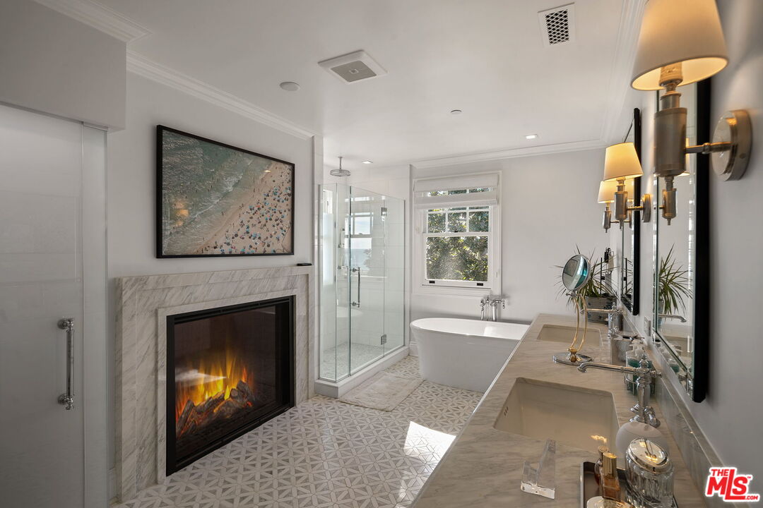 With a truly irreplaceable ocean view, landmark designation, and an extraordinary Mills Act property tax reduction, 401 Ocean presents a rare opportunity to own a piece of Santa Monica's coastal legacy. Rich in local history, this Craftsman-style residence was originally built in 1910 by renowned architect Robert Farquhar and thoughtfully restored and modernized in 2021. As a designated historic landmark, the home benefits from an active and transferable Mills Act contract, offering a significant property tax reduction of up to approximately 80% -- an exceptional advantage in today's market. One of only two townhouse-style residences, the home lives with the privacy and presence of a single-family retreat, complete with a private entrance, side yard, multiple terraces, a two-car garage, and integrated home automation with surround sound throughout. Set just beyond the bluff, unobstructed views of the Pacific Ocean and Santa Monica Mountains unfold across the main and upper levels, all just moments from the beach, promenade, and pier. Inside, radiant natural light pours through expansive windows, illuminating exquisite millwork, wide-plank white oak floors, and refined modern finishes that elevate the home's timeless coastal character. The open-concept main level flows effortlessly from a sophisticated living room to an airy dining space and out to a private, hedge-lined terrace, the ideal setting for relaxed mornings or evenings dining al fresco. At the heart of the home, the gourmet kitchen is as beautiful as it is functional, featuring custom Axis cabinetry, a substantial seated island, premium built-in appliances including temperature-controlled wine storage, and a generous butler's pantry with wet bar. A charming powder room, laundry room, and bedroom suite complete the main floor. Upstairs, three additional bedroom suites await, including one with access to the upper terrace and the impressive primary suite. Positioned at the front of the home beneath soaring vaulted ceilings, the primary offers an awe-inspiring ocean-front vantage, a private balcony, expansive walk-in closet, and a spa-like en-suite bath with gas fireplace, dual vanity, soaking tub, and glass-enclosed shower. The lower level reveals an expansive brick-lined family room and full bathroom, ideal for a media lounge, gym, playroom, or private studio. Supremely located in the heart of Santa Monica with effortless access to world-class dining, boutiques, and Westside amenities, 401 Ocean is a one-of-a-kind heritage residence that honors California's past while defining the future of luxury coastal living.