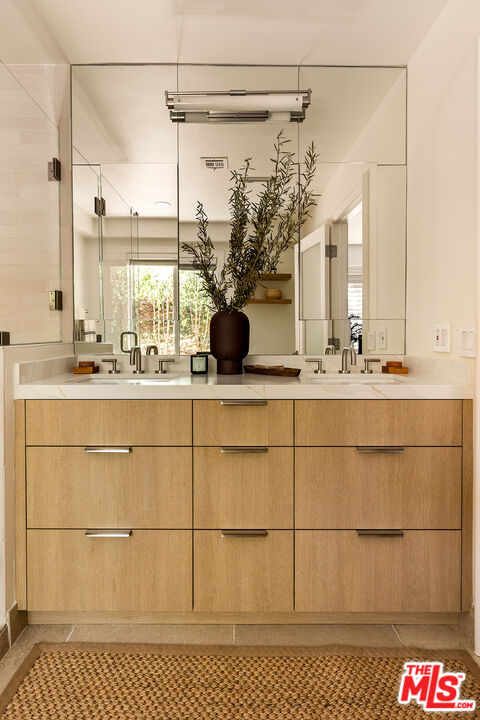Just one block from Montana Avenue and seven short blocks from the beach, this beautifully updated townhome captures the essence of Santa Monica living. Spanning three levels, the light-filled residence features an open floor plan with spacious living areas and blonde hardwood floors that extend into the beautifully updated kitchen. A bright and versatile loft space above the main level opens to a large private deck, ideal for entertaining, working from home, or simply lounging with a beautiful view. Each level offers its own outdoor retreat, seamlessly blending indoor and outdoor living in true SoCal style. Just steps up from the private two-car garage with direct access to the unit and extensive floor-to-ceiling storage, you'll find two bedrooms with newly installed hardwood floors. The serene primary suite includes a tranquil outdoor patio and a fully remodeled, spa-like ensuite bathroom featuring heated floors, dual vanities, a walk-in shower, and a freestanding soaking tub. The second bedroom enjoys abundant natural light and has its own private full bathroom. The first floor also features a newly remodeled powder room with a custom travertine sink and convenient access to the updated laundry area. The prime location is close to shops, restaurants, and the beach. This home offers the perfect combination of style, convenience, and comfort.