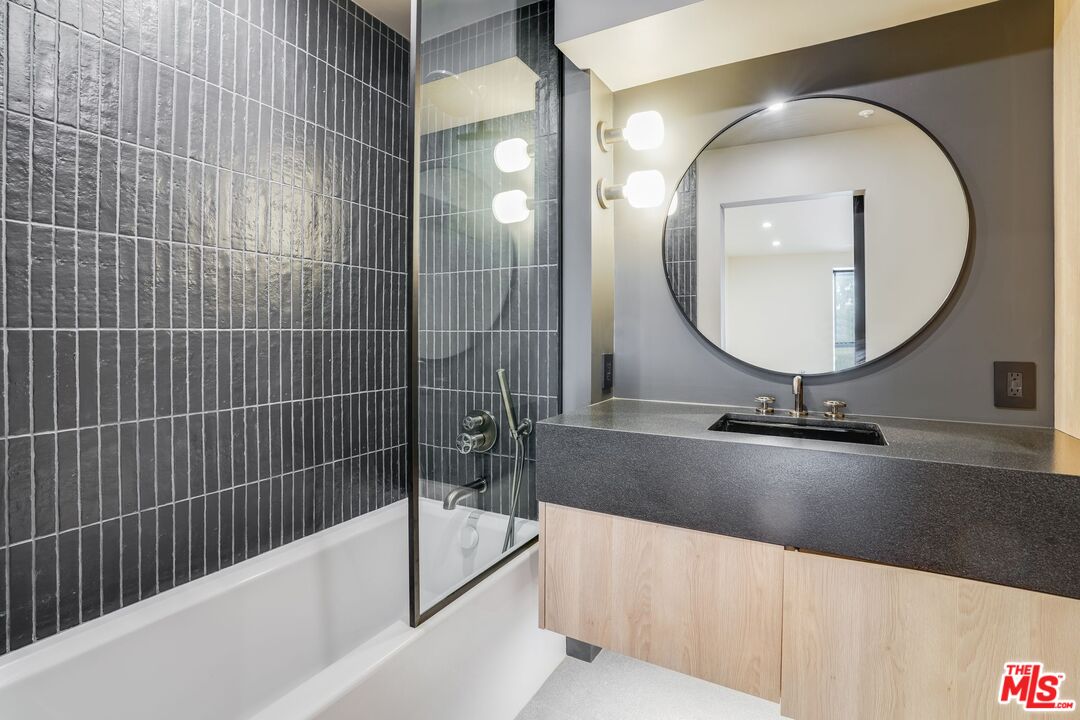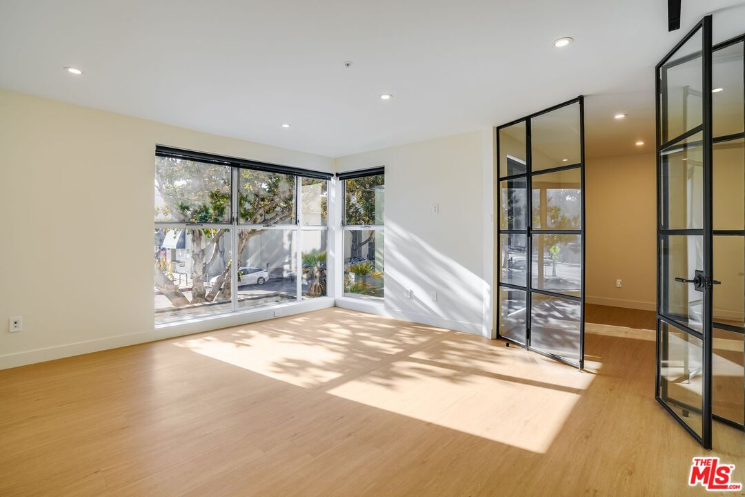 This sleek and stylish, quintessential live-work style apartment located in the heart of Santa Monica in Silicon Beach is centrally located to cafes, restaurants, shops and more. The spacious 2-story apartment feels more like a home than apartment. Enjoy all the luxuries and comforts in this meticulously transformed space with top of the line finishes throughout. The unit is private, and has a cozy outdoor patio sitting area. You enter upon a large living area with a modern fireplace, mounted flatscreen TV flanked by large picture windows. The spacious dining area can also be used for an office or additional seating area. The modern and remodeled chef's kitchen features a high-end Smeg refrigerator, and Smeg stove perfect for cooking up large dinners or just looking good. Plenty of storage in the custom 3-pantry system and oak shelving. The kitchen has space for a breakfast table or more. The downstairs features a stunning bathroom with matte black tiles accentuated by the oak vanity and cabinet. Beautiful light colored wood-like floors and recessed lights can be seen throughout the space. Up the stairs, you will find plenty of storage in the modern custom closet system as well as an open area perfect for a workstation or sitting area. The gorgeous master bath features a tub/shower and floating vanity with a large round mirror. The large primary bedroom is accessed through sleek French-style doors just off the open area and has large picture windows with remote control roller shades. Privacy is not an issue here with remote control window treatments throughout the apartment home. Washer/dryer in unit & 1 parking space available in the private & gated garage for additional charge. A must see whether you are looking for a stylish apartment or a live-work office space. Easy to show.