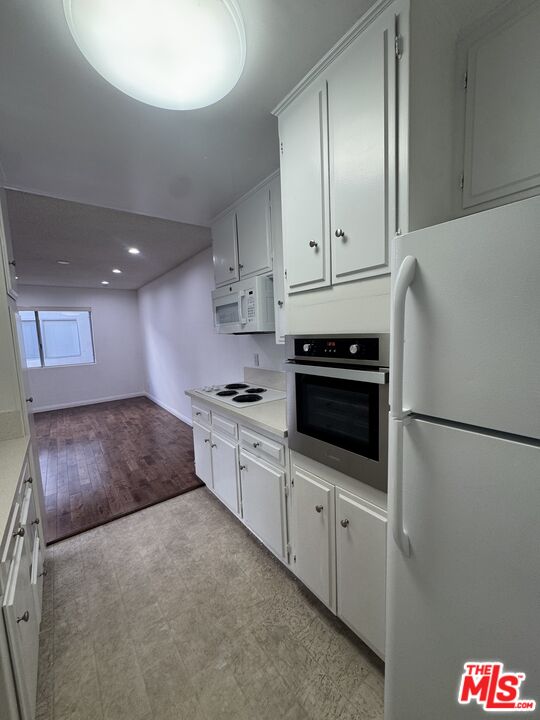 Remodeled in Prime Santa Monica Location, Large open living room and dining area, recessed lighting, oak hardwood floors throughout the unit. Kitchen has white quartz counters, built-in dishwasher, convection oven and microwave hood. Large Primary bedroom with walk-in closet and 3/4 bath. Cozy outside patio.