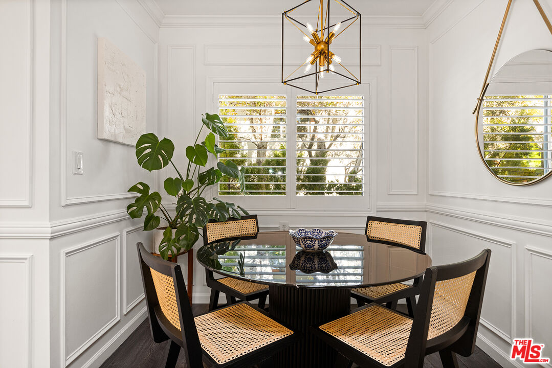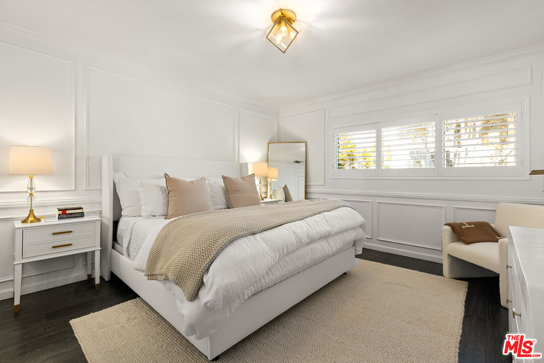 Prime Montana neighborhood location! Top-floor remodeled 2-bedroom, 2-bathroom condo located 1/2 block from Montana Avenue's shops & restaurants. Open living space features a balcony with serene treetop views. Updated kitchen is designed for entertaining with a large island that seats four, white cabinetry, sleek quartz countertops, GE appliances, skylight, and dining alcove. The primary bedroom offers a spacious walk-in closet & ensuite bathroom with skylight. The second bedroom features an expansive closet & is adjacent to a full bathroom with bathtub/shower. Features include in-unit laundry, central heating, central air conditioning, Nest thermostat, wall paneling, hardwood-look floors, window shutters, & custom designed California Closets. Charming six-unit building with one covered parking space & private storage units in parking area & balcony. Available now.