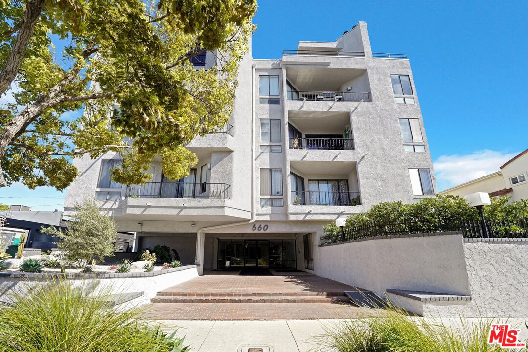 Great access to Melrose restaurants and stores. Actually, on the Los Angeles side of the street, don't miss this lovely one-bedroom 2-bath Condo with patio, the entire length of the unit, and lovely views of greenery. This beautiful unit sits in a quiet security building with a pool and a free meeting room. Next to the pool, there is a Men's & Women's Sauna & bathroom. Two tandem parking spots in the security garage with numerous guest parking spots, Low HOA dues that include water & Earthquake insurance.. View this delightful, immaculate condo while available.