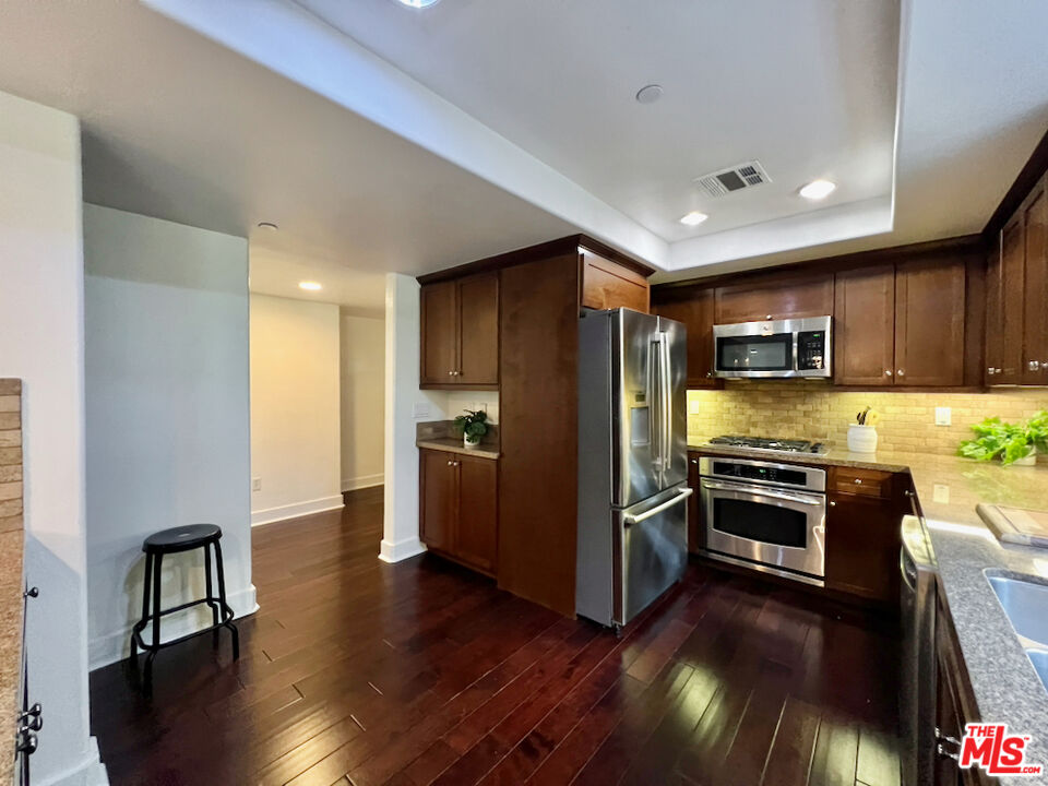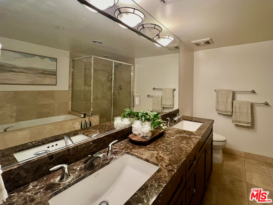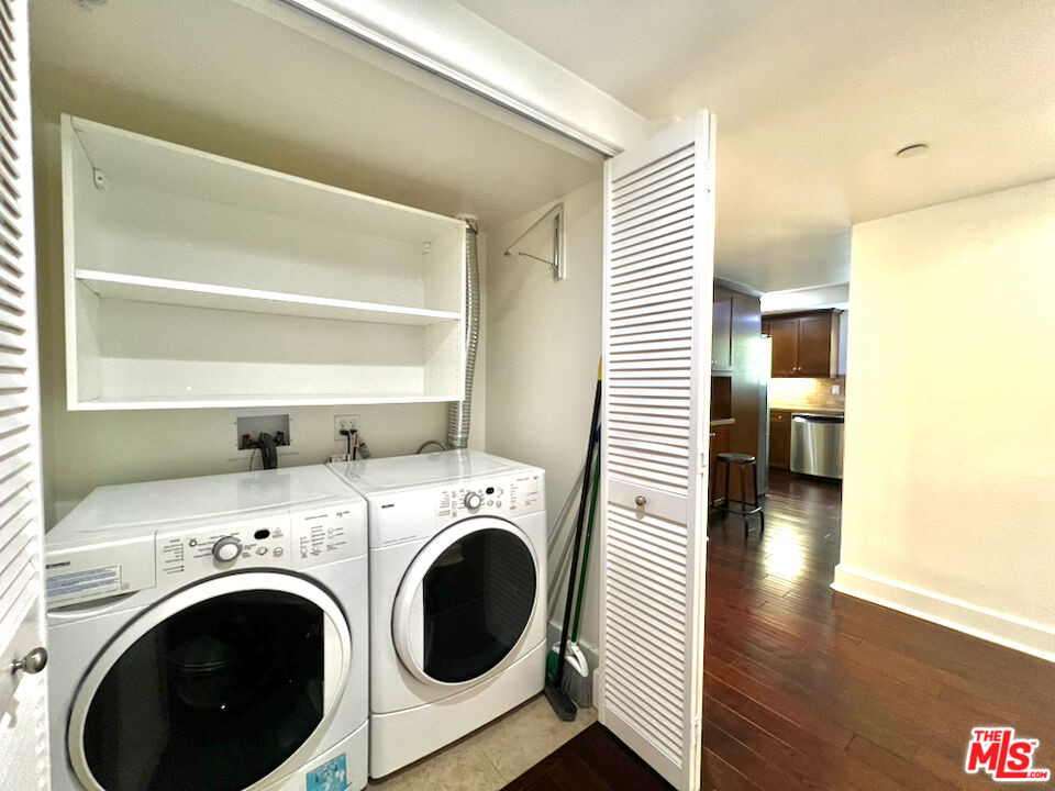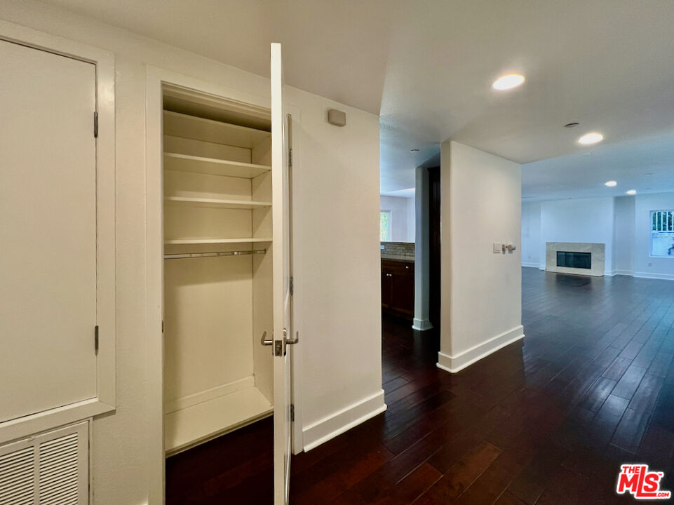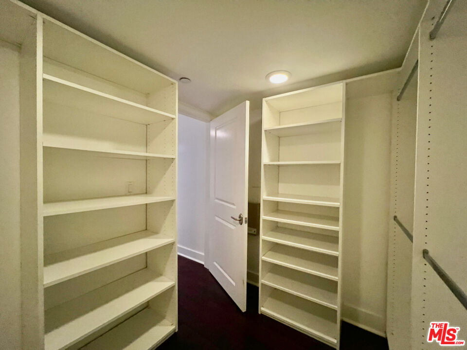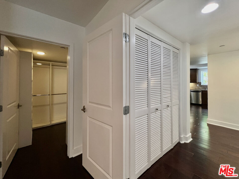 Surprisingly spacious living in this quiet corner of Hollywood Hills West! This extra-large 2BR/2BA corner unit features only one shared wall, hardwood floors, an updated kitchen with stainless steel appliances, granite countertops, full-size washer/dryer, and a ceiling-mounted projector with full wall screen. All closets, including the laundry, have been custom-built for maximum storage. Bedrooms open to a large private patio, and the living room opens to a second patio. The primary suite includes a spa-like bath and a generous walk-in closet. Includes side-by-side parking - rare for the building, a private, secured-access storage room. Franklin Place offers controlled access, gym, rec room, guest parking, and low HOA dues. Near Runyon Canyon, Hollywood Bowl, Yamashiro, Metro B Line, and more. More info on the property website.