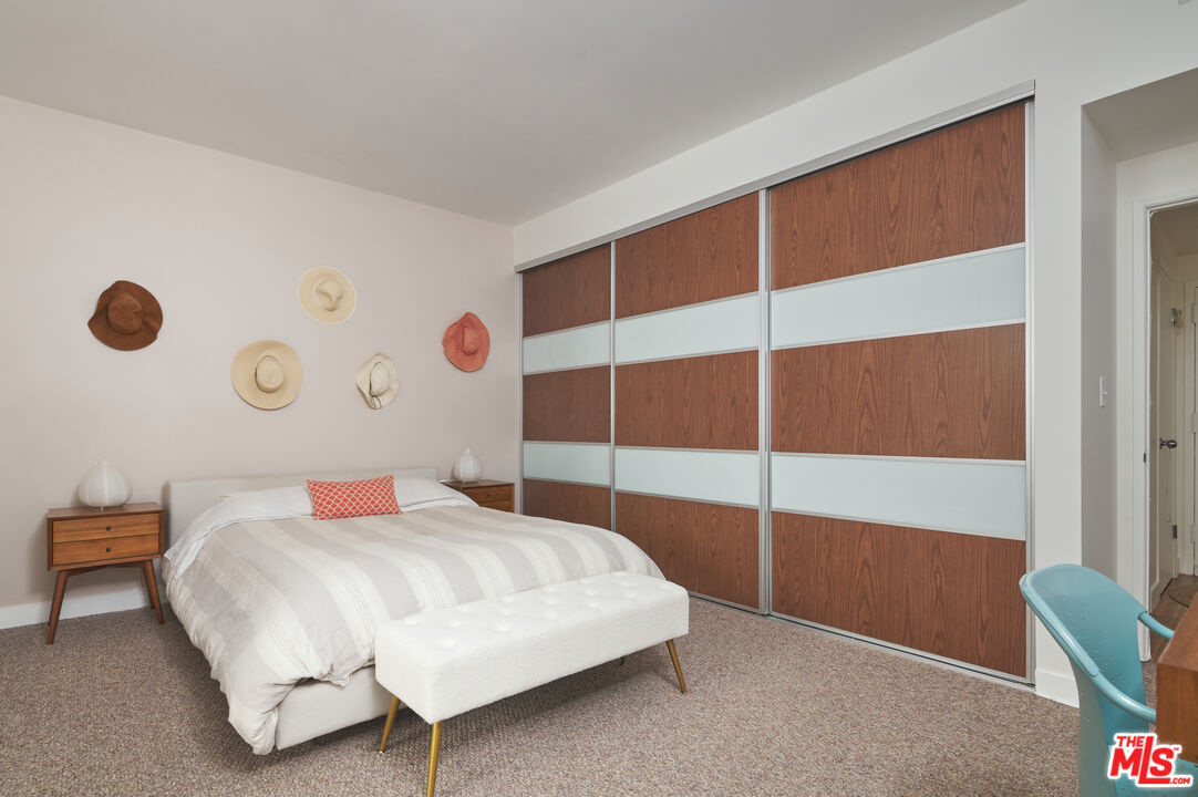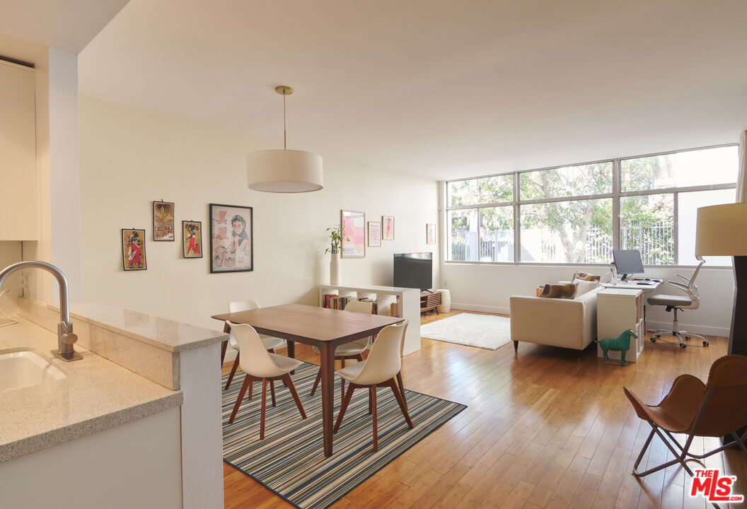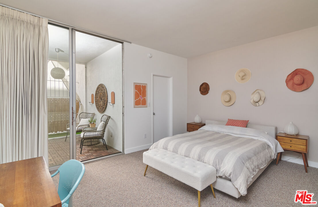 Stylish mid-century modern condo located just north of Sunset Boulevard, at the foot of the Hollywood Hills, a block west of the Sunset Square Historic neighborhood. This spacious unit features high ceilings, and an open-concept layout, perfect for entertaining guests or simply relaxing in the large open space. The living room boasts a wall of windows that flood the home with natural light and offer serene views of the courtyard trees. Step out onto your private patio - accessible from both the living room and bedroom - for a morning coffee or evening wind-down. The generously sized bedroom includes a full wall of closets plus a separate walk-in closet, giving you abundant storage options. Additional community features include a pool, laundry area, gated underground parking and secure entry for added peace of mind. Located in the heart of it all, you're just minutes from Trader Joe's, Whole Foods, Bristol Farms, Starbucks, Crunch Fitness, The Griddle, Laugh Factory, Pace, Rite Aid, West Hollywood's best dining, and so much more. Don't miss this opportunity to live in style and comfort in a prime location.