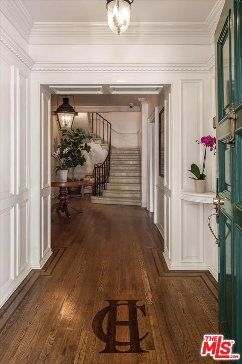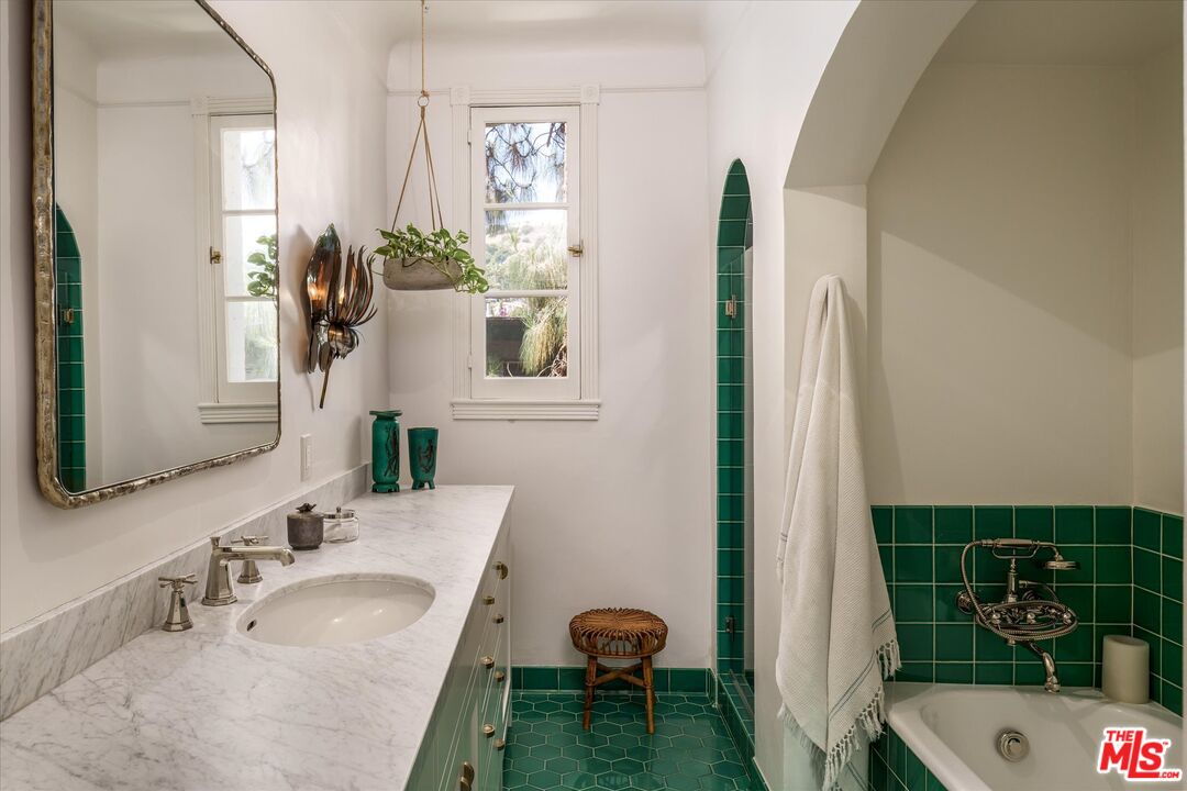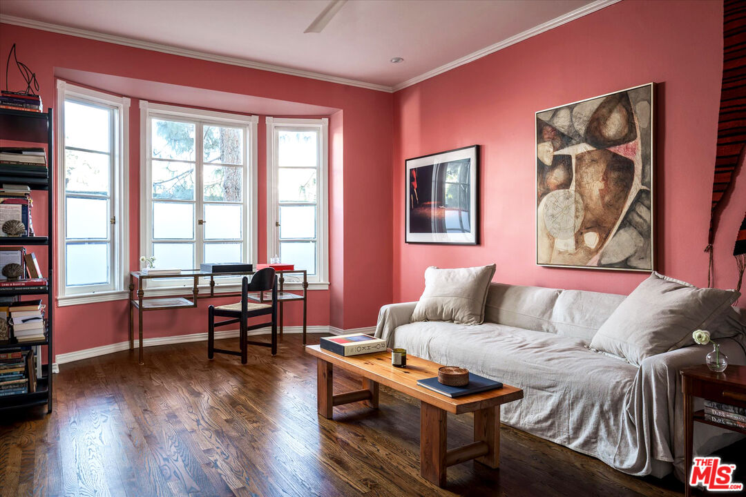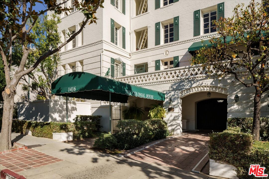 Located in the iconic Colonial House--one of West Hollywood's most storied and desirable buildings--this unit presents a rare opportunity to own a turnkey residence in this Mills Act-designated landmark. This exceptional 3-bedroom, 3-bath unit has been meticulously restored, seamlessly blending historic authenticity with contemporary luxury. Built in 1930 by renowned architect Leland Bryant (architect of the Sunset Tower Hotel) on a coveted block just below the Sunset Strip, the Colonial House has long attracted Hollywood luminaries such as Bette Davis, Cary Grant, and Clark Gable, and continues to embody timeless glamour and sophistication.Thoughtfully renovated to honor its architectural heritage, the home beautifully pairs original 1930s detailing with refined modern finishes. Voluminous and filled with natural light, the space boasts high ceilings, hardwood floors, intricate crown moldings, and handcrafted wood trim. The grand living room is anchored by original French windows, framing ever-changing daylight, and opens to a charming Juliet balcony overlooking the pool area and recently upgraded patio. An elegant fireplace with a carved stone mantel adds further refinement to the space.The formal dining room makes a striking impression with its wallpapered ceiling, designer lighting, and original period windows. A fully reimagined kitchen offers marble countertops, custom cabinetry, premium appliances, and a delightful pointed-arch dining nook. The spacious primary suite includes a walk-through closet with custom cabinetry and a luxurious marble-appointed ensuite bath. The generous second suite features floor-to-ceiling built-in bookshelves, a walk-in closet, and an ensuite renovated bathroom. An intimate third guest room, distinguished by an arched doorway and tasteful designer wallpaper, adds additional charm and flexibility, as does the unit's 3rd bath, with elegant tilework and wallpaper.The unit also features in-unit laundry and a recently updated HVAC system. Residents of Colonial House enjoy premium amenities, including a doorman, security, pool, expansive grassy yard, elegant lobbies, library, secure garage parking, guest parking, and landscaped gardens--all moments from West Hollywood's premier restaurants, boutiques, and cultural landmarks. This residence represents a rare convergence of history, design, and luxury within one of Los Angeles' most celebrated architectural treasures.