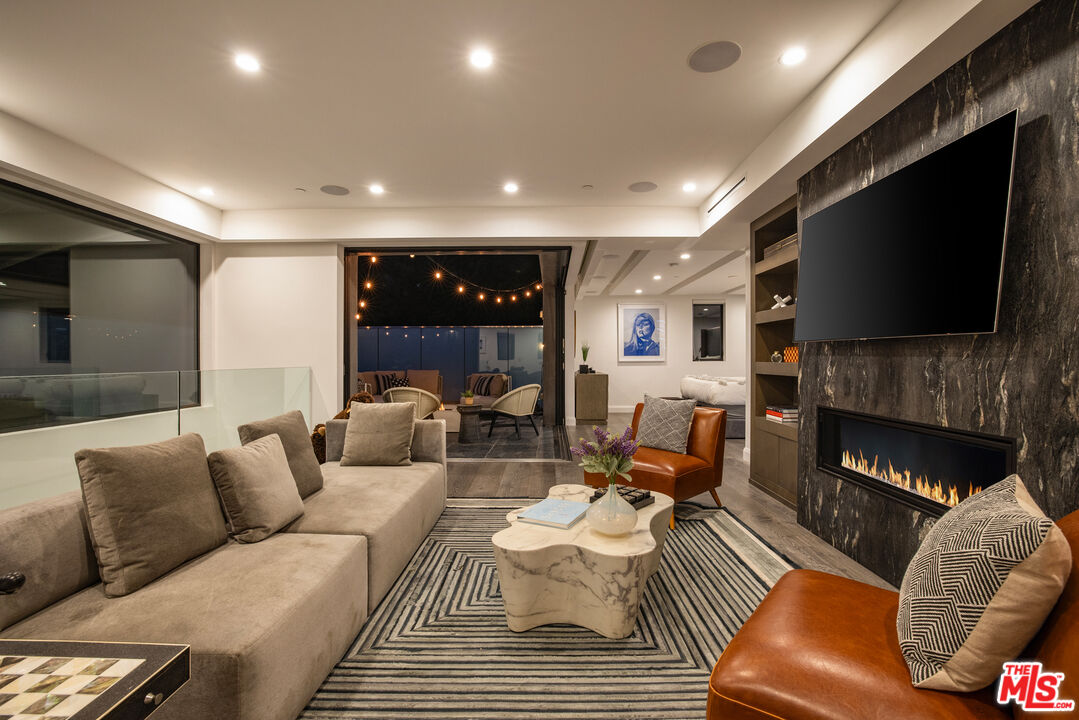 Designed by famed architect Tomas Osinski Design Inc. Nestled on one of West Hollywood's most sought-after streets on Huntley Dr, this exquisite townhome epitomizes luxury living. Positioned as the front unit in an exclusive two-unit boutique building, this west-facing residence features 2 bedrooms ensuite plus an optional 3rd bedroom, home office/den or media bonus room, 2 full baths and 1 half bath, a laundry room, and a gated garage offering two side-by-side parking spaces with direct home access, supplemented with a guest parking. Upon entry, the lower level reveals a stunning chef's kitchen adorned with custom Astra cabinets from Italy and top-of-the-line Miele appliances. The open concept blends the dining, kitchen and living area, highlighted by a cozy floor to ceiling stone fireplace flanked by custom built in cabinetry complete with recessed lighting. The guest bedroom enjoys natural light and includes a walk-in closet and full bathroom, while a west-facing bedroom or home office offers a bright workspace or peaceful retreat. Throughout, built-in speakers and a smart home system enhance convenience. The upper level unveils the opulent primary suite, featuring a spacious sitting area with a floor to ceiling stone fireplace complete with custom cabinetry, recessed lighting, Fleetwood pocket doors and chic bedroom complemented by coffered ceiling and a wall of back-lit closets. A second designer showroom-style walk-in closet with back-lit shelves and an island ensures storage aplenty, while the spa-like full bathroom adds a touch of indulgence. The 200 sqft private outdoor patio, complete with BBQ, dining area, and lounge with a fire pit, offers a serene escape with views of West Hollywood's architectural landmarks. Rooftop patio has space and capacity to hold a spa tub. This meticulously designed townhouse seamlessly blends luxury and convenience, offering a unique lifestyle opportunity in an unbeatable location, a true gem for those who appreciate the finer things in life.