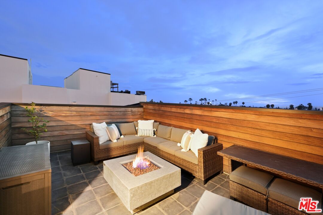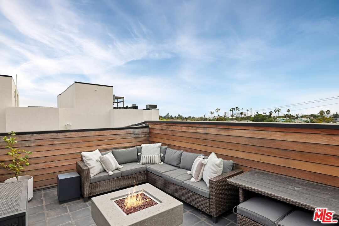 Experience elevated West Hollywood living in this architecturally bold multi-story home one of only four in an exclusive small-lot subdivision with no HOA fees. Enter through striking exposed concrete walls and a dramatic floating staircase that rises from the ground-floor garage with car lift to a private rooftop terrace boasting direct views of the Hollywood Sign, Griffith Observatory, downtown LA, Century City, and beyond. The main level features an airy open layout, with a sleek chef's kitchen, stainless steel appliances, and breakfast bar seamlessly flowing into a sun-drenched living/dining space with soaring ceilings and an inviting patio. Upstairs, the expansive primary suite offers a generous walk-in closet, while two additional bedrooms share a chic Jack-and-Jill bath. On the rooftop, a gas fireplace anchors 360-degree views for the ultimate Hollywood lifestyle all just moments from Melrose Place, Plummer Park, and the best of the city.