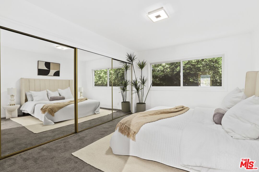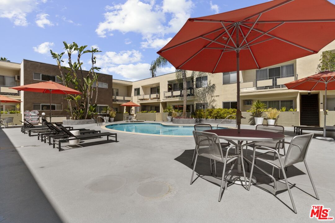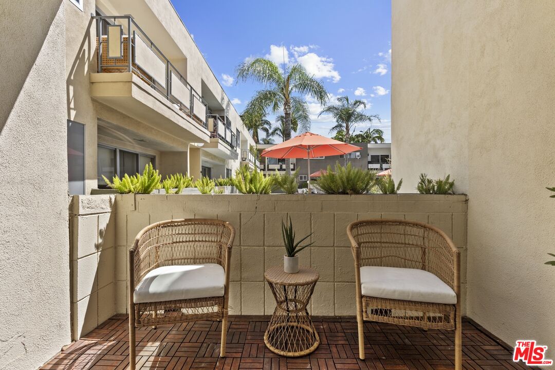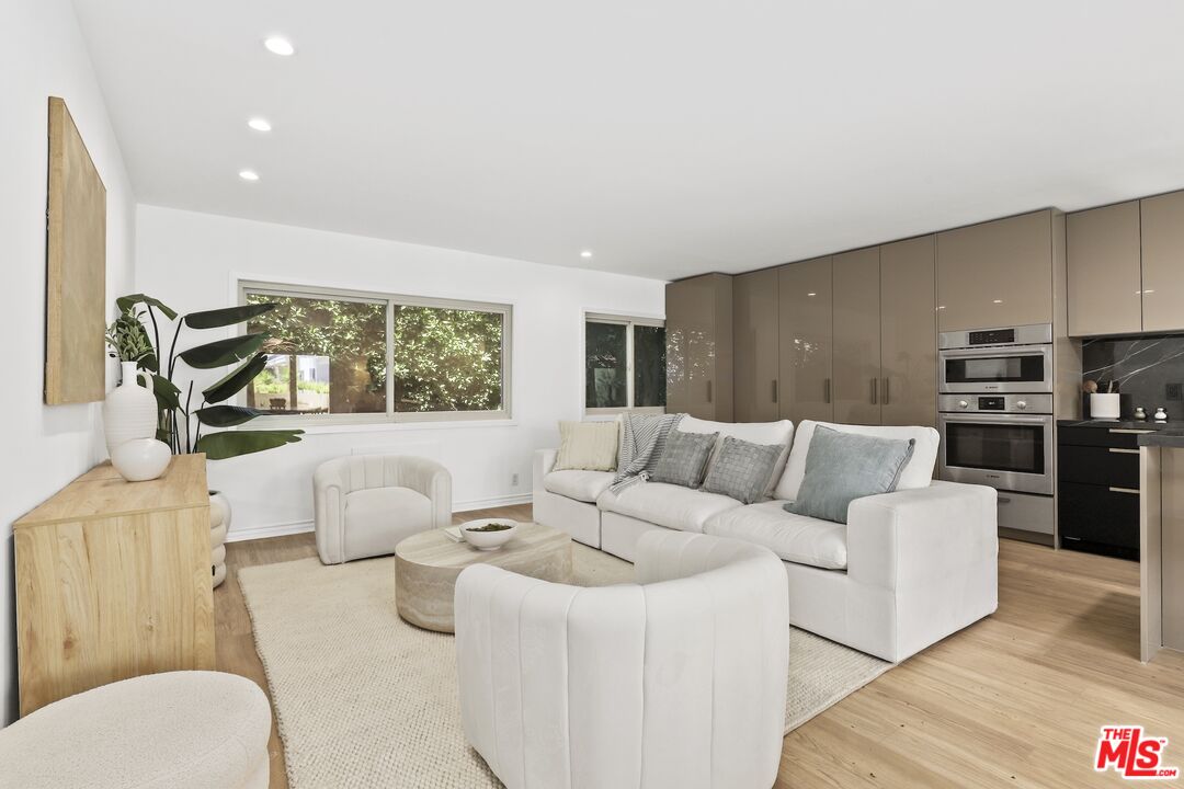 Welcome home to your Palm Springs like resort in the heart of West Hollywood. This beautifully renovated two-bedroom, two-bath residence features a reimagined Poggenpohl kitchen with new cabinets, appliances, countertop, backsplash, and a spacious kitchen island, complemented by a new Miele dishwasher and Bosch appliances. Brand new interior doors, new flooring, a new front door, upgraded recessed lighting throughout, and remote operated custom made blinds elevate the home's modern appeal. The residence is further enhanced with a new Renewal by Andersen sliding door, and new windows and screens, filling the space with natural light. Positioned in the quiet rear of the complex, the living area and patio overlook the sparkling pool, while the primary bedroom offers a serene retreat tucked away for ultimate privacy. Just one block to Trader Joe's and the neighborhood pharmacy, and two blocks to Bristol Farms and Whole Foods, you'll enjoy unmatched convenience. Local favorites such as Laurel Hardware, Tu Madre, and Connie & Ted's are all just moments away, along with the vibrant restaurants and nightlife that define West Hollywood living. Set within a classic mid-century building, residents are welcomed by a striking terrazzo-tiled entry and can indulge in the resort-style pool and lounge area, complete with swaying palm trees, chaise lounges, and umbrellas, the perfect blend of style and relaxation.