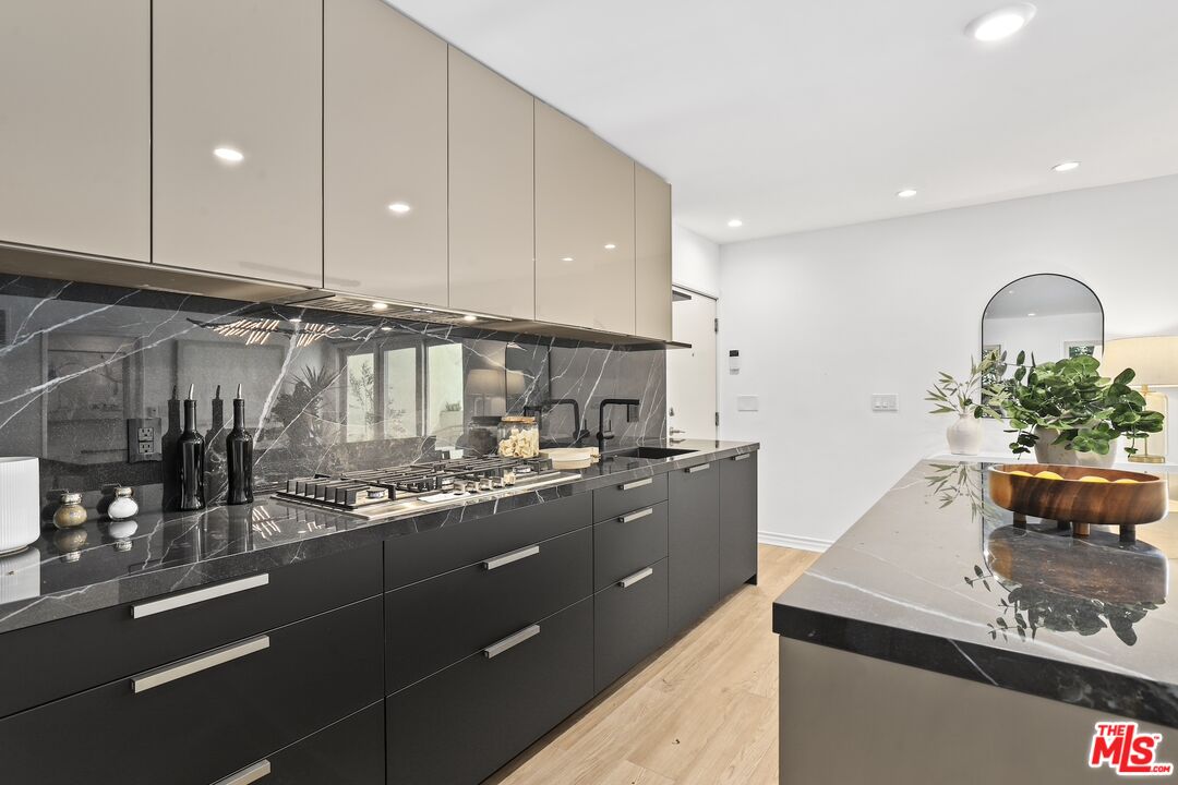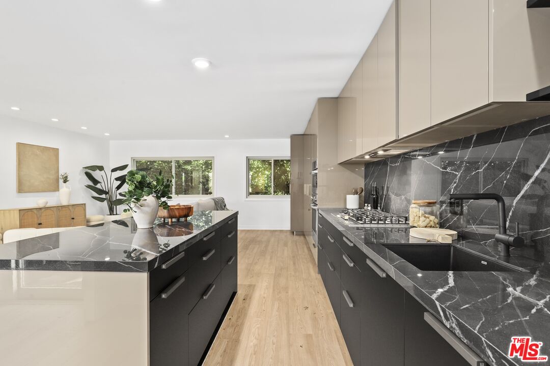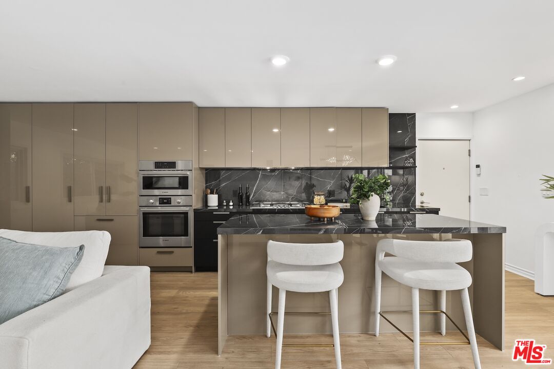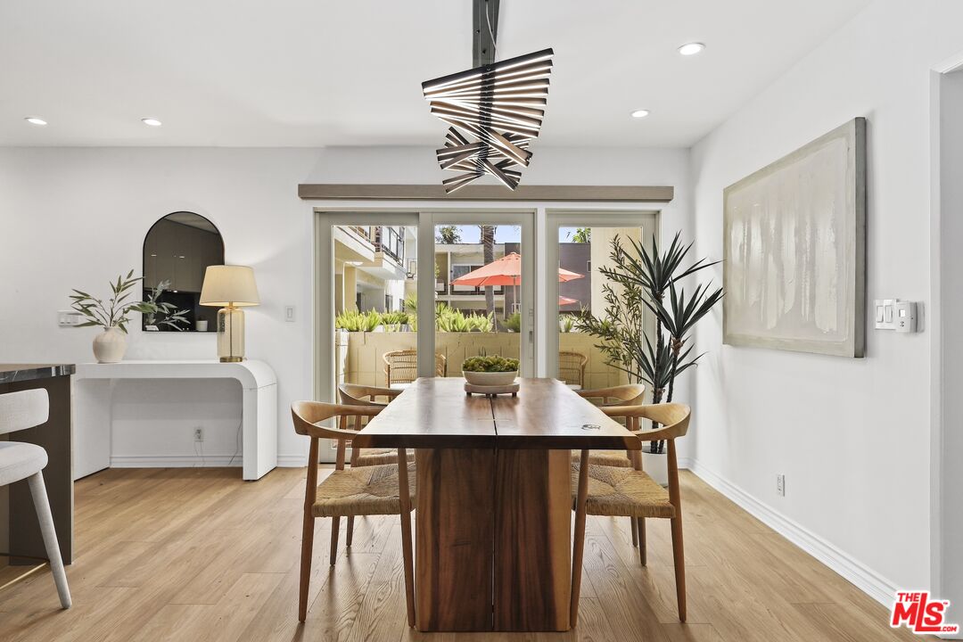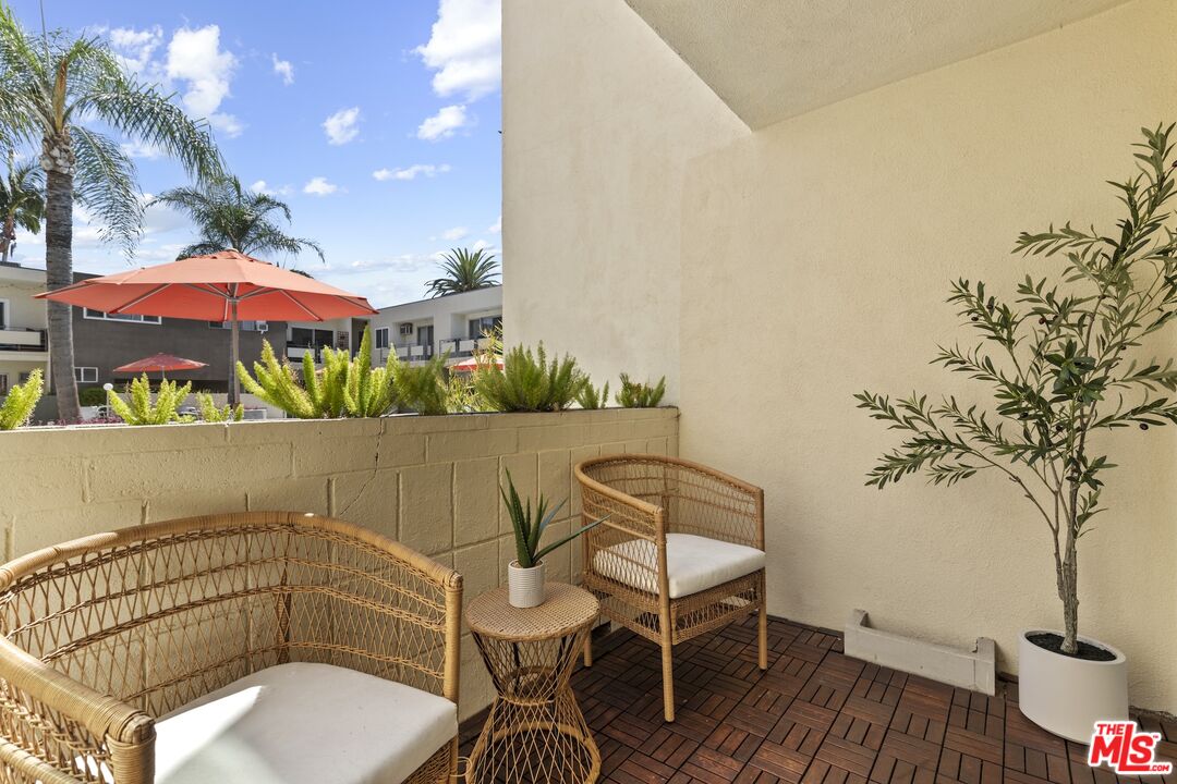 Welcome home to your Palm Springs like resort in the heart of West Hollywood. This beautifully renovated two-bedroom, two-bath residence features a reimagined Poggenpohl kitchen with new cabinets, appliances, countertop, backsplash, and a spacious kitchen island, complemented by a new Miele dishwasher and Bosch appliances. Brand new interior doors, new flooring, a new front door, upgraded recessed lighting throughout, and remote operated custom made blinds elevate the home's modern appeal. The residence is further enhanced with a new Renewal by Andersen sliding door, and new windows and screens, filling the space with natural light. Positioned in the quiet rear of the complex, the living area and patio overlook the sparkling pool, while the primary bedroom offers a serene retreat tucked away for ultimate privacy. Just one block to Trader Joe's and the neighborhood pharmacy, and two blocks to Bristol Farms and Whole Foods, you'll enjoy unmatched convenience. Local favorites such as Laurel Hardware, Tu Madre, and Connie & Ted's are all just moments away, along with the vibrant restaurants and nightlife that define West Hollywood living. Set within a classic mid-century building, residents are welcomed by a striking terrazzo-tiled entry and can indulge in the resort-style pool and lounge area, complete with swaying palm trees, chaise lounges, and umbrellas, the perfect blend of style and relaxation.