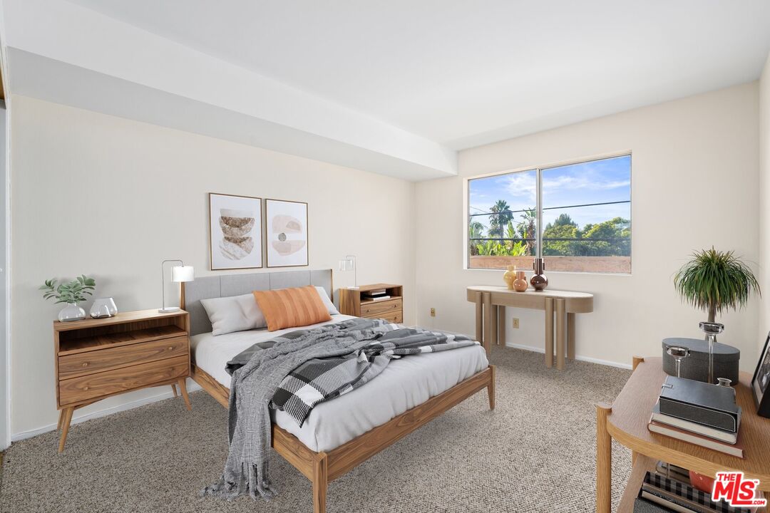This 2BR/2BA condo is the best bargain in West Hollywood. Located on the second floor at the back of an intimate 21-unit building, this corner condo is bathed in natural light from west and south facing windows. Enjoy serene sunsets overlooking a rooftop view to the Hollywood Hills from this unit's big balconies that have sliding glass doors from the living room and the primary bedroom. This home is an amazing opportunity to channel your HGTV heroes! The galley kitchen, with its gas range/oven, could be a chef's delight with some loving renovations. The HOA allows installation of hardwood floors throughout to replace the carpeting. The two bathrooms are a blank canvas awaiting a creative owner to remodel with designer details. The primary bedroom has a walk-in closet and a spacious en-suite bathroom. Enjoy year-round climate-controlled comfort with central HVAC. In the building's securely gated garage, two side-by-side parking spaces and large storage closets are included in this sale. This pet-friendly building features succulent landscaping, a high-tech intercom system, community laundry rooms on each floor and a private pool area, all for a reasonable HOA fee that includes cable TV and internet. This coveted West Hollywood location is close to numerous restaurants, fitness studios, shopping and nightlife on Santa Monica Blvd. Don't delay; this home is the one you've been waiting for.
