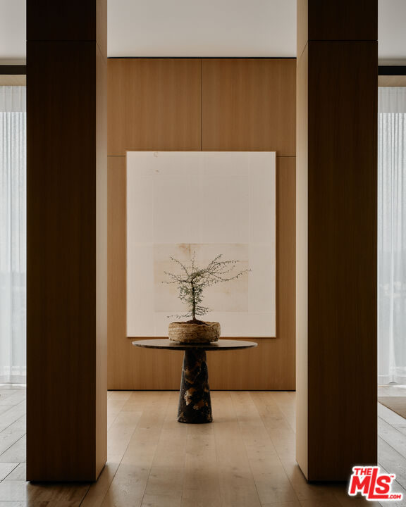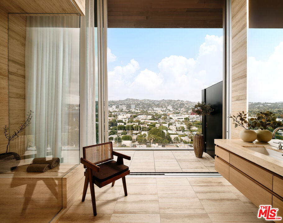 Introducing Penthouse West at 8899 Beverly - the largest top-floor residence in this Olson Kundig-designed architectural masterpiece in West Hollywood's Design District. This sprawling 7,303-square-foot penthouse is an art collectors dream. Experience full-service, luxury living with 4 bedrooms, 5 full bathrooms, 2 powder rooms, and a versatile media room set up as private office space apart from the main residence living areas. Designed to impress, the Penthouse features a great room with soaring 14-foot floor-to-ceiling motorized Vitrocsa glass walls that open to a 1,900-square-foot wraparound terrace with breathtaking, panoramic views of the Hollywood Hills and Los Angeles skyline. The gourmet kitchen pairs functionality with artistry, boasting Calacatta gold marble countertops, custom white oak cabinetry, and premium appliances by Gaggenau, Miele, and Subzero. A separate butler's kitchen and discreet service entrance enhance the penthouse's hosting capabilities, ideal for entertaining at scale or enjoying intimate gatherings. The expansive primary suite, a private sanctuary over 1,000 square feet, includes dual walk-in closets, luxurious dual bathrooms, and direct access to the terrace, offering uninterrupted views of the Hollywood hills. The three guest bedrooms feature ensuite bath and stunning south-facing views, providing the utmost privacy and comfort. For the car aficionado, Penthouse West features a private four-car autostable behind bespoke enclosed doors, plus two additional valet spaces, accommodating up to six vehicles. A private and discreet Penthouse lobby in the garage offers direct elevator access to the top floor. Exclusive resident amenities elevate the experience further, with a resort-style pool, outdoor kitchen, fireplace gardens, fitness center, and yoga studio. Situated in the heart of the West Hollywood Design District, this penthouse boasts a Walk Score of 92, with Bristol Farms, high-end dining, designer boutiques, and entertainment just steps away, delivering an unparalleled lifestyle in one of LA's most coveted and walkable neighborhoods.