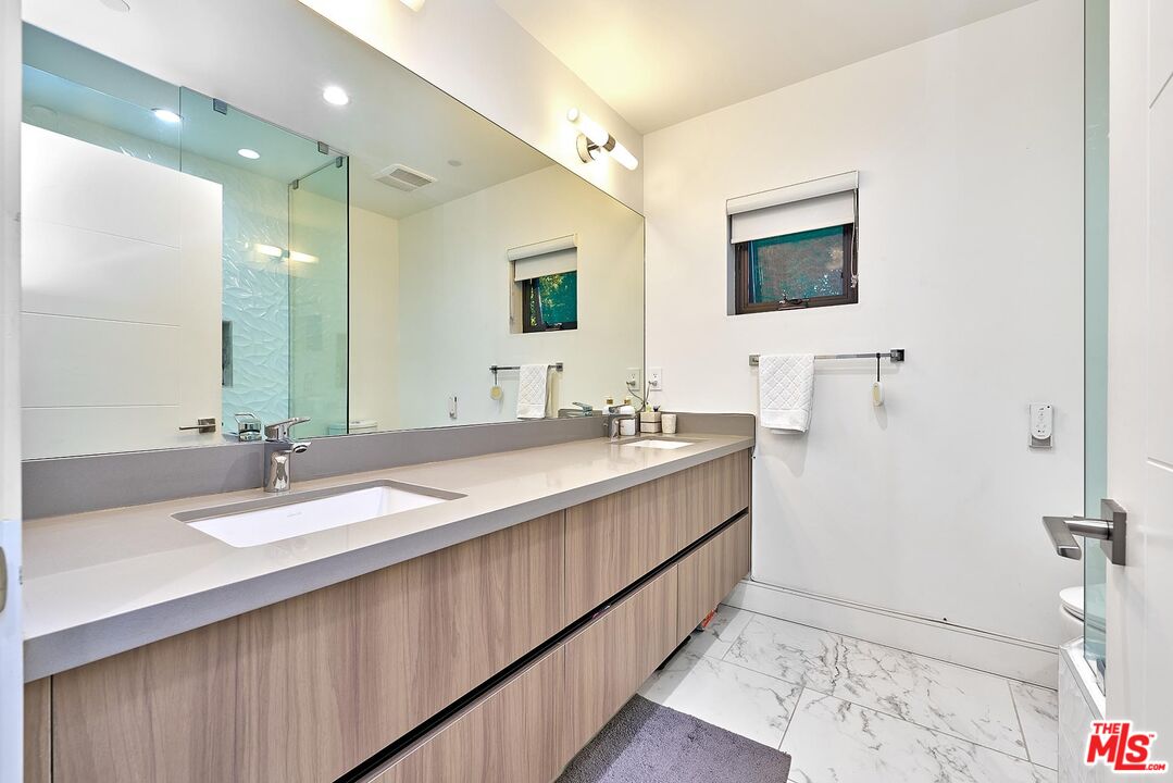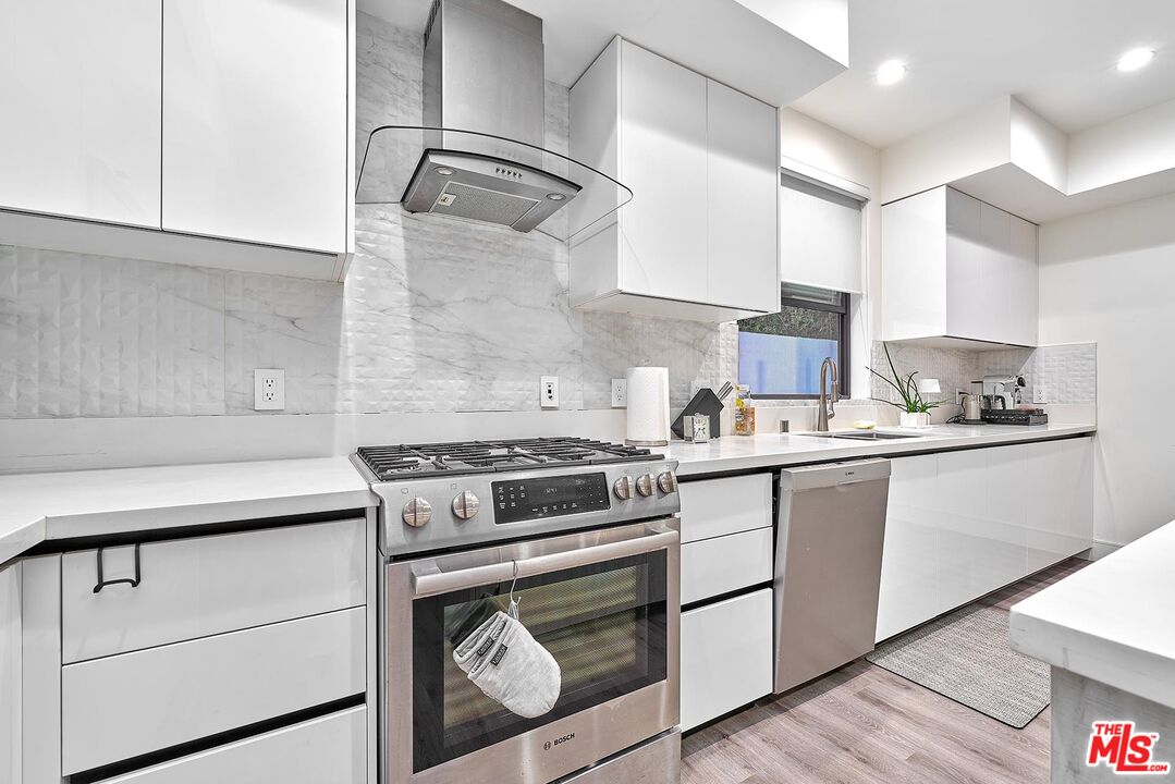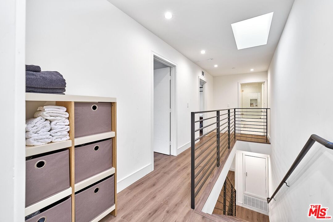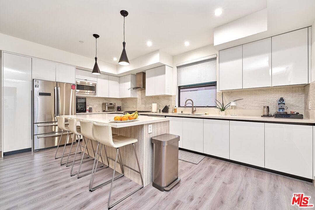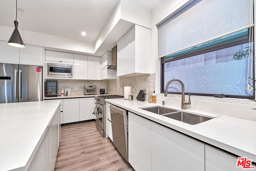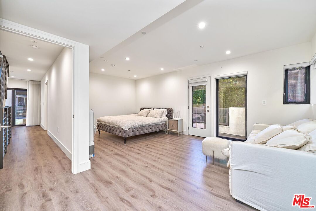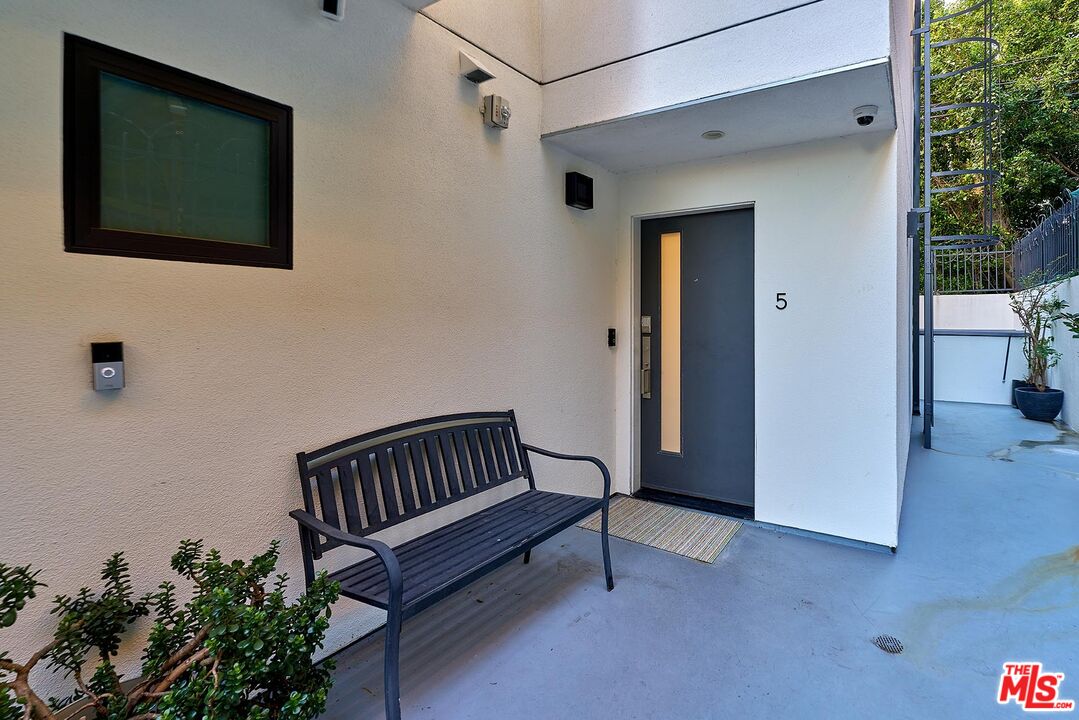 This condo showcases a refined and sophisticated design, filled with abundant natural light that creates a bright and inviting atmosphereideal for both relaxation and entertaining. Each bedroom features its own private balcony, and this is the only unit that offers an exclusive private patio. A modern glass fireplace adds warmth and style, while the dream kitchen is fully equipped with top-of-the-line Bosch and Kohler stainless steel appliances, complemented by elegant lighting.The primary suite boasts a luxurious bathroom with a soaking tub, a separate shower with designer massage features, and a spacious industrial-style walk-in closet. High ceilings, skylights, a private balcony, and beautiful views further elevate the second-floor living space. Ideally located close to Santa Monica Boulevard and Melrose Avenue, and just minutes by car from Runyon Canyon and The Grove.