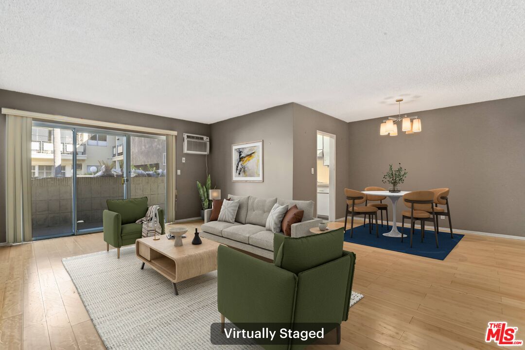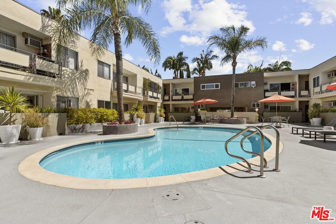 Welcome home to your own Palm Springs inspired resort in the heart of West Hollywood. This generously sized one-bedroom, one-bath residence features two ceiling fans integrated with overhead lighting, enhancing comfort and style throughout. Set within a classic mid-century building, a striking terrazzo-tiled entry sets the tone for timeless design. The living area and private patio overlook the sparkling resort-style pool, framed by swaying palm trees, chaise lounges, and umbrellas perfect for relaxed mornings or sunset unwinding. The primary bedroom is thoughtfully tucked away, offering a serene and private retreat separate from the main living space. The location is unbeatable: just one block to Trader Joe's and the neighborhood pharmacy, and only two blocks to Bristol Farms and Whole Foods. Beloved local favorites like Laurel Hardware, Tu Madre, and Connie & Ted's are moments away, along with the vibrant dining, shopping, and nightlife that define West Hollywood living.