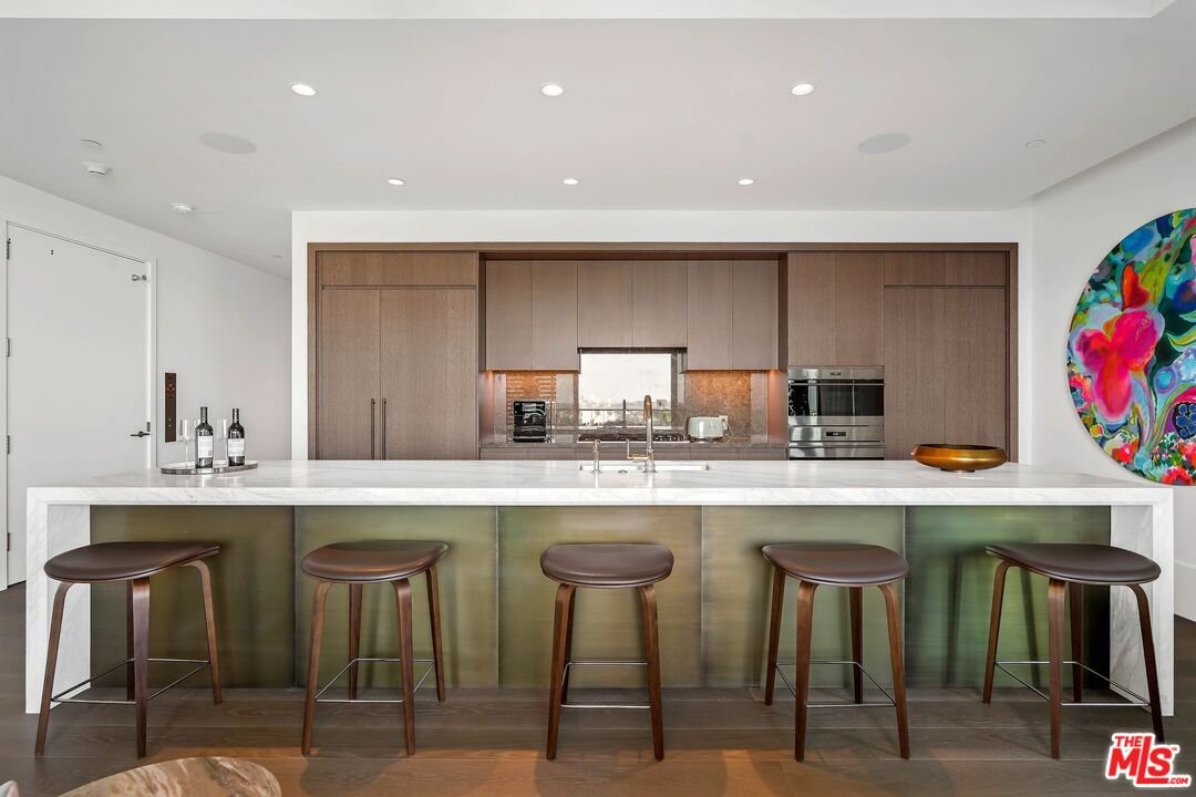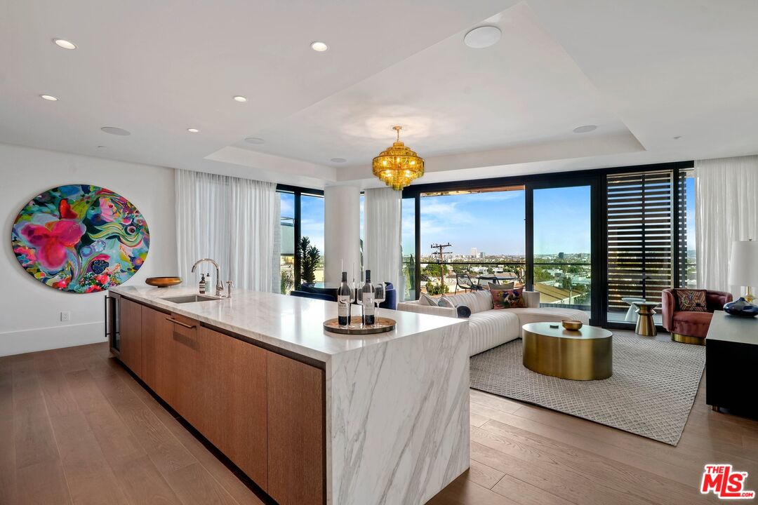 Immerse yourself in luxury at the The Sun Rose West Hollywood (formerly Pendry Residences) , a 24-hour full-service amenity building, located on the iconic Sunset Strip. Residence 307 offers unparalleled privacy with breathtaking south-facing Downtown LA views. Serene and sophisticated, the home exudes an opulent ambiance with wide plank white oak flooring and floor-to-ceiling glass walls that bathe the space in natural light. The chef's kitchen, designed by Martin Brudnizki, is the perfect blend of functionality and elegance equipped with top-of-the-line Subzero and Wolf appliances, custom white oak stained cabinetry, Waterworks fixtures, and an oversized Calacata Borghini marble island. The generously sized primary suite is a haven of luxury, featuring a customized Poliform walk-in closet and a marble spa-like bathroom with custom double vanities and high-end polished chrome fixtures. Completing the residence are a guest bedroom with en-suite bath, powder room, laundry room, in-wall speakers, direct access via a private elevator, and two side-by-side parking spaces equipped with a triple charger. The Sun Rose Residences offers a range of residential amenities, including 24-hour concierge and security services, valet parking, a state-of-the-art fitness center, a resident lounge, a tranquil garden deck, a rooftop pool, and services of Sun Rose Hotel.