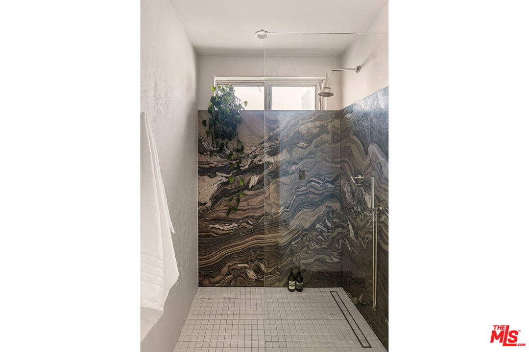 In West Hollywood's coveted Norma Triangle, this top-floor corner residence is a luxurious urban retreat, a sanctuary you've been seeking, with exquisite finishes and verdant views. Set within a gated courtyard building, the light-filled home presents a spacious great room with seamless indoor-outdoor flow; a folding glass wall expands the living space to a wraparound balcony overlooking treetop vistas and city lights. Italian white oak flooring and cabinetry, Italian marble countertops, and Forbes & Lomax switchware are just some of the refined details. The kitchen is outfitted with Fisher & Paykel appliances and a Bosch dishwasher, plus a built-in desk with matching oak surface. The bedroom enjoys balcony access and a custom white oak walk-in closet; the spa-like bath is finished in marble with double sinks, oak cabinetry, and a soft-lit mirror framing your best looks. With no shared walls,updated windows, and discreet mini-splits, this sophisticated haven puts you just moments from Melrose boutiques, Soho House, the Troubadour, and all the energy of Sunset Boulevard. Convenient parking options include a dedicated garage space plus street parking permits for your guests.